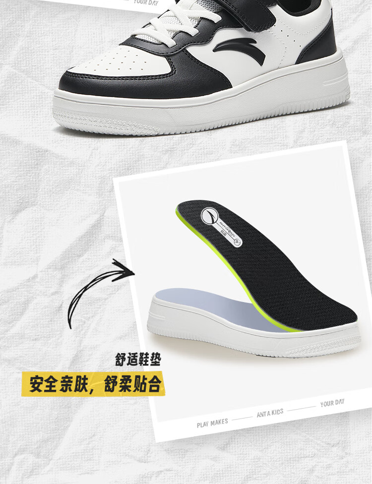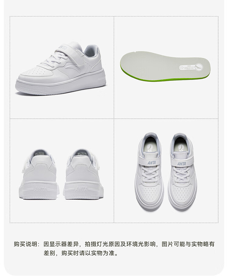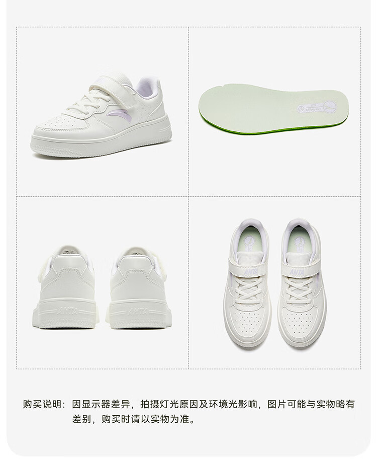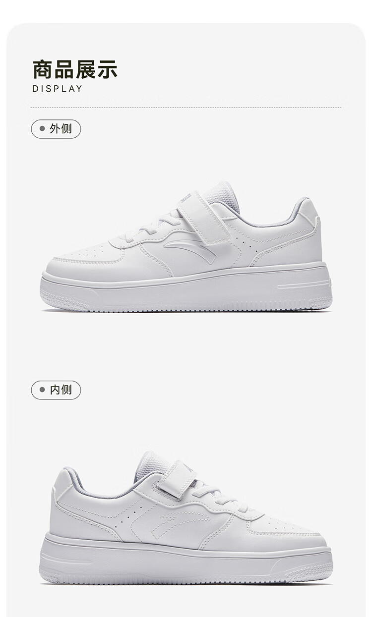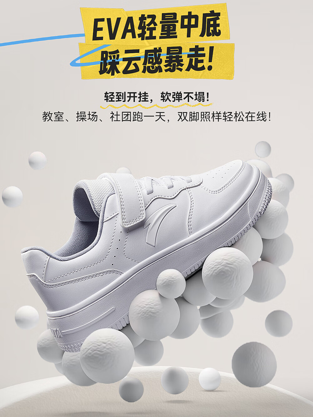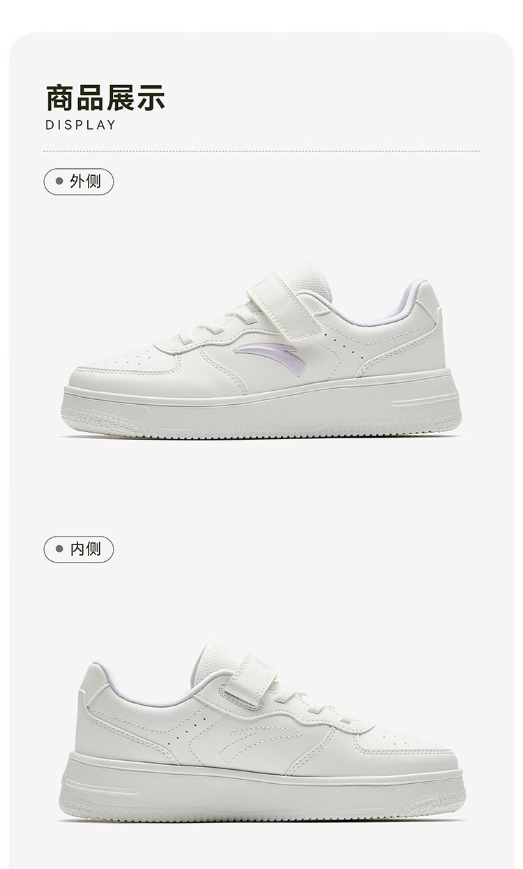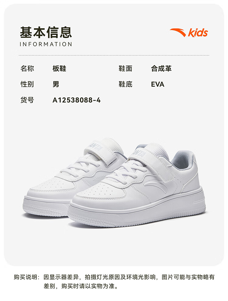 安踏儿童运动鞋男大童2025潮流百搭经典校园小白鞋轻松板鞋A12538088