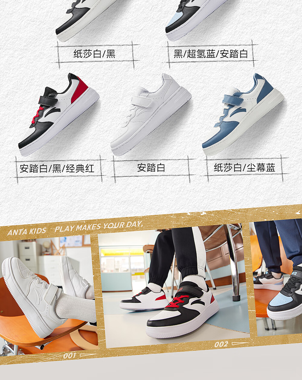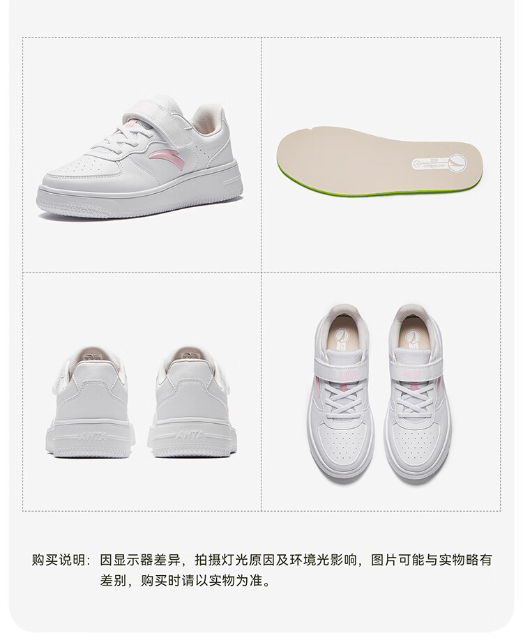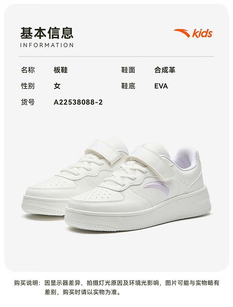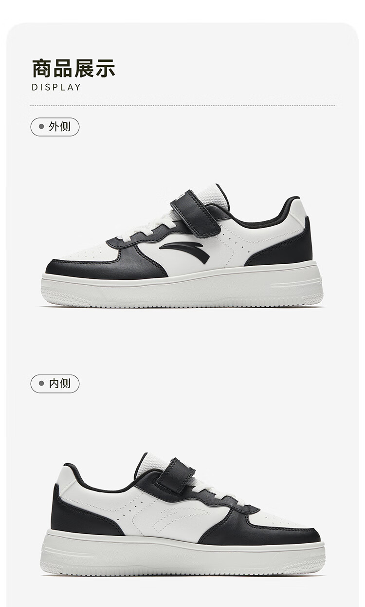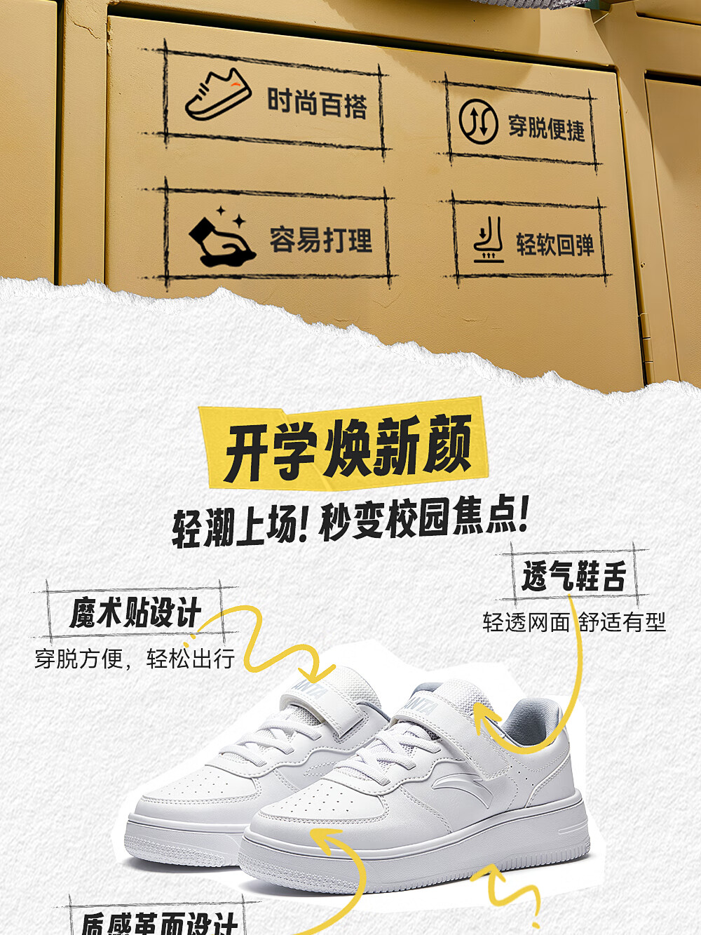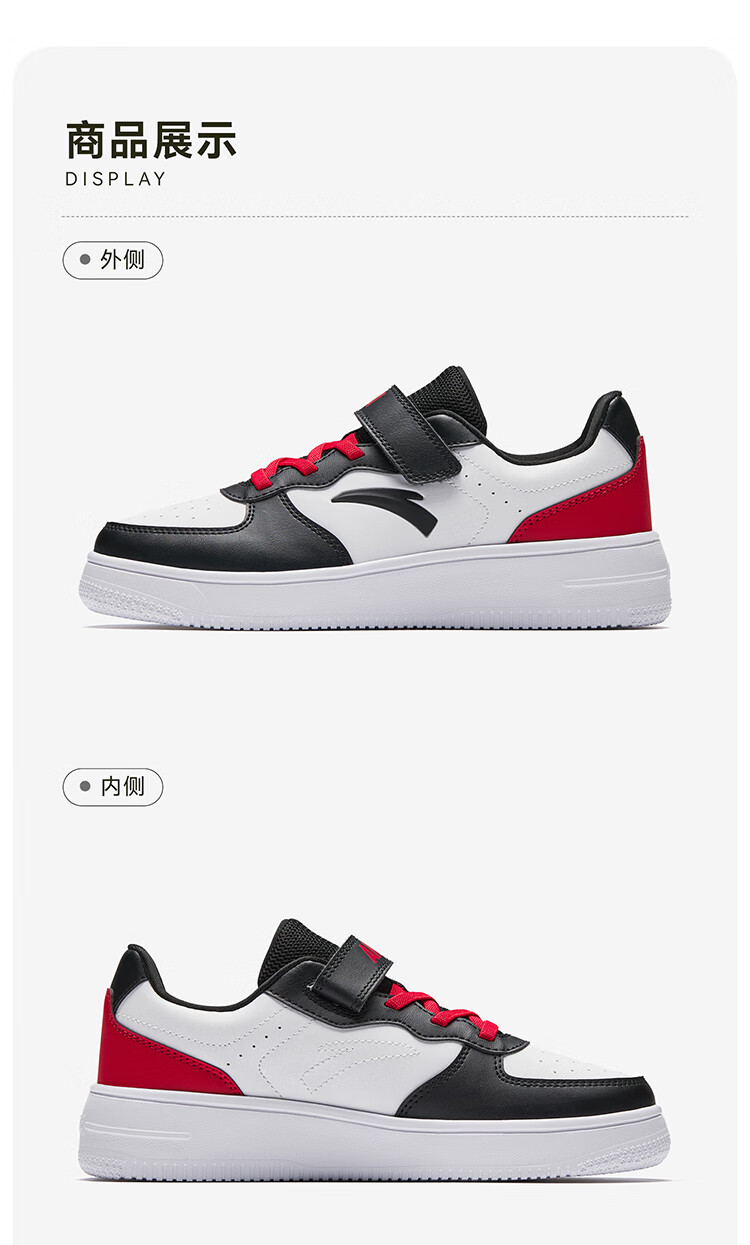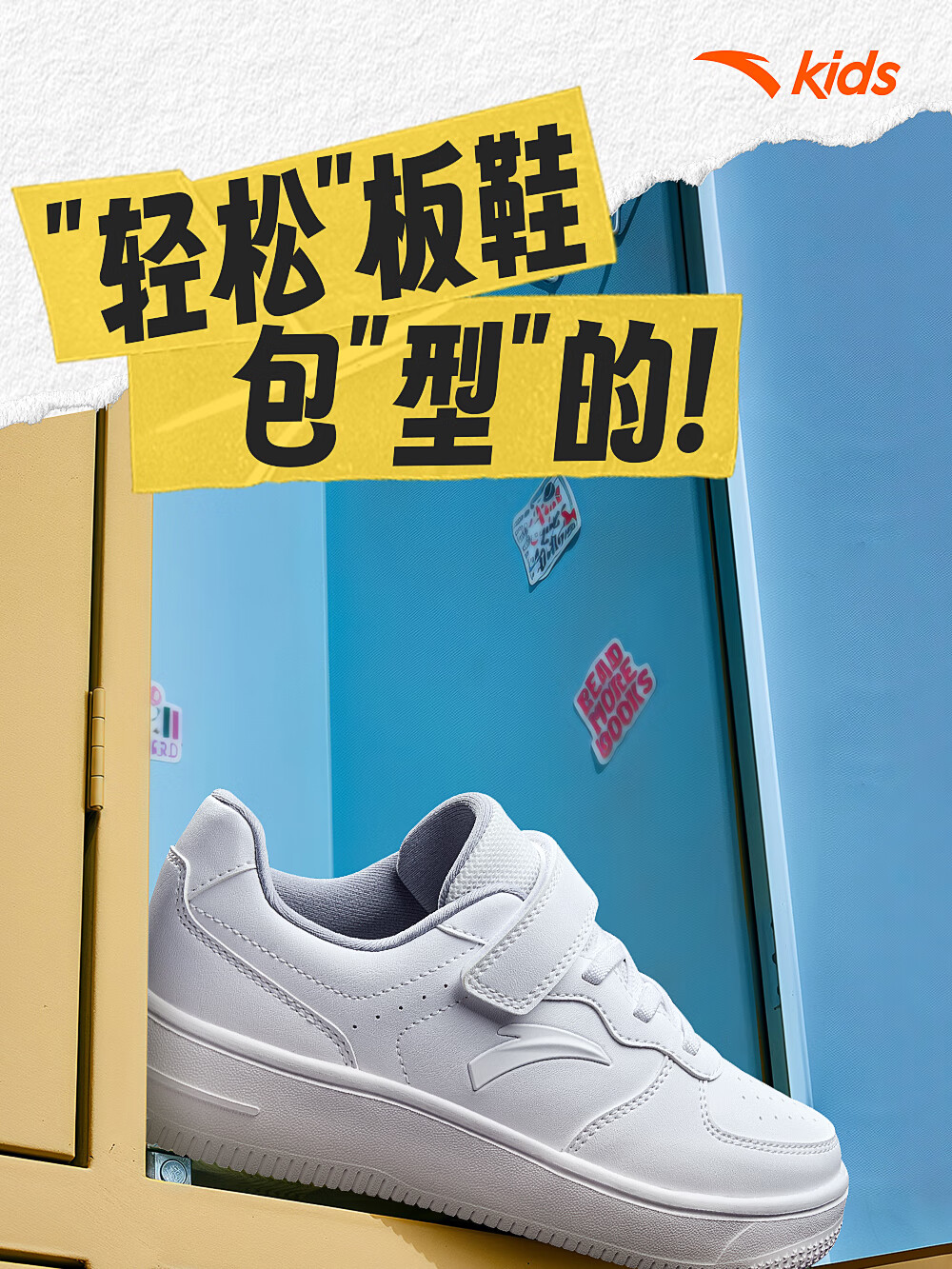 安踏儿童运动鞋男大童2025潮流百搭经典校园小白鞋轻松板鞋A12538088