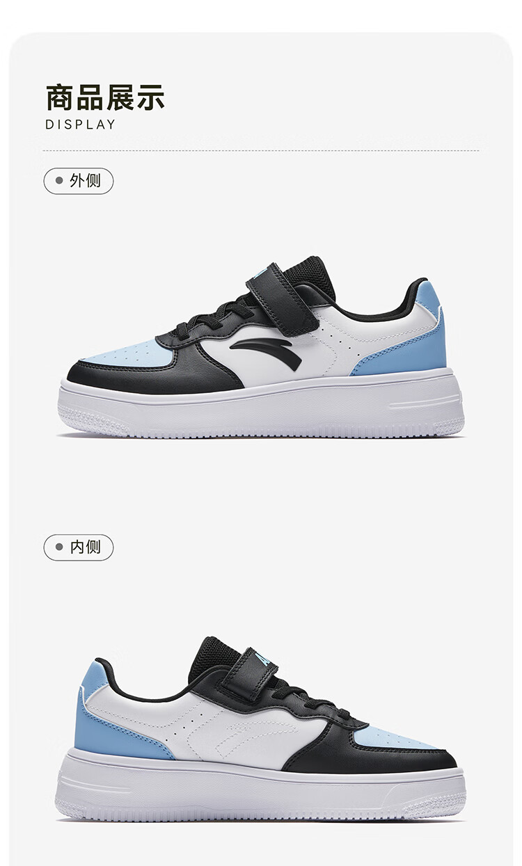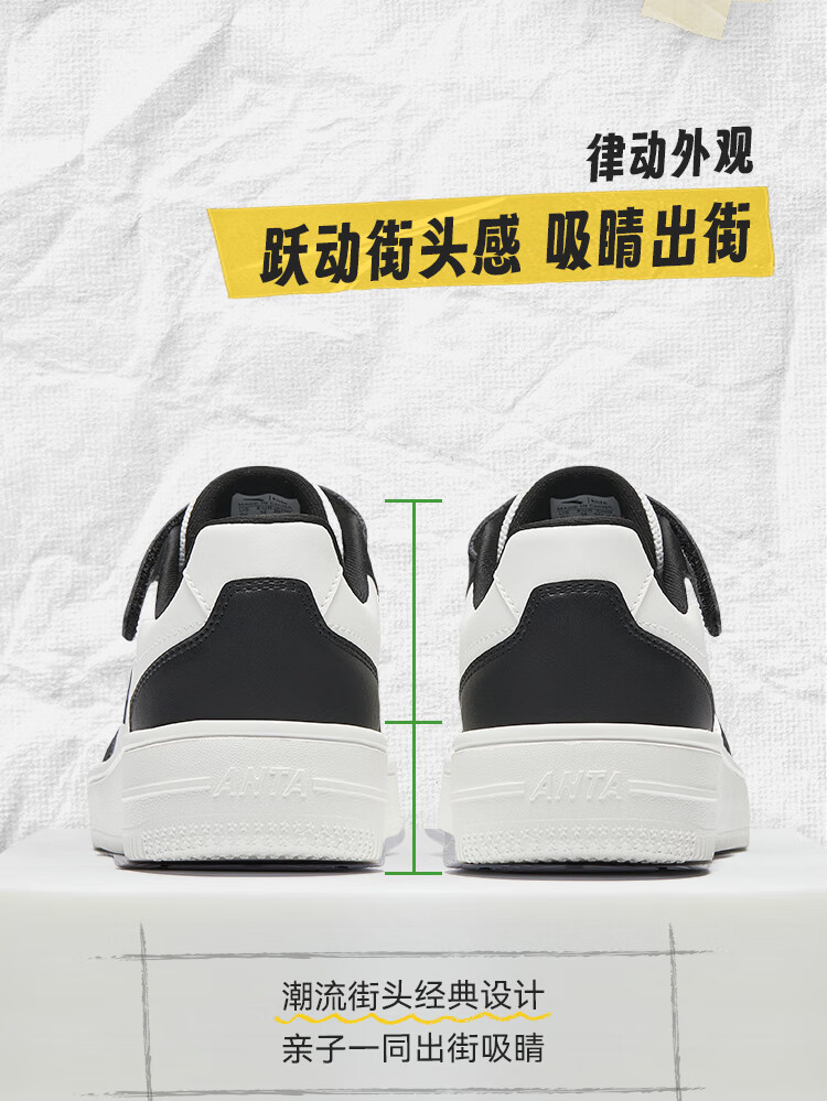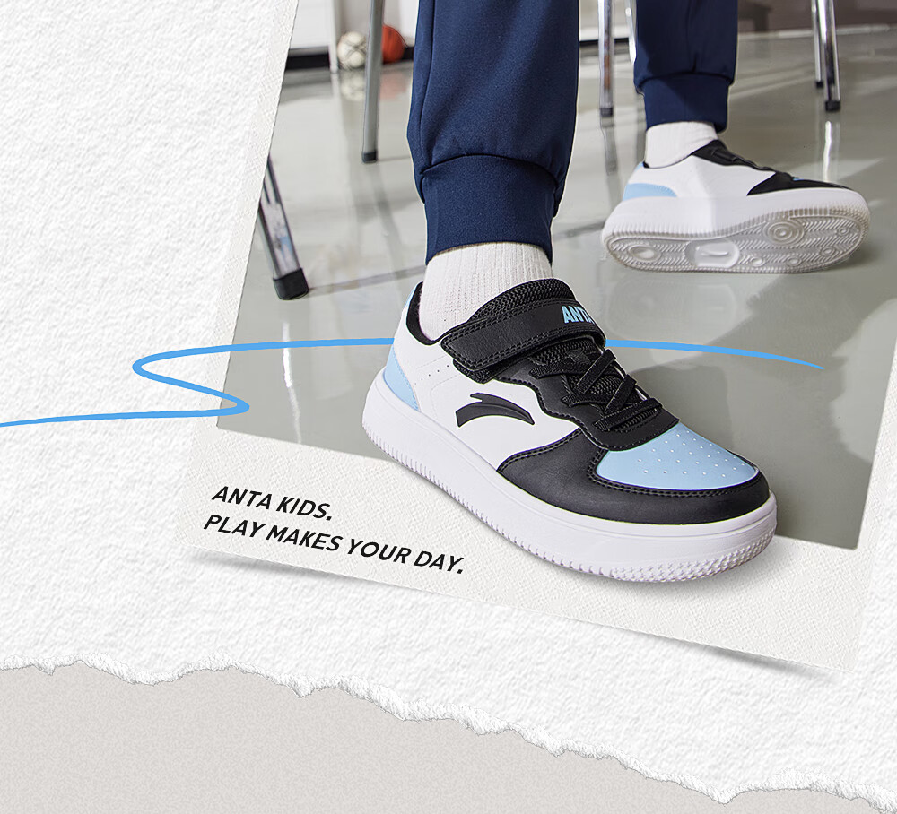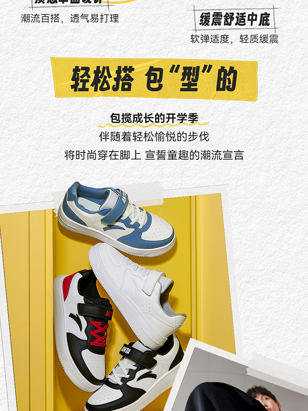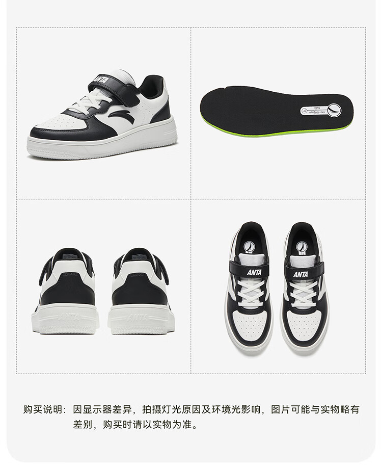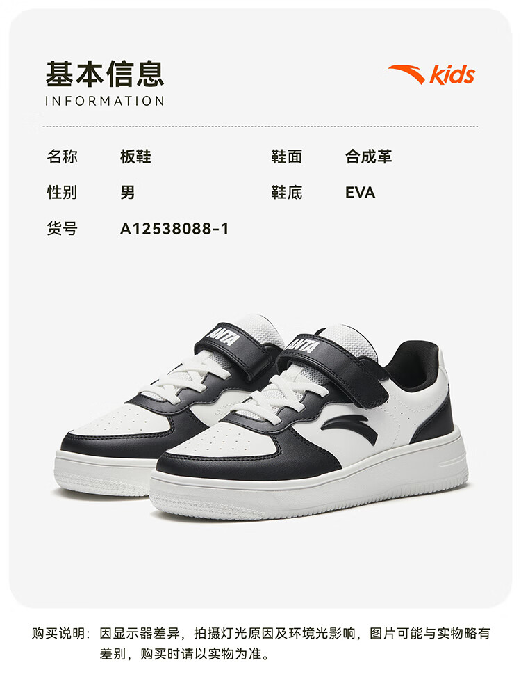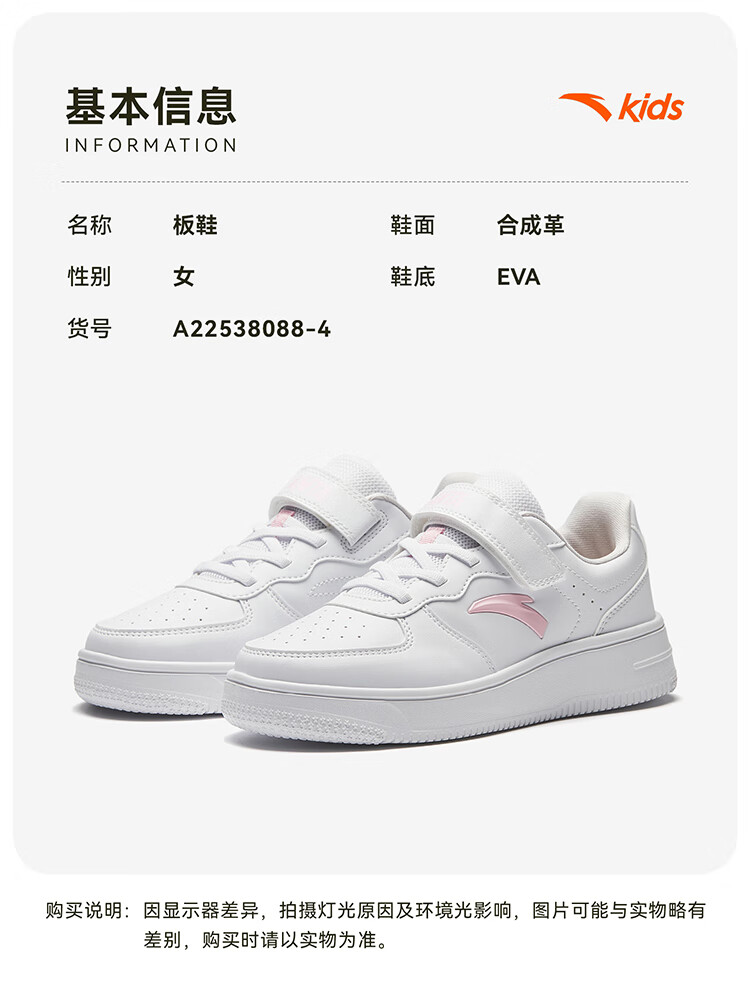 安踏儿童运动鞋男大童2025潮流百搭经典校园小白鞋轻松板鞋A12538088