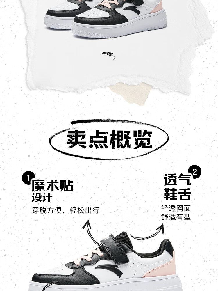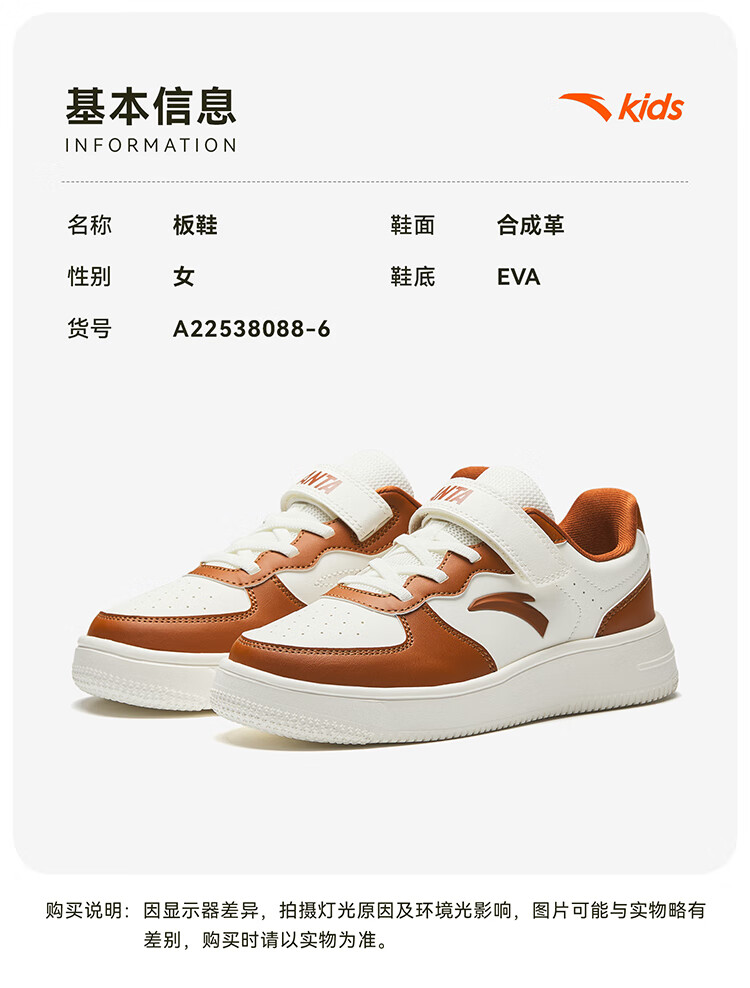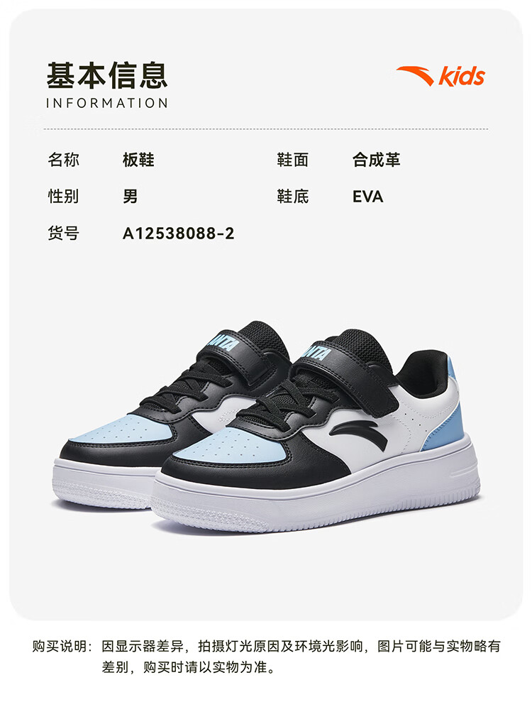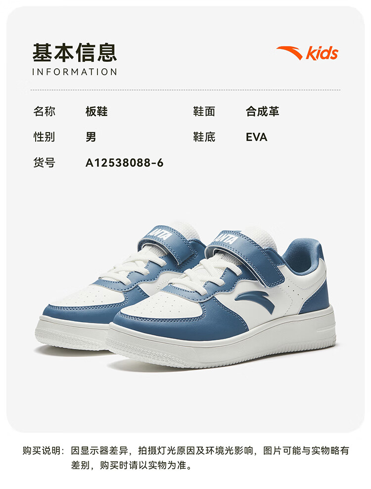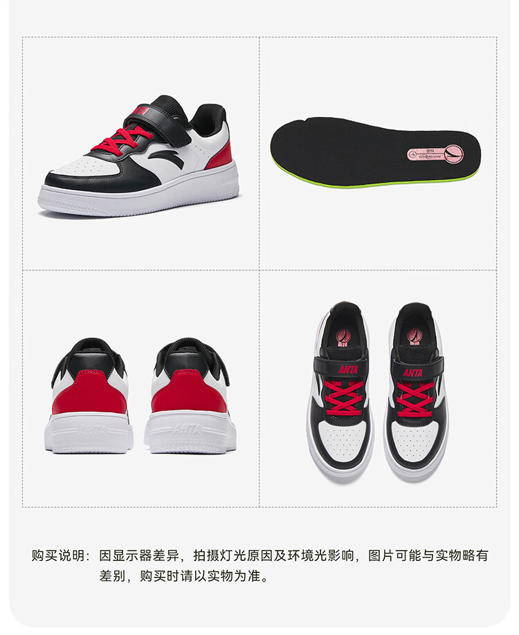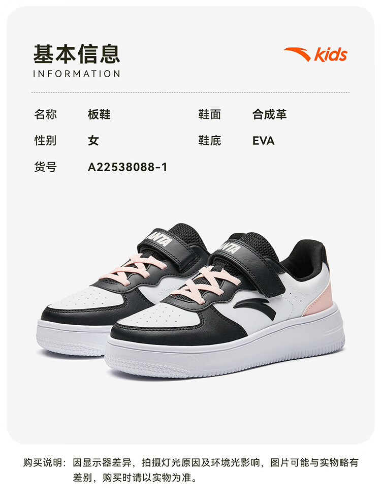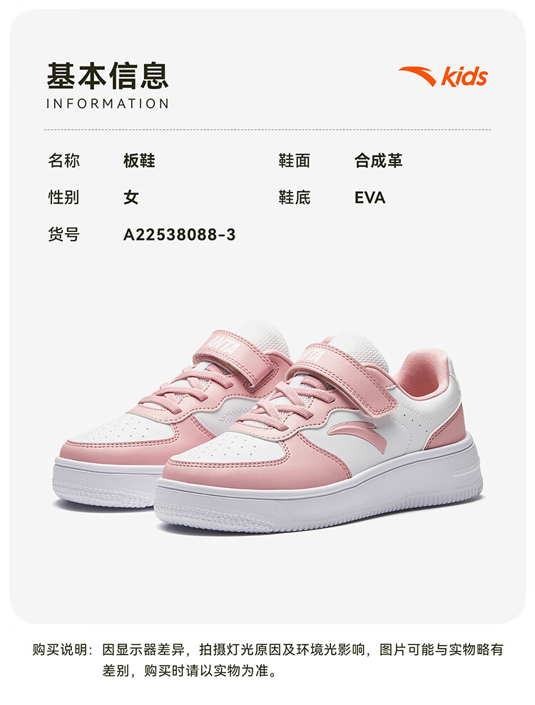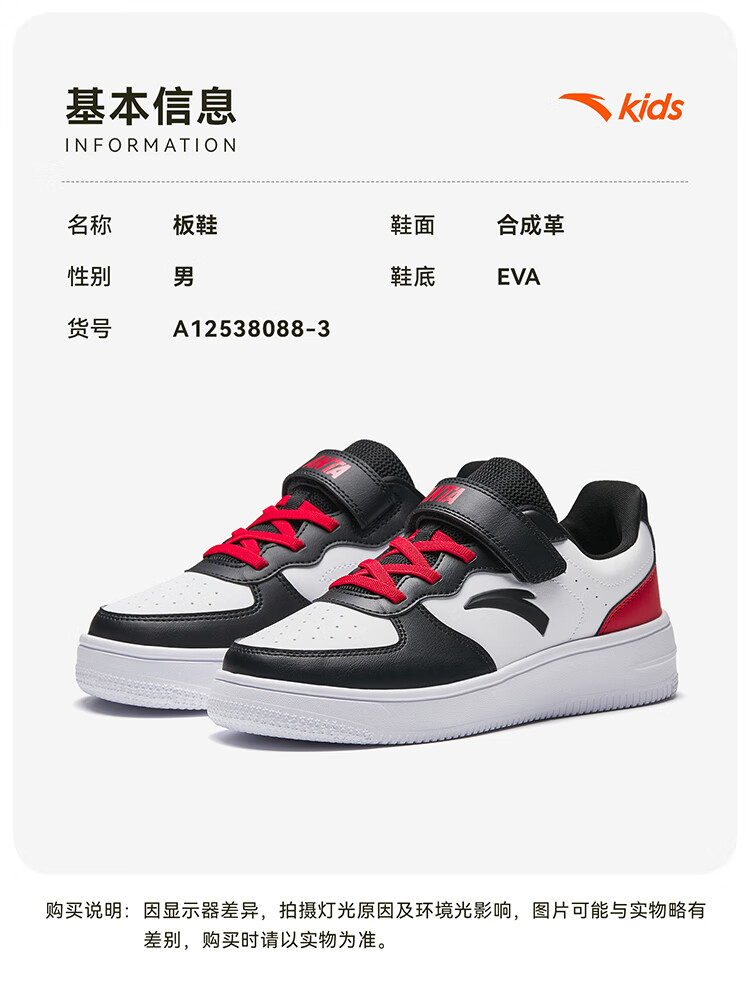 安踏儿童运动鞋男大童2025潮流百搭经典校园小白鞋轻松板鞋A12538088