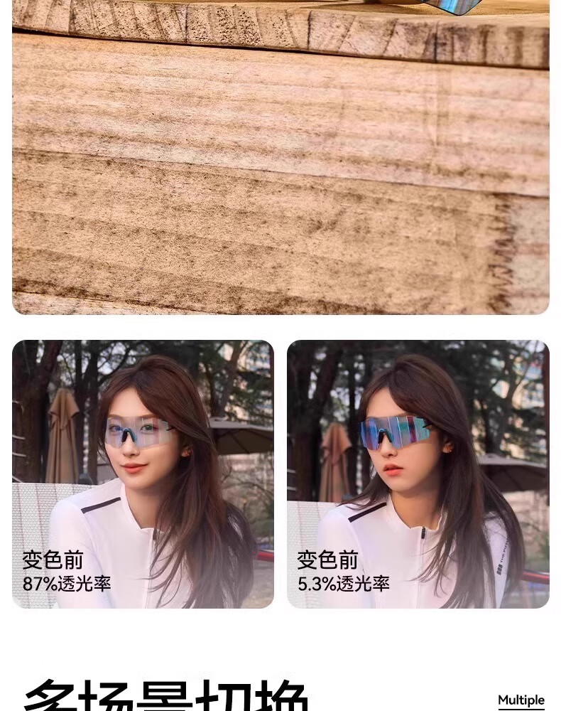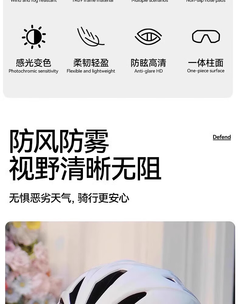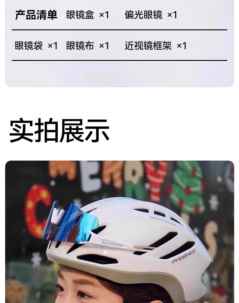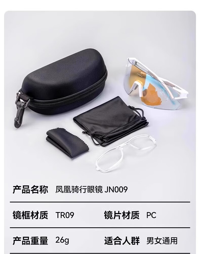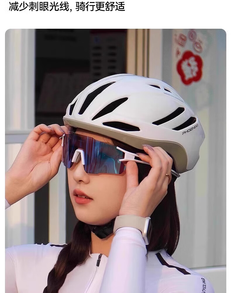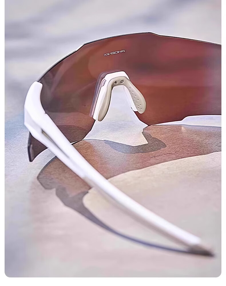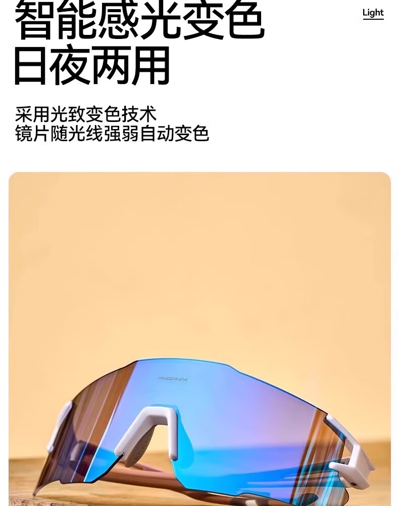 凤凰(Phoenix)骑行眼镜日夜两用近视套镜女自行车跑步防风变色护目镜防晒太阳镜 白框【光感变色】