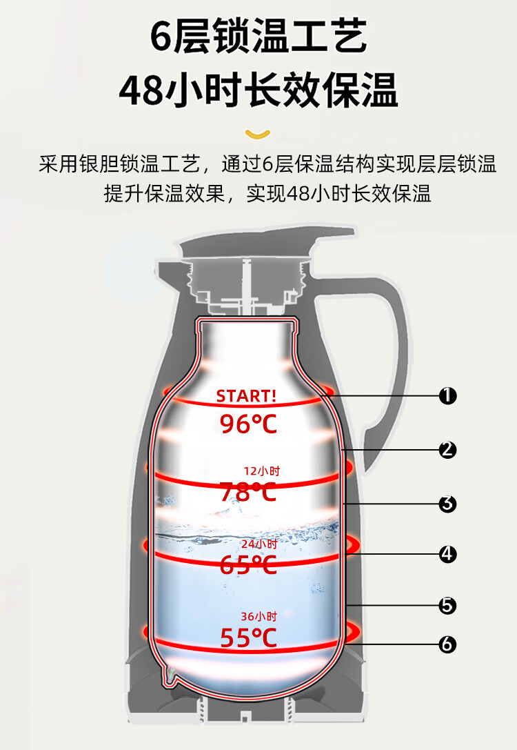 欣美雅(xinmeiya)保温壶家用暖水壶大容量水壶宿舍热水瓶2022新款保温瓶高端保温壶 象牙白 2000ml (大容量)