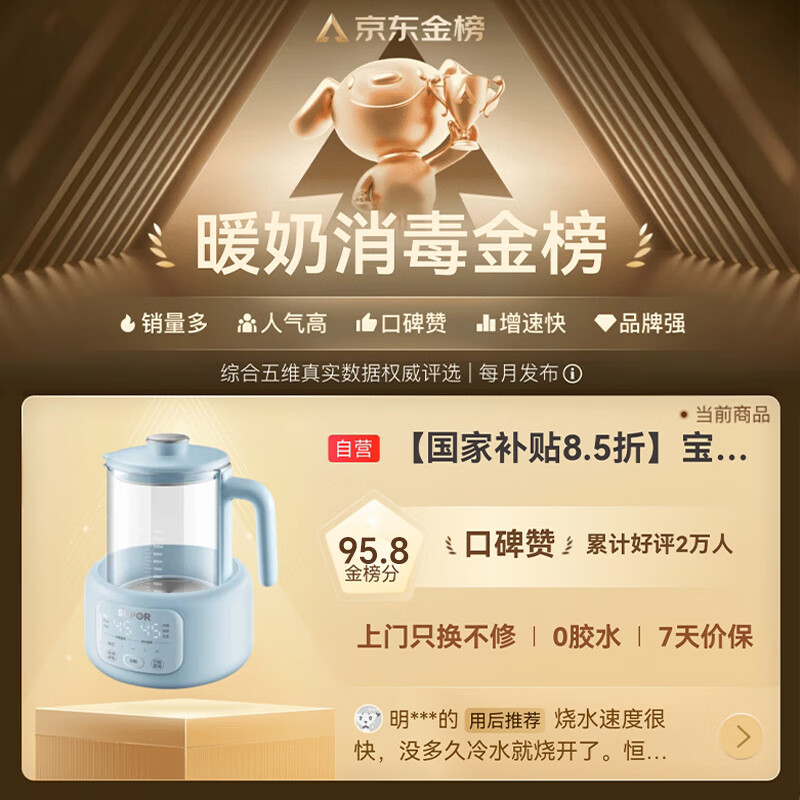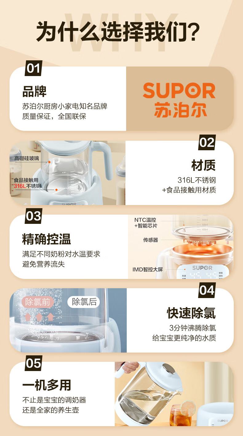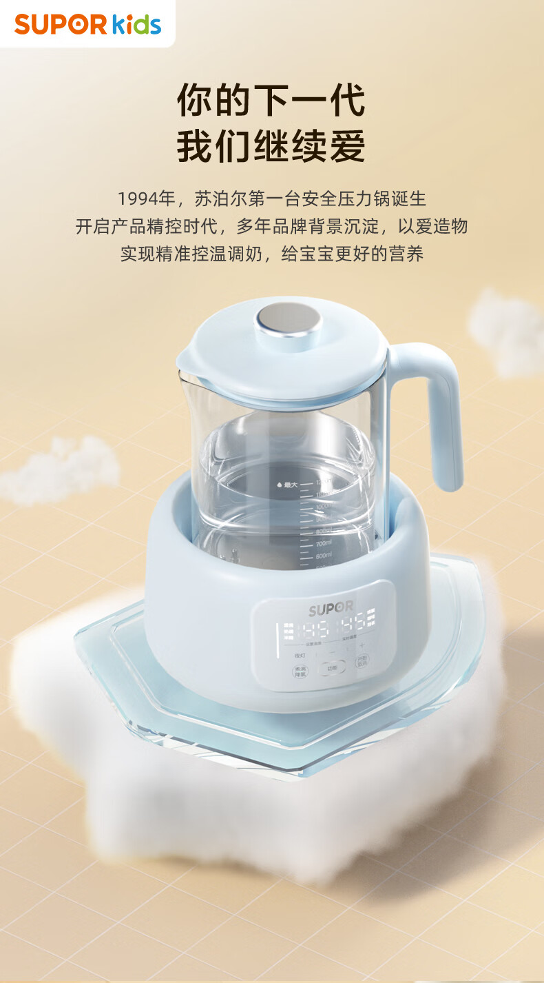 苏泊尔(SUPOR)恒温水壶 婴儿调奶器 泡奶粉机 玻璃热烧水壶家用养生壶1.2L BW07