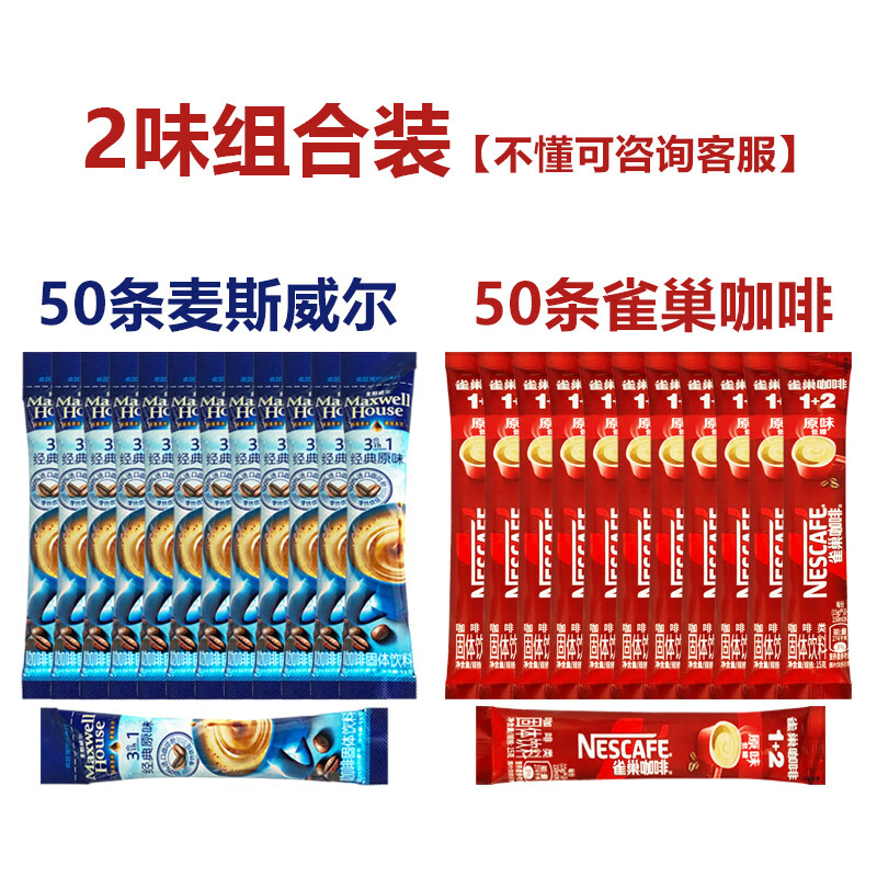 雀巢(Nestle)雀巢咖啡12即溶醇香原味速溶三合一15克条装100条简装散装发货 50条麦斯威尔原味50雀巢原