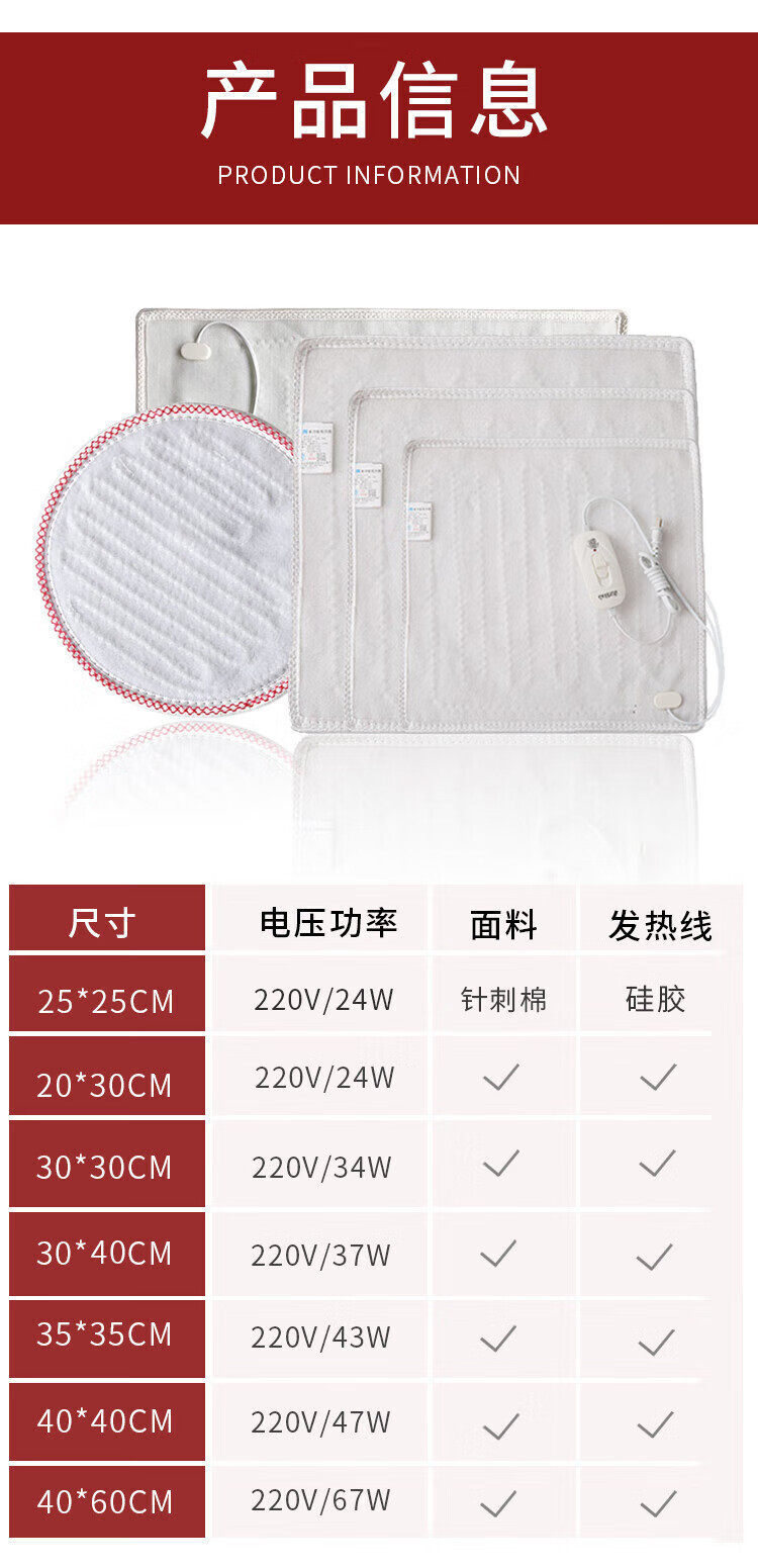 通用【药房直售】小型电热毯腰部 热敷小电热毯理疗专用高温电加热垫 20*30热敷加热垫