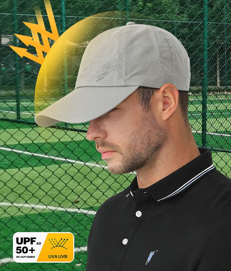 OIMG大头围的不吸热灰色防晒帽透气孔轻薄不闷汗遮阳帽男士运动棒球帽 卡其色 XL特大码(60-65cm)