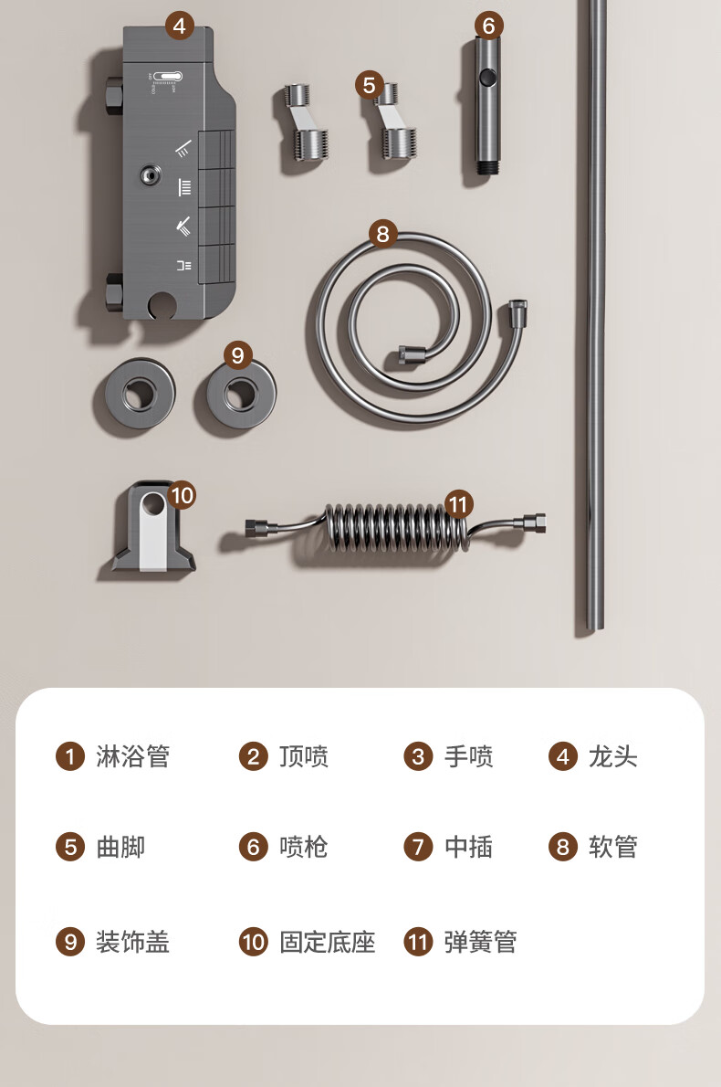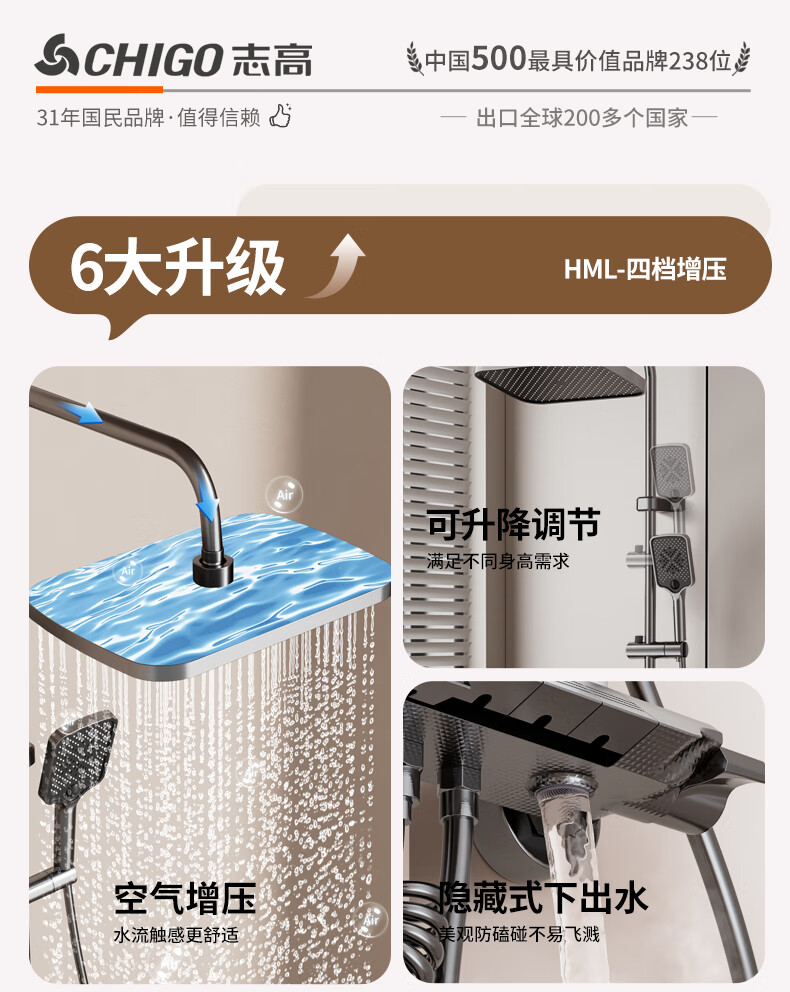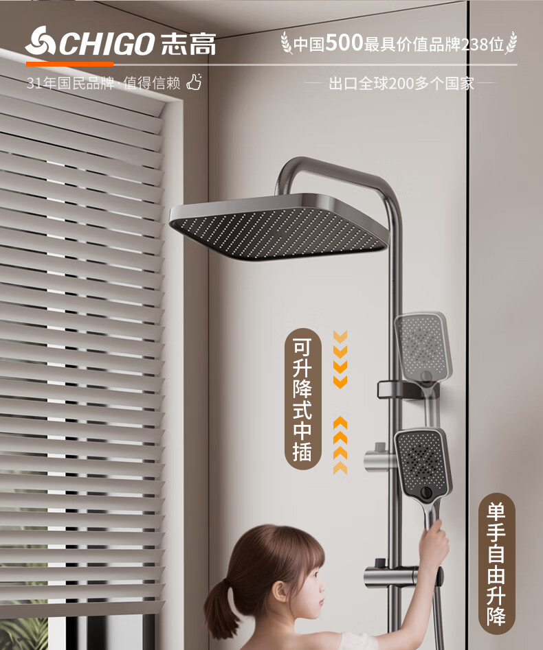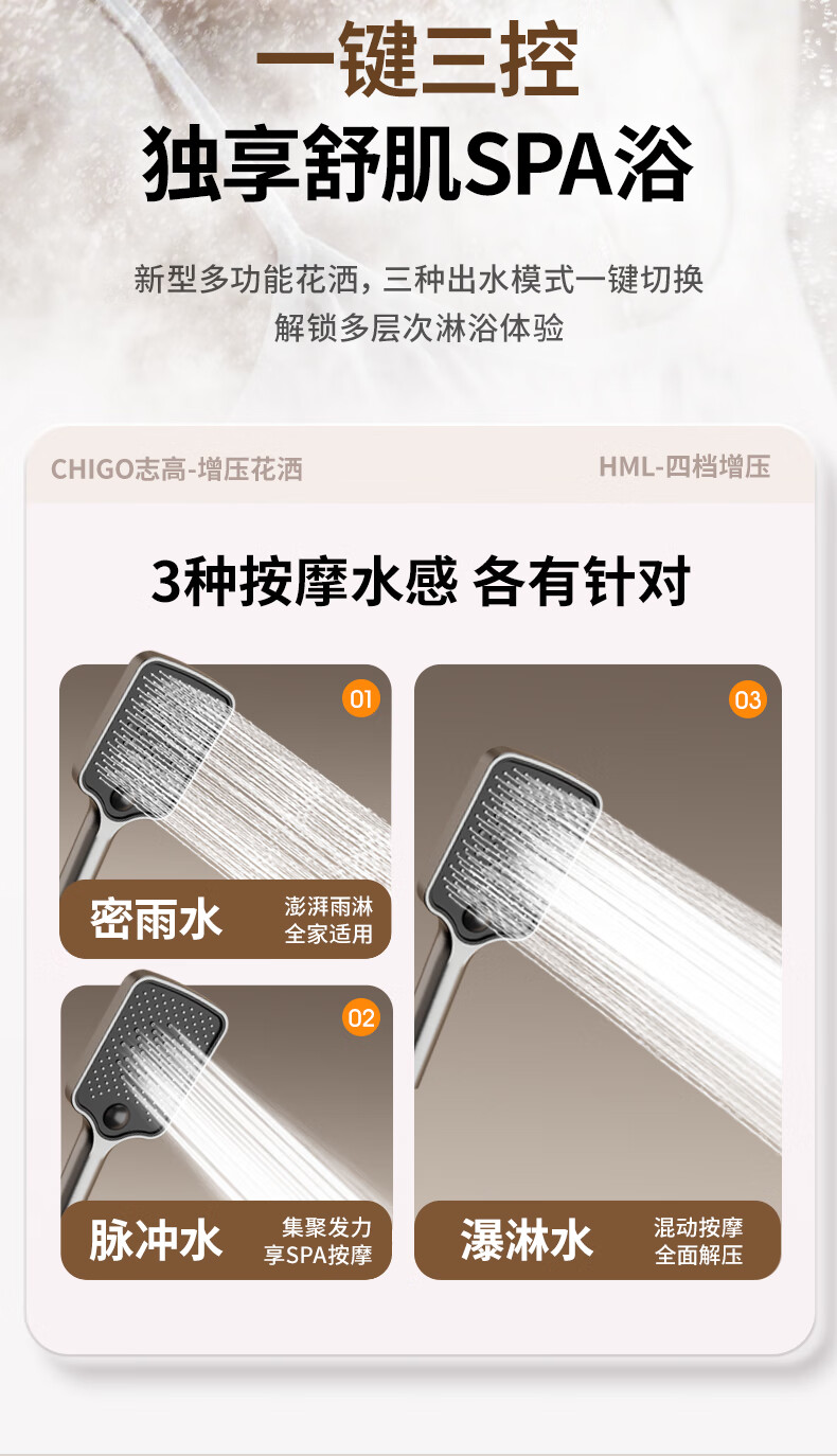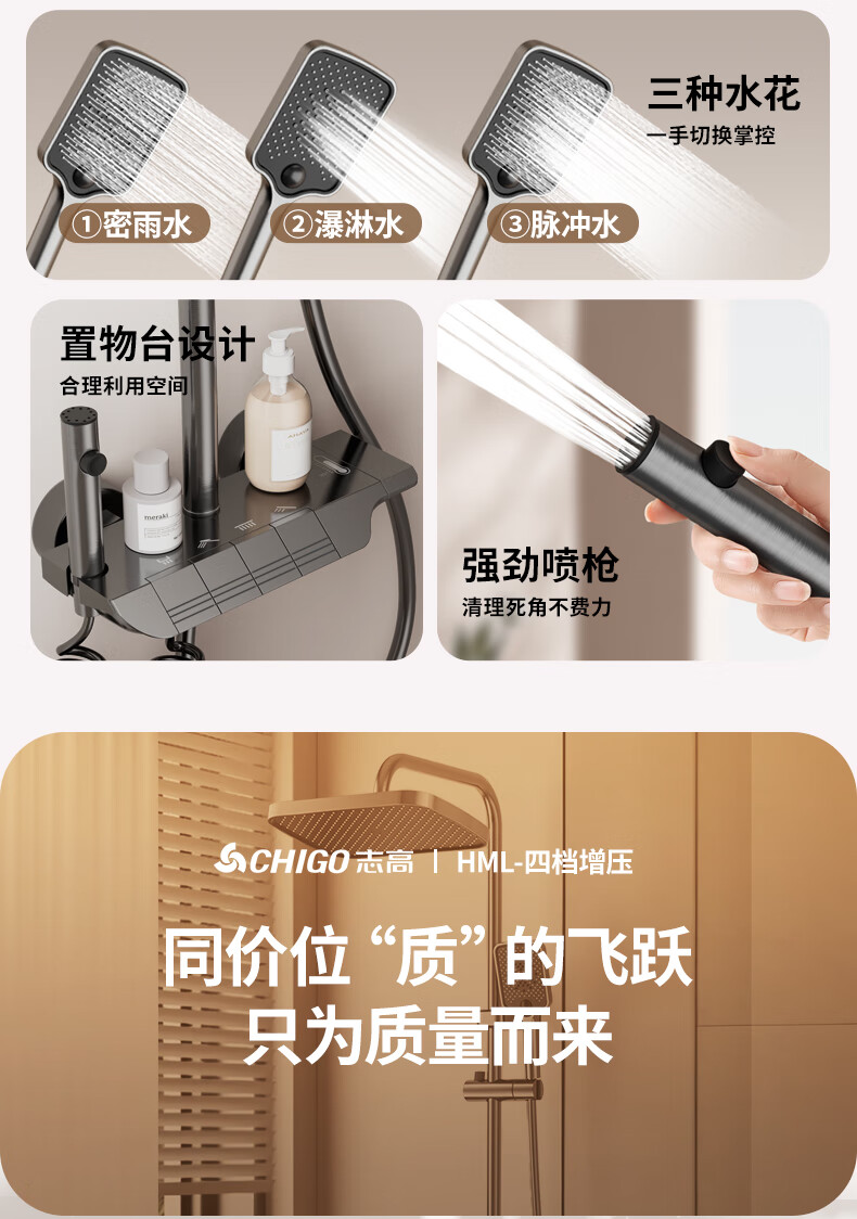志高淋浴花洒套装一体式卫浴全套超强增压一整套2025新款灰lhm四件套