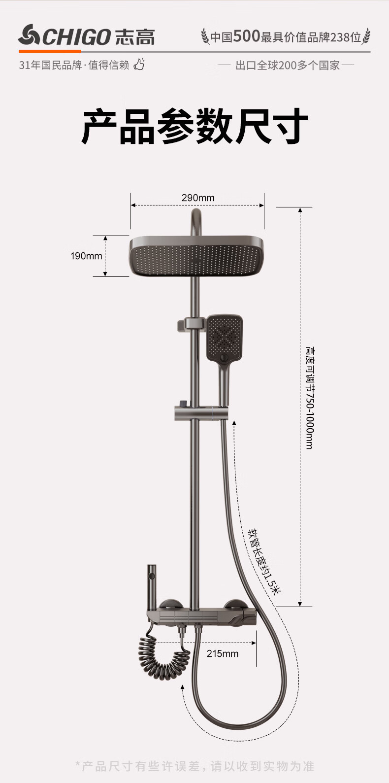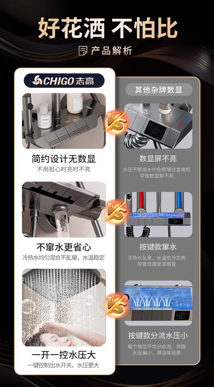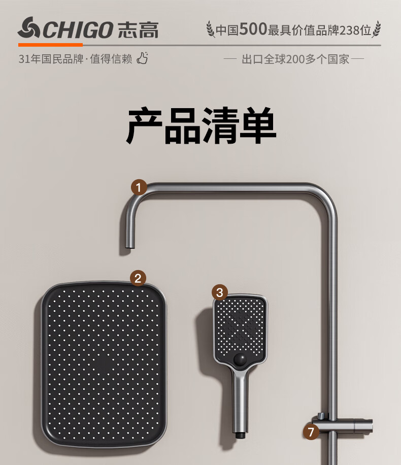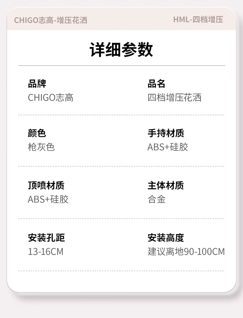志高淋浴花洒套装一体式卫浴全套超强增压一整套2025新款灰lhm四件套