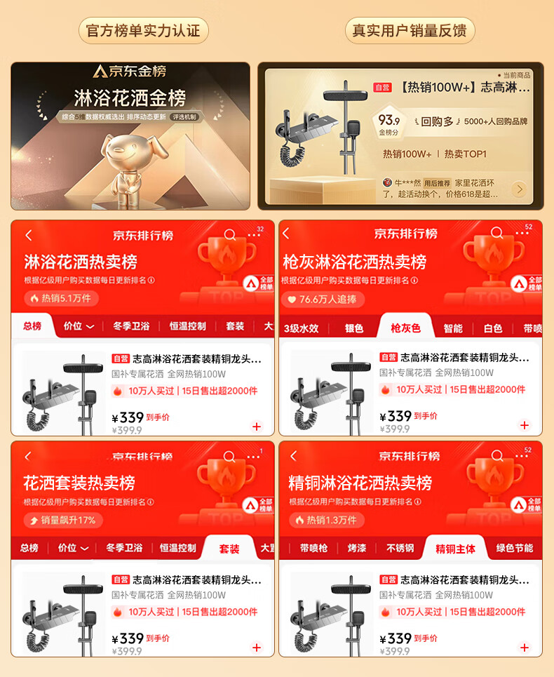 万和淋浴花洒套装精铜卫浴花洒全套增压花洒喷头浴室淋浴器【金榜TOP1