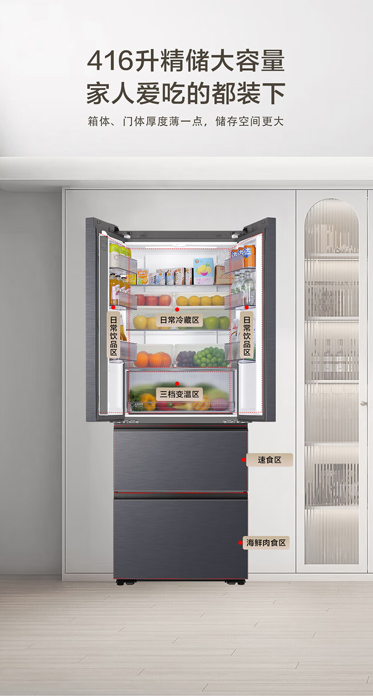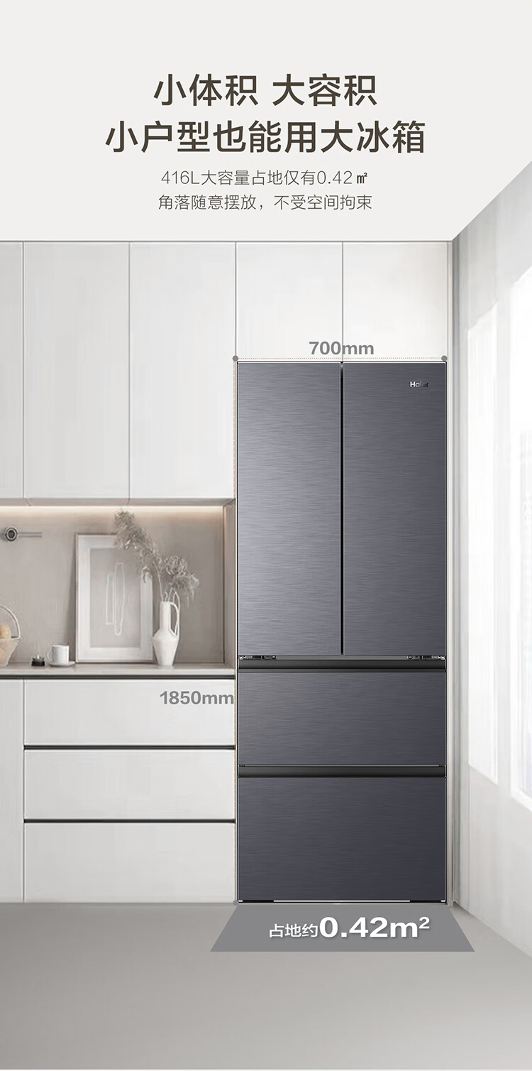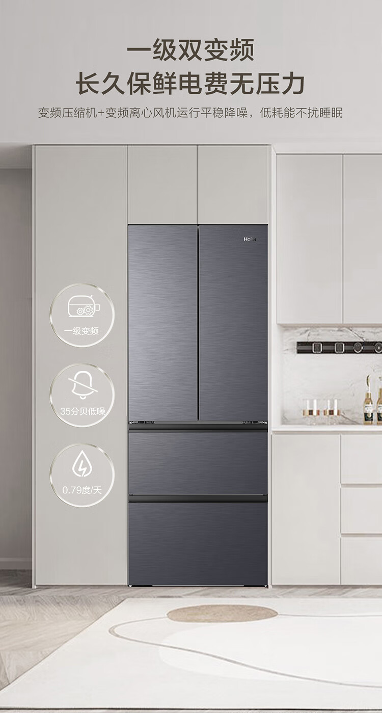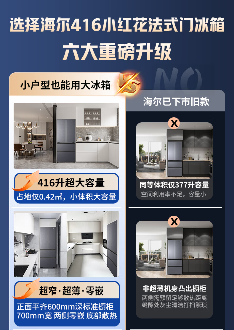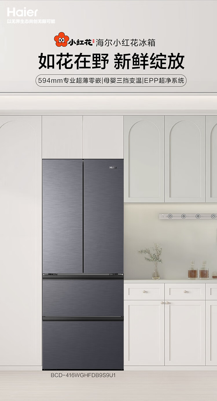 海尔冰箱小红花416升70厘米宽超薄零嵌入式60cm内法式多门双开门家用冰箱一级能效 国家补贴以旧换新 416升超薄零嵌丨70cm宽丨母婴三档变温