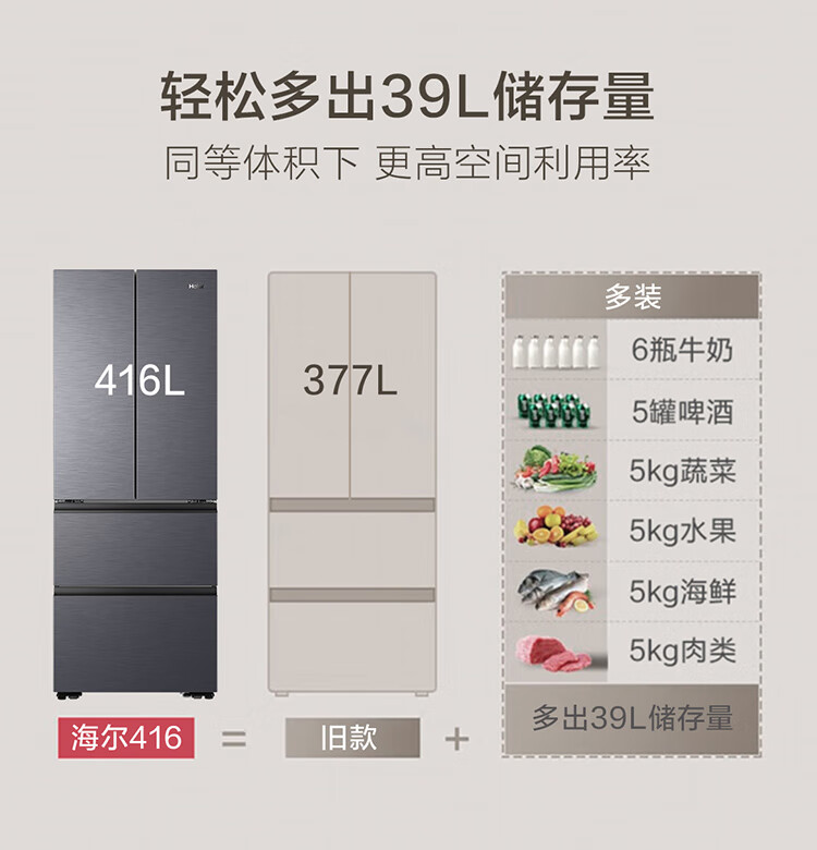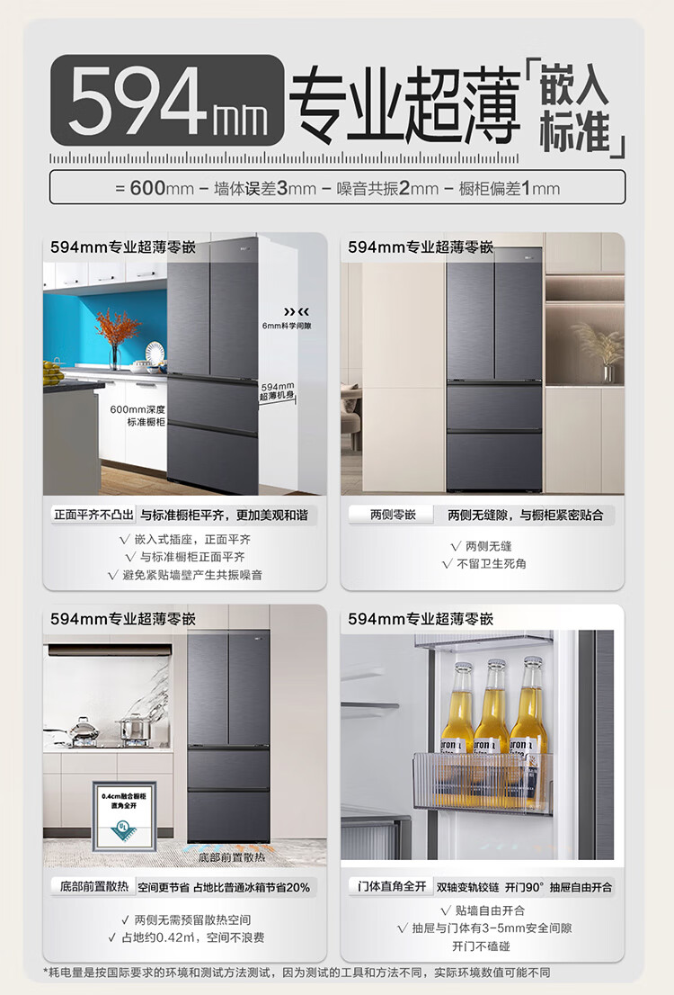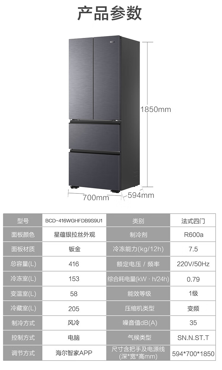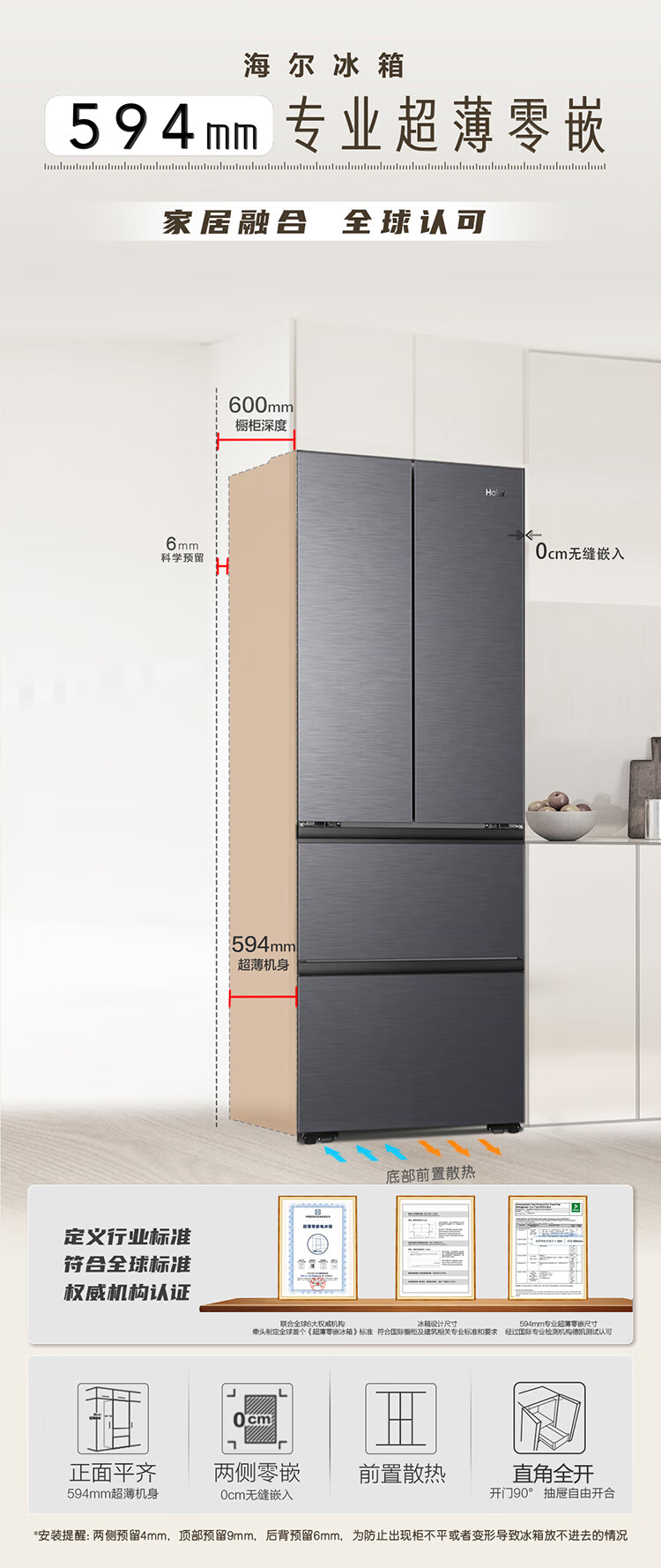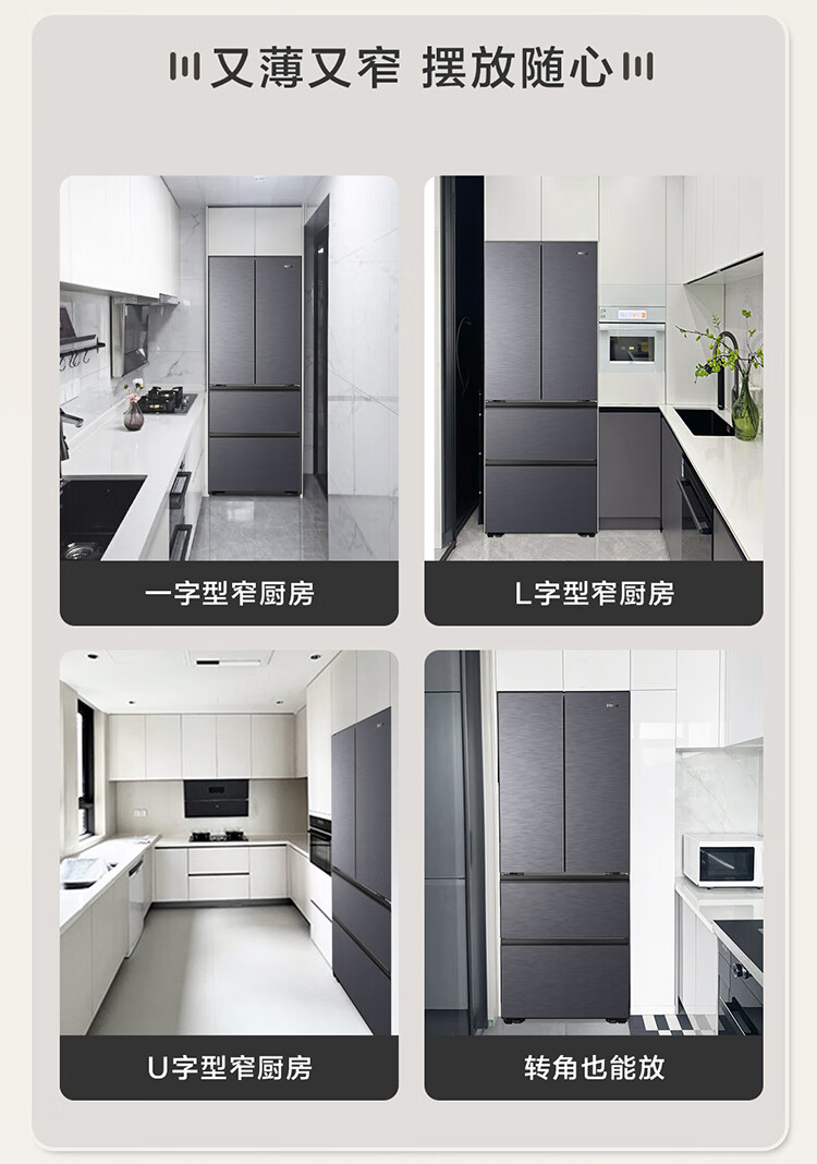 海尔冰箱小红花416升70厘米宽超薄零嵌入式60cm内法式多门双开门家用冰箱一级能效 国家补贴以旧换新 416升超薄零嵌丨70cm宽丨母婴三档变温