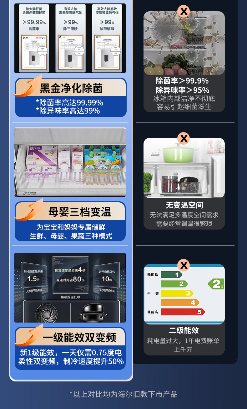 海尔(Haier)风冷无霜冷柜家用商用冰柜全冷冻柜保鲜冷藏柜单温区单开门一级能效省电速冻卧式冷柜深冷小冰箱 电子控温|-38℃深冷|黑金净化抗菌| 200L