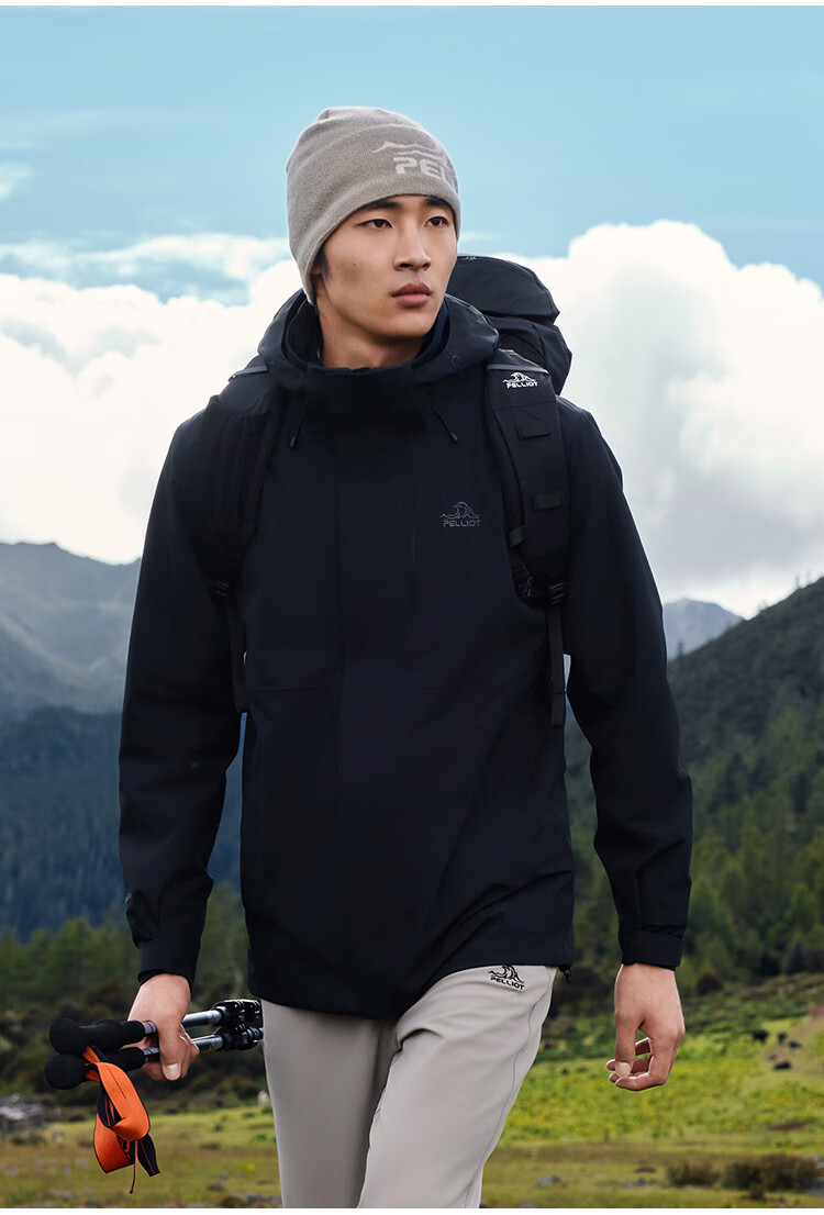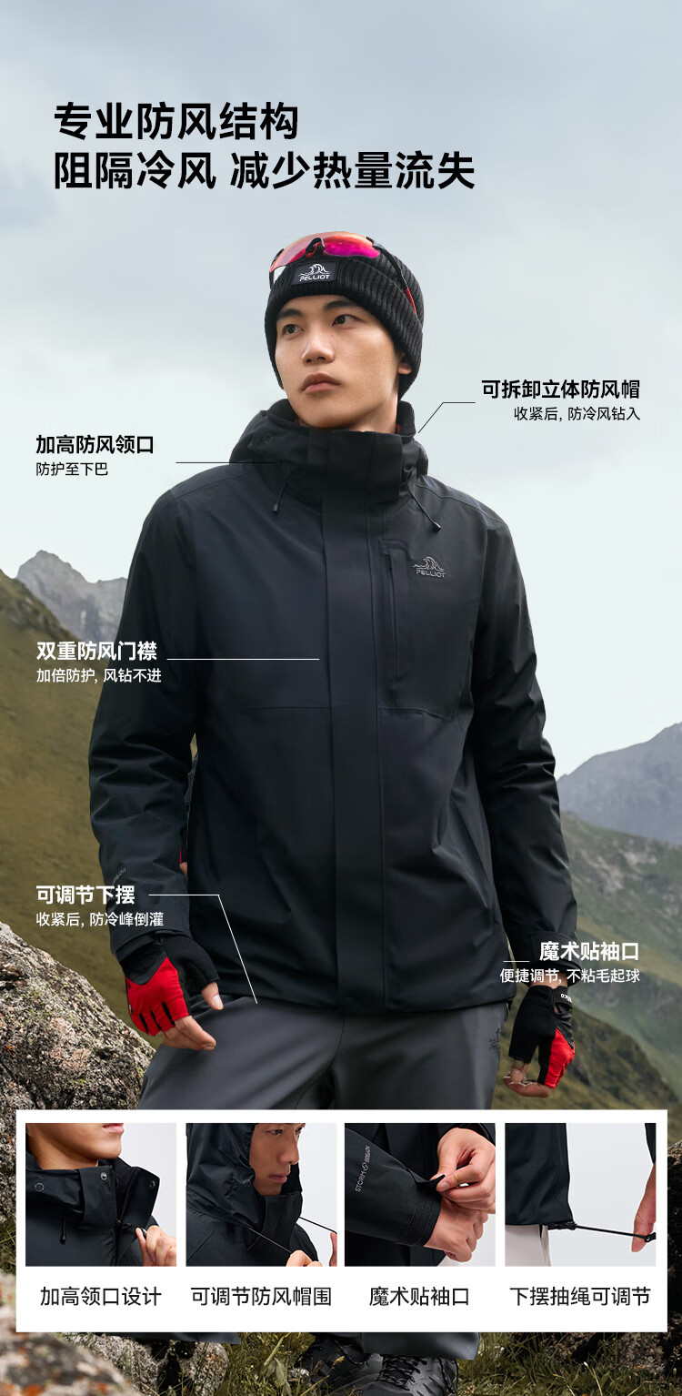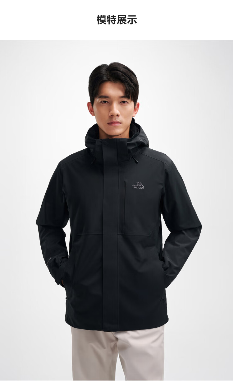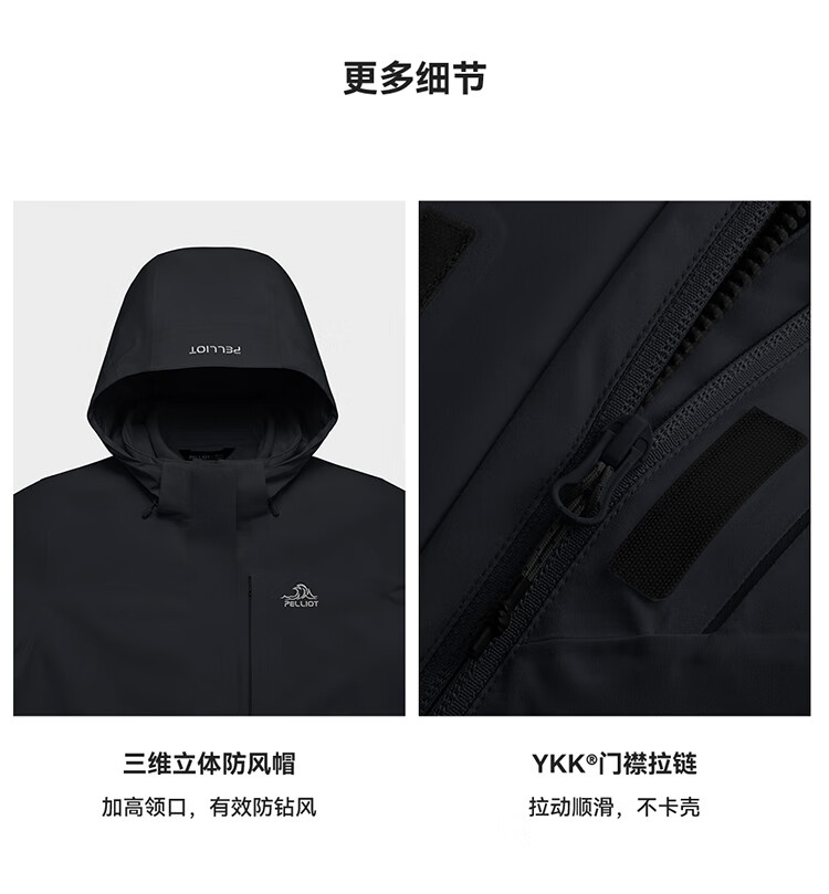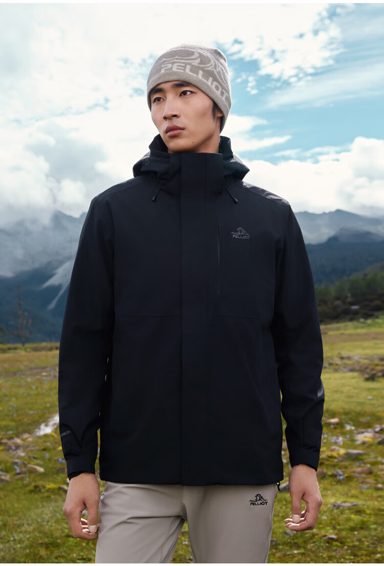 伯希和(Pelliot)[成毅同款]赤焰冲锋衣男户外机能三合一防水外套115301063黑XL