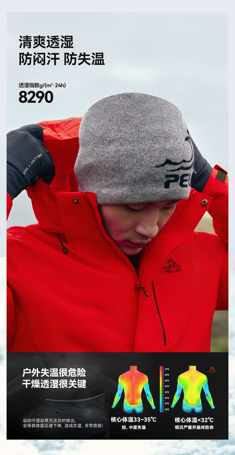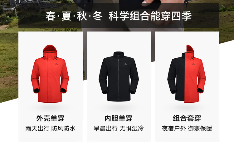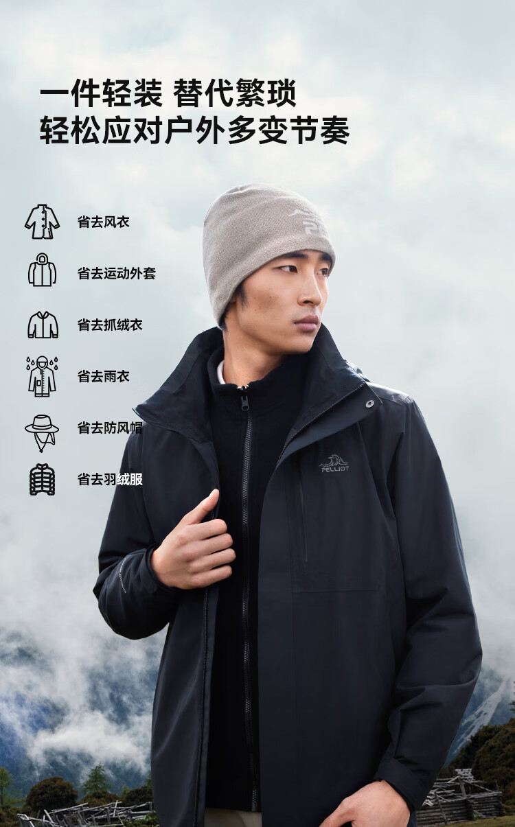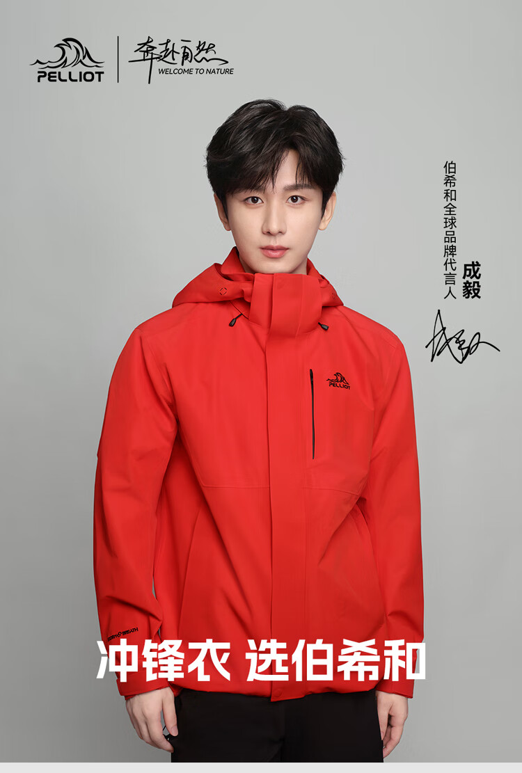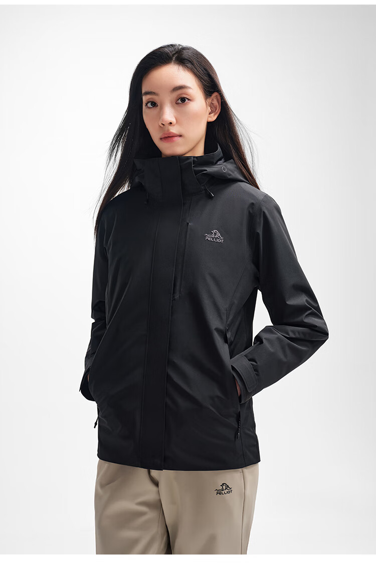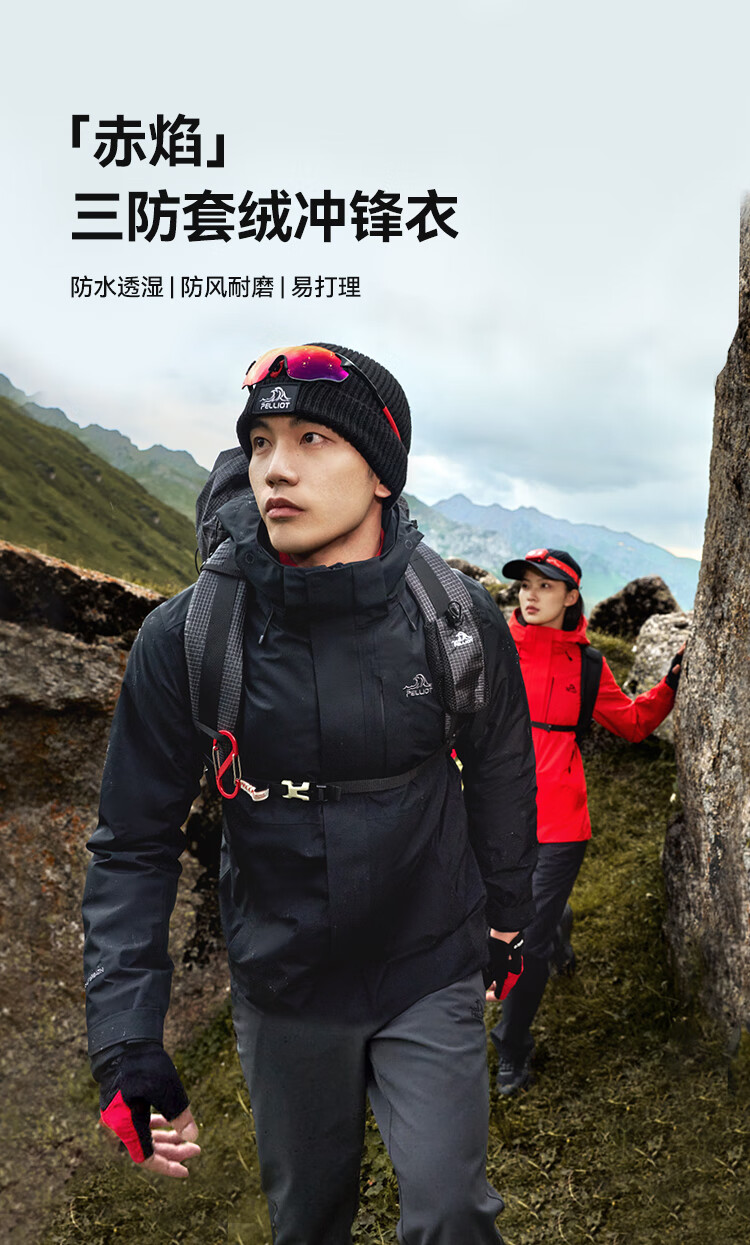 伯希和(Pelliot)[成毅同款]赤焰冲锋衣男户外机能三合一防水外套115301063黑XL
