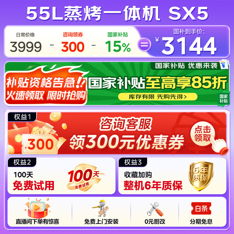 美的SX5全嵌蒸烤箱嵌入式蒸烤箱一体机家用蒸烤箱55L大容量温湿智控涡轮风炉烤蒸烤炸炖燃卡脱脂 【行业热卖top】美的SX5嵌入式蒸烤炸炖蒸烤箱