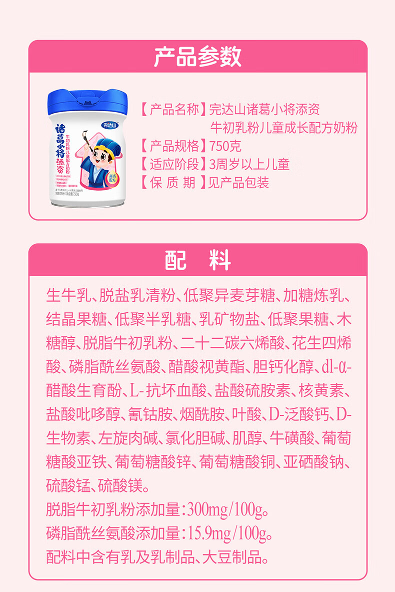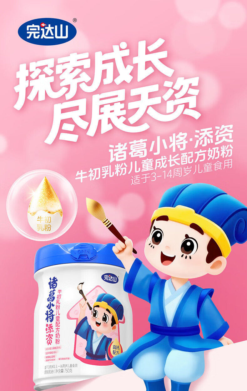 完达山诸葛小将添资脑动力儿童成长配方奶粉750克四段奶粉(3周岁以上)