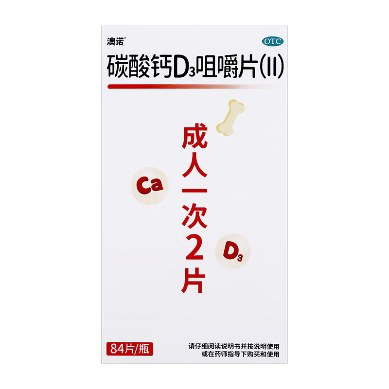 澳诺 成人碳酸钙D3咀嚼片(II) 84片 哺乳期孕妇钙片儿童中老年 补钙辅助治疗骨质疏松腿脚抽筋