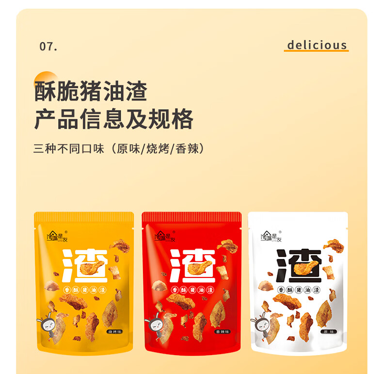 不多言猪油渣零食香酥脆皮五花肉粕脂青岛特产脆哨即食网红小吃休闲食品 【3包/150g】原味*1包+烧烤味*1包+香辣味*1包