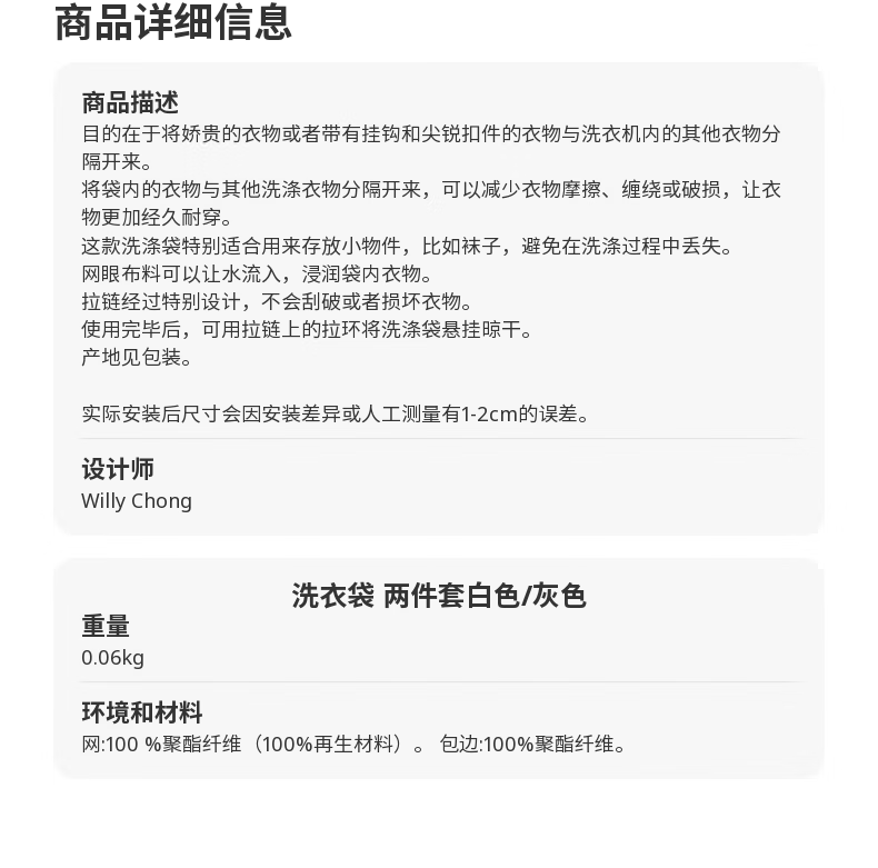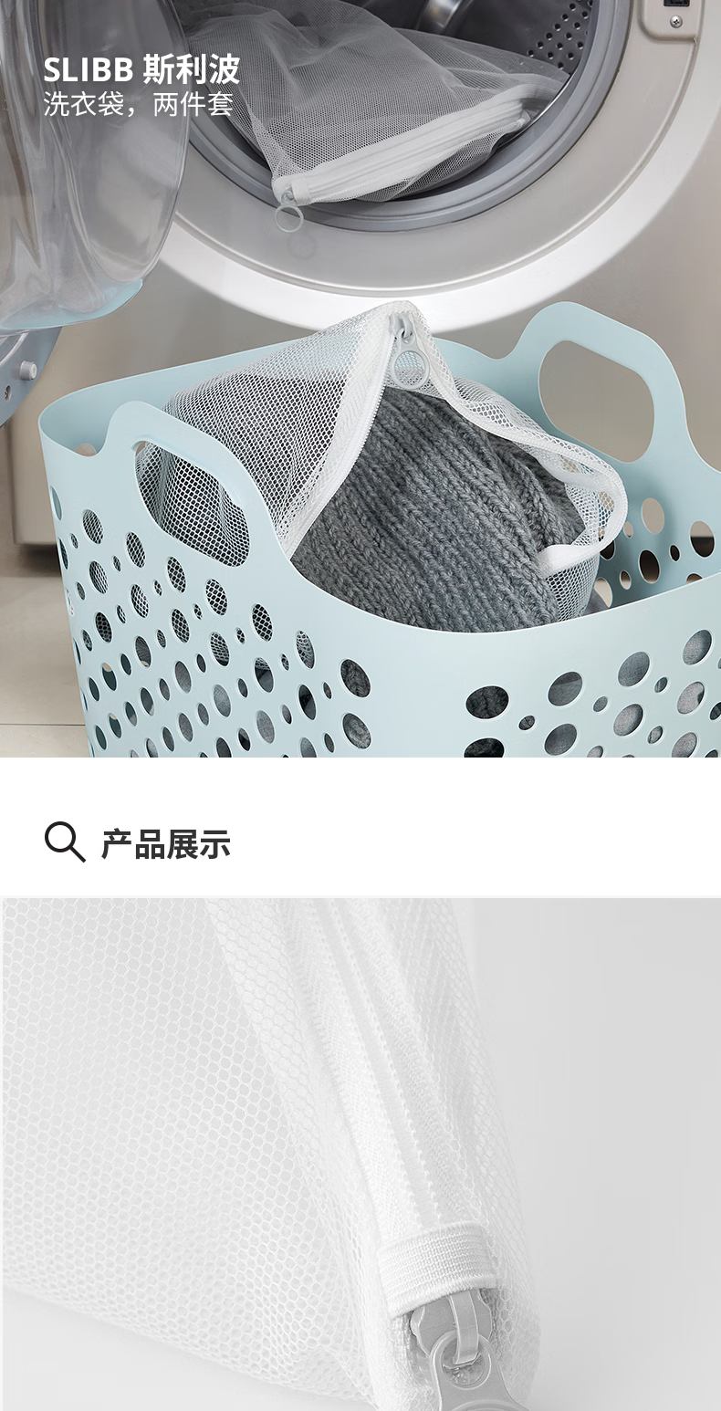 宜家(IKEA)顺手买一件SLIBB 斯利波洗衣袋两件套 白色/灰色 洗衣袋,两件套白色/灰色