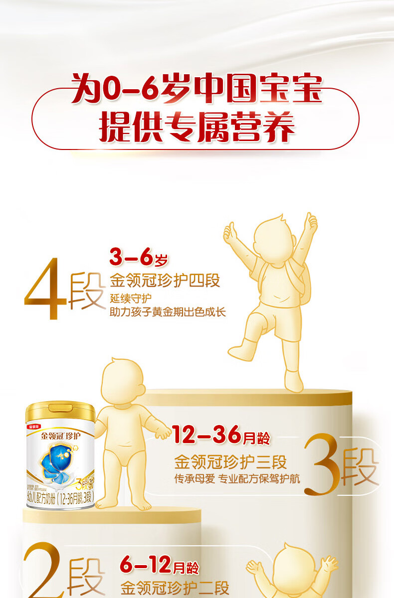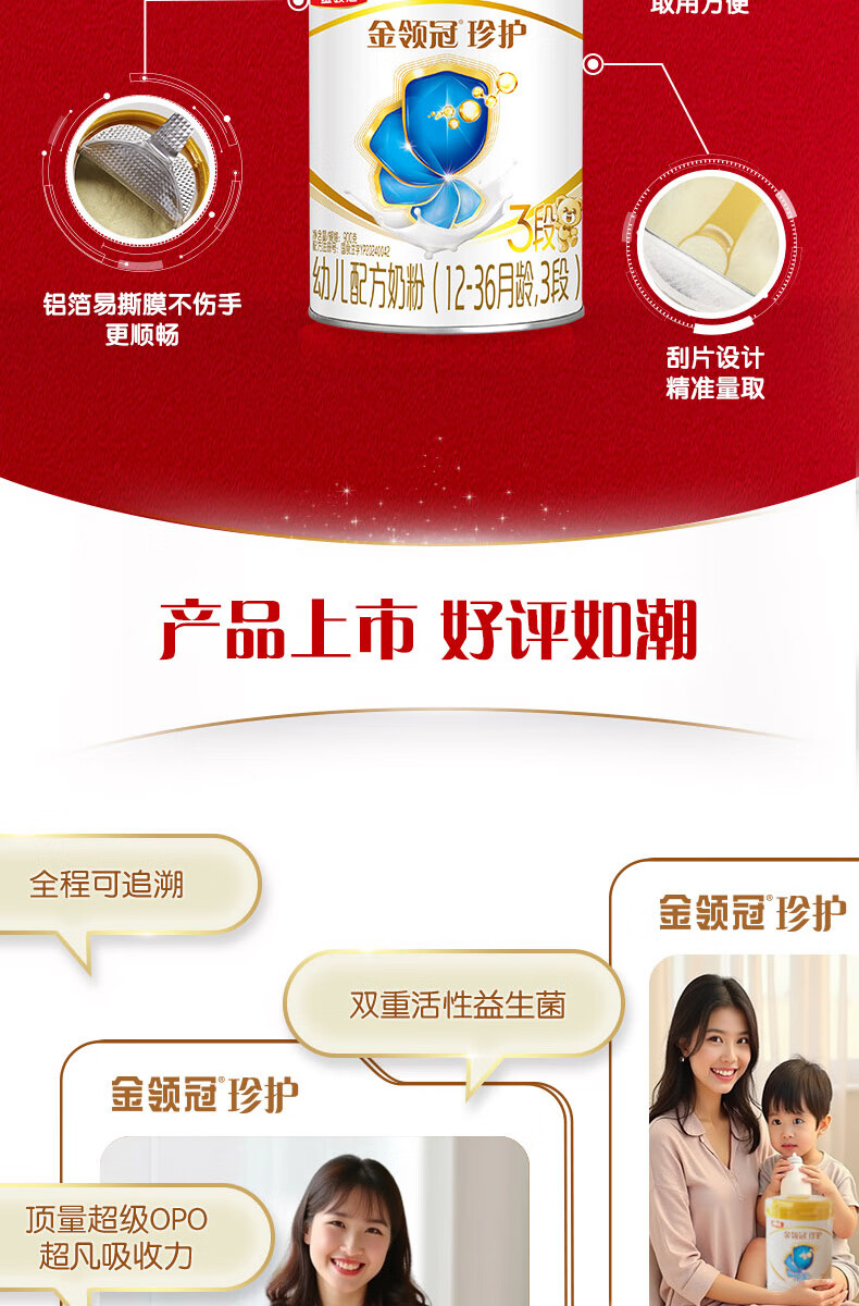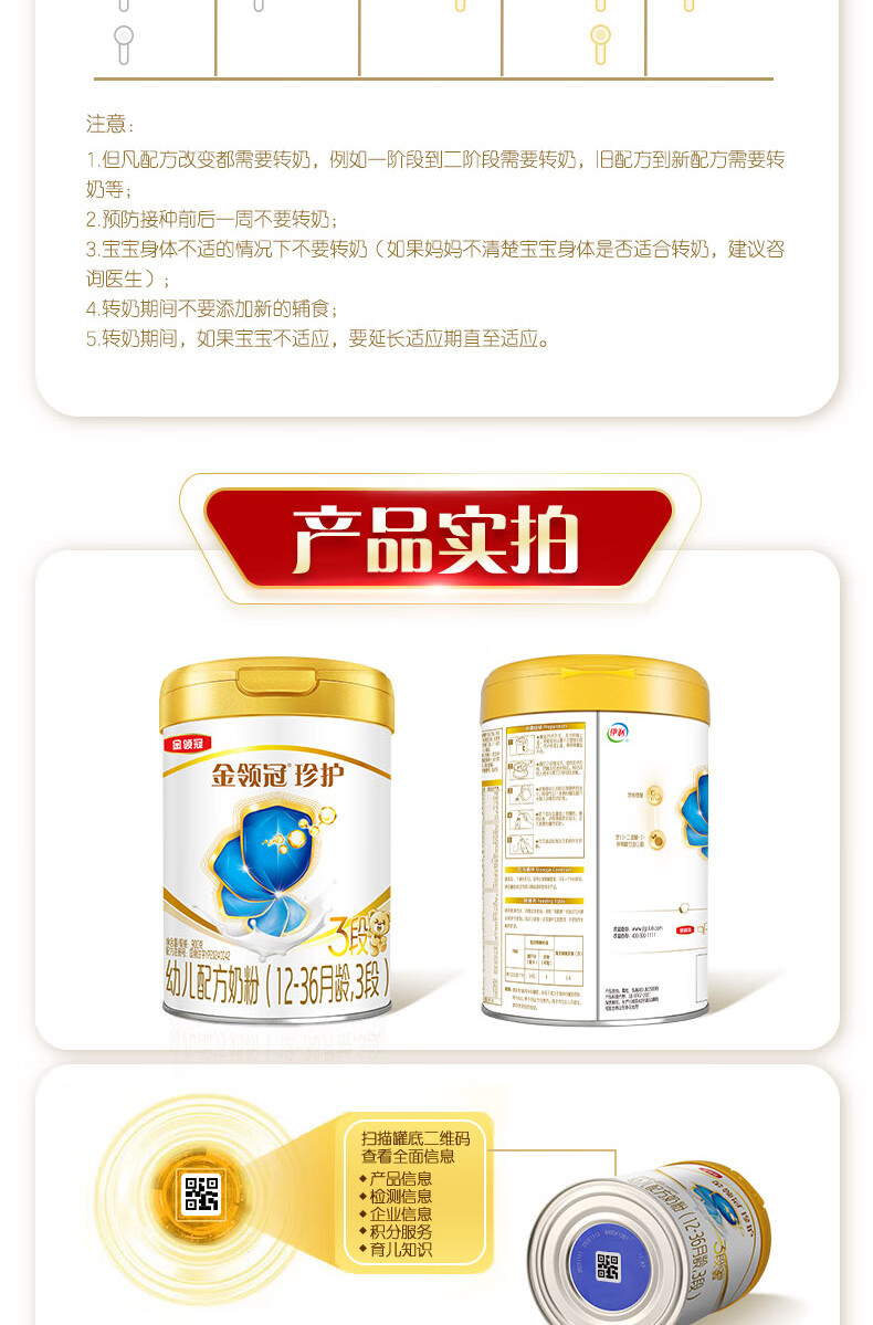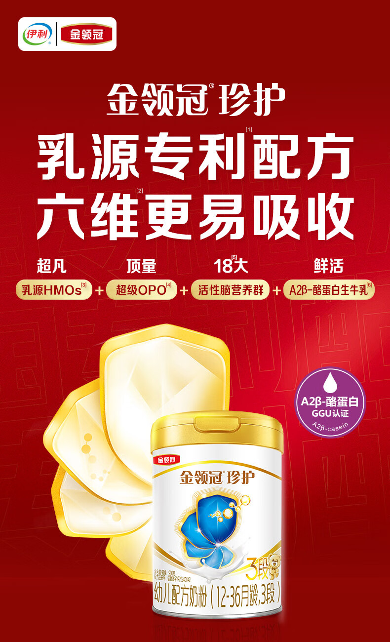 伊利金领冠珍护【三代OPO好吸收】幼儿A2β-酪蛋白奶粉3段(1-3岁)900g