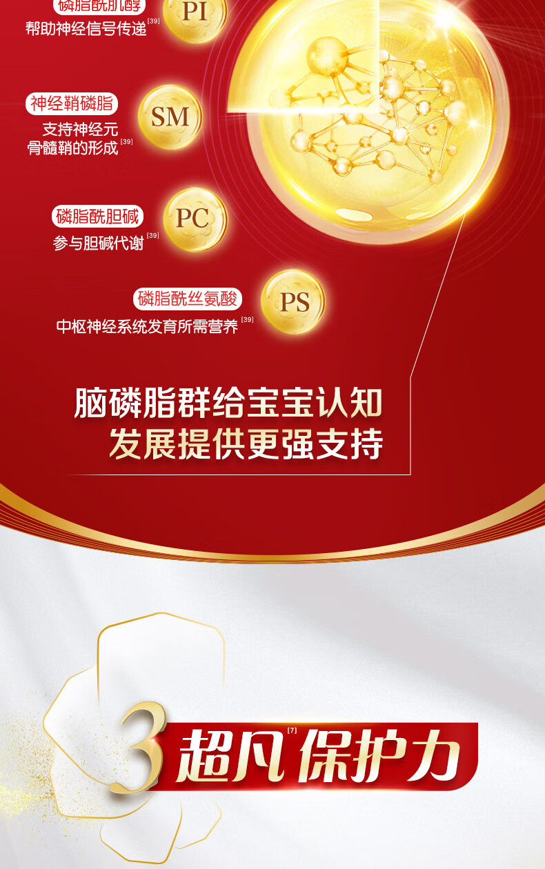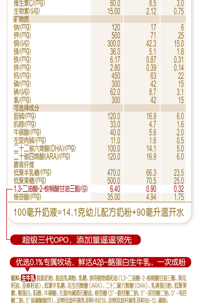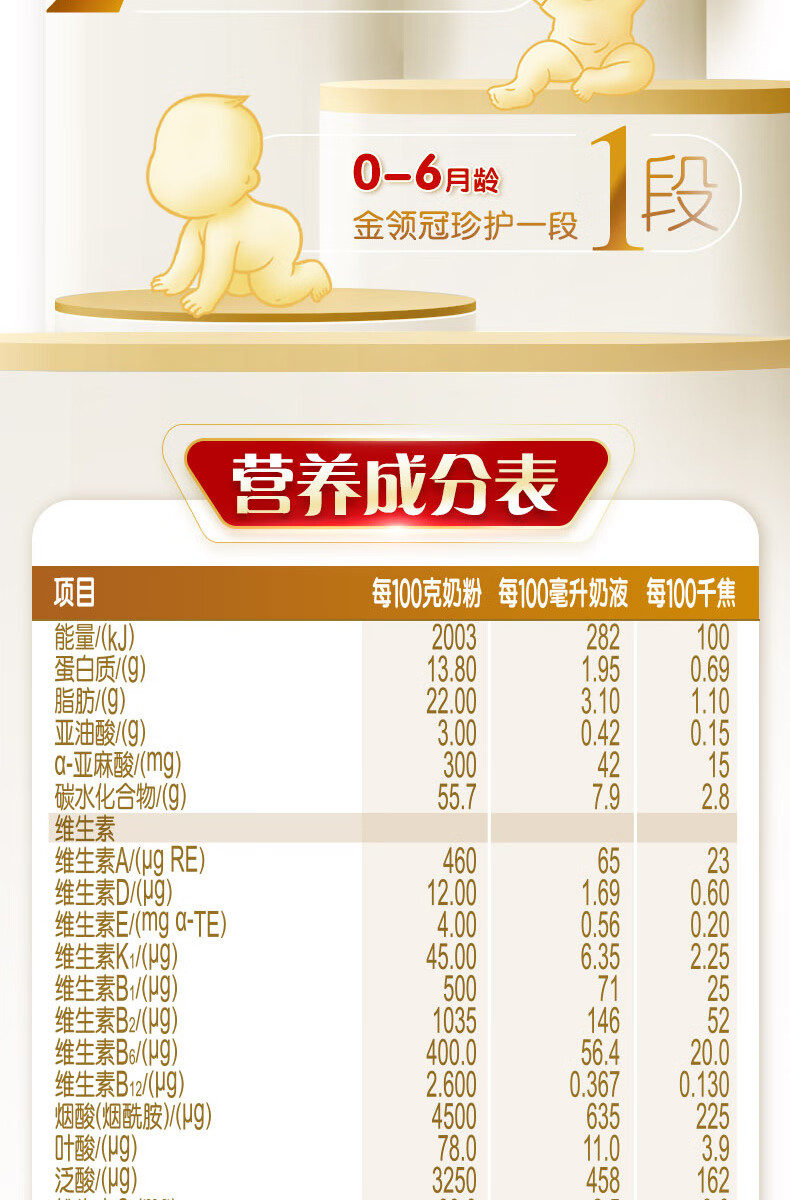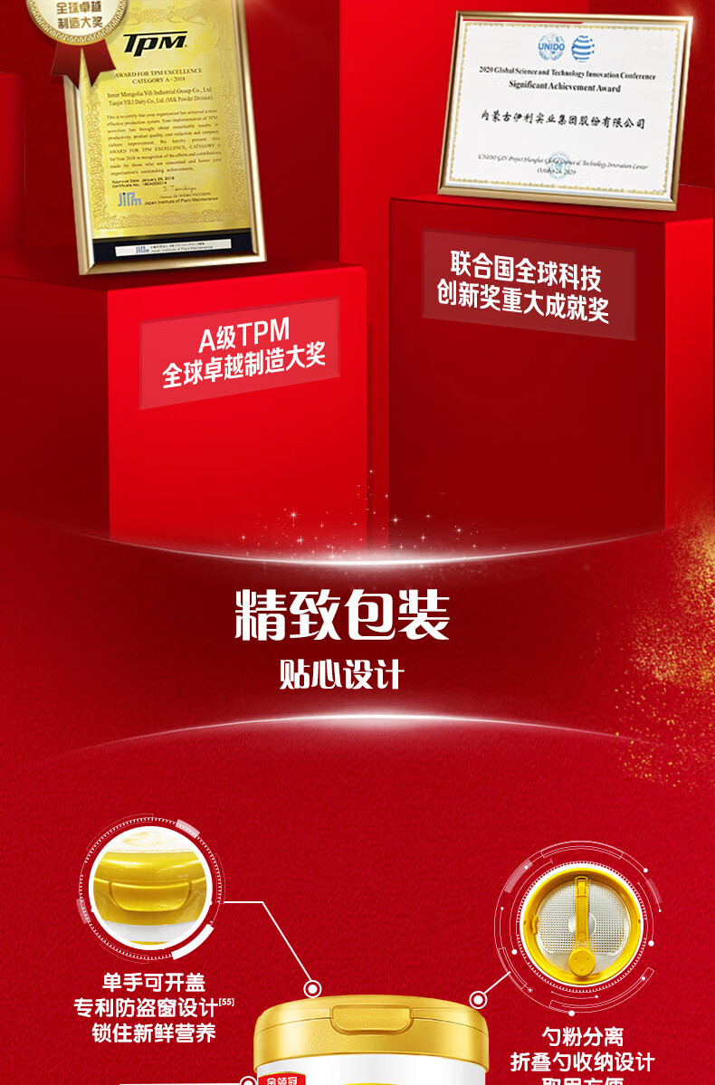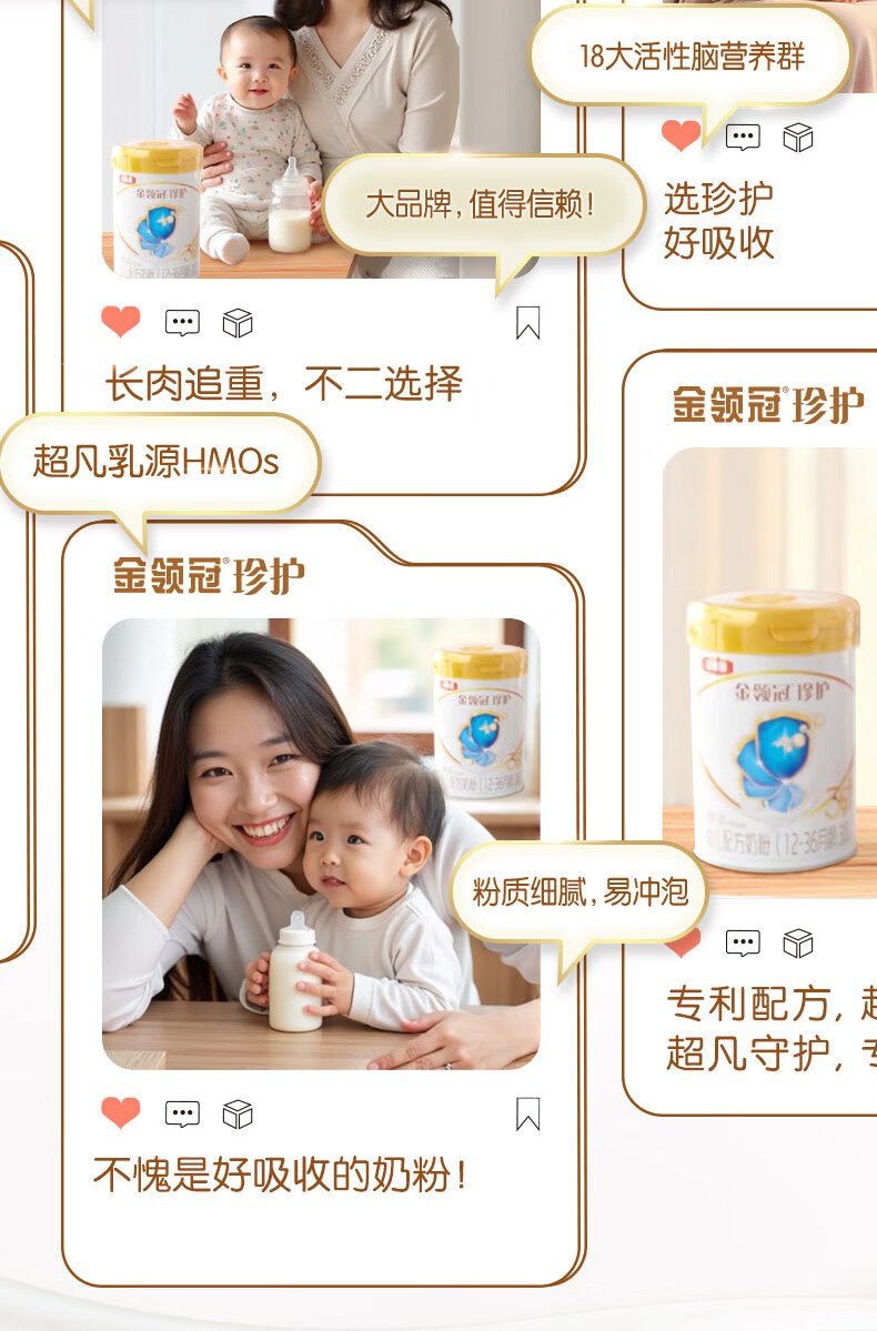 伊利金领冠珍护【三代OPO好吸收】幼儿A2β-酪蛋白奶粉3段(1-3岁)900g