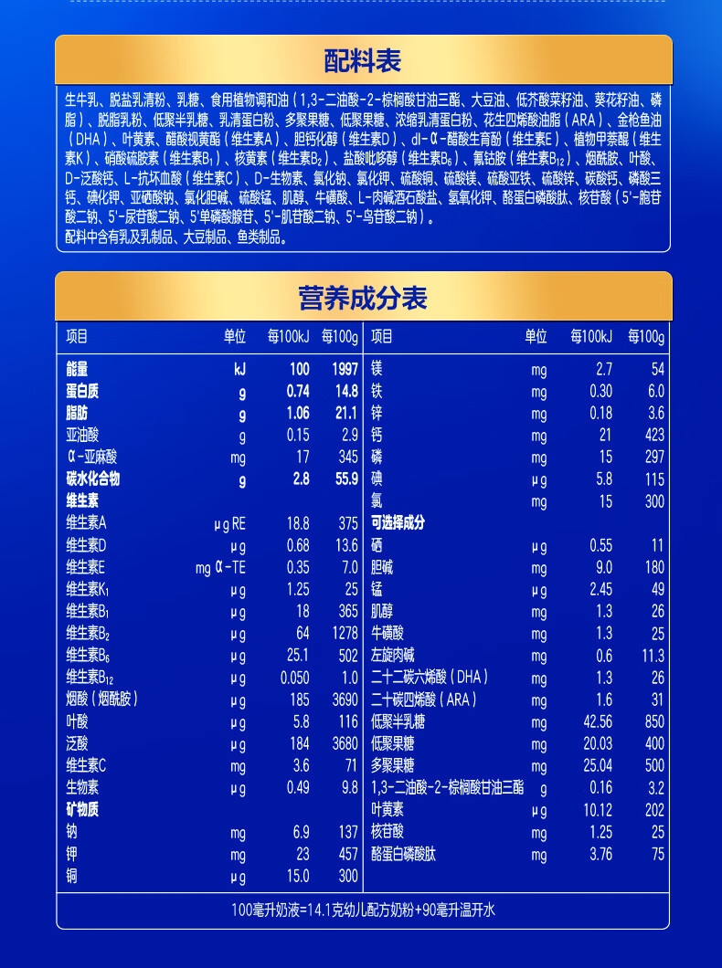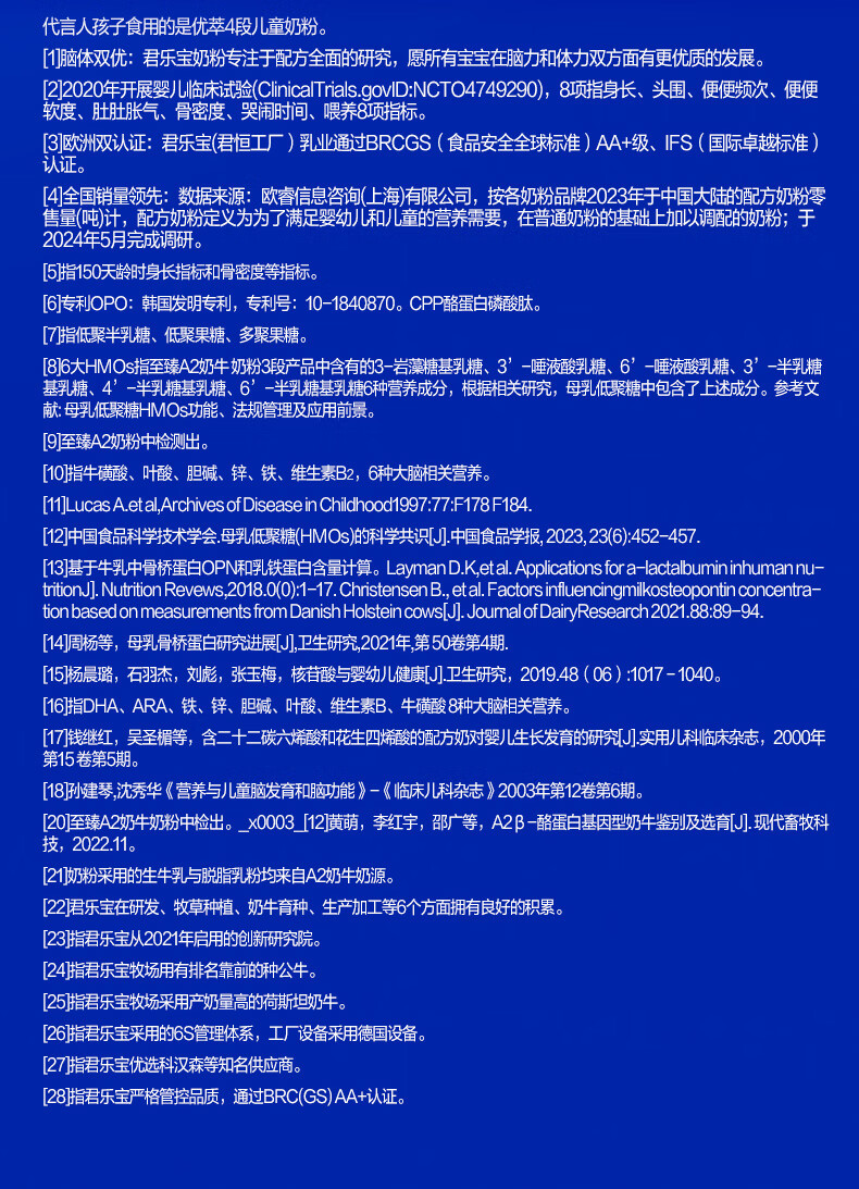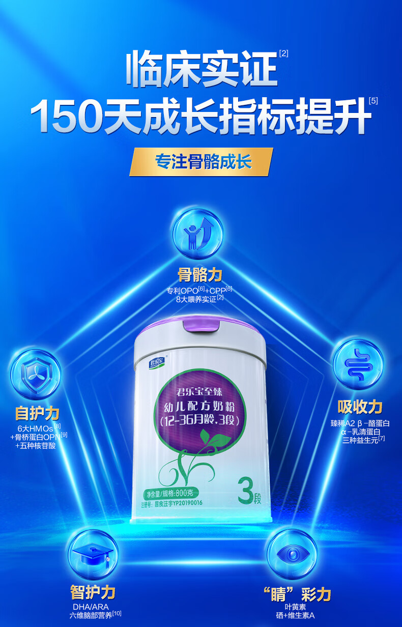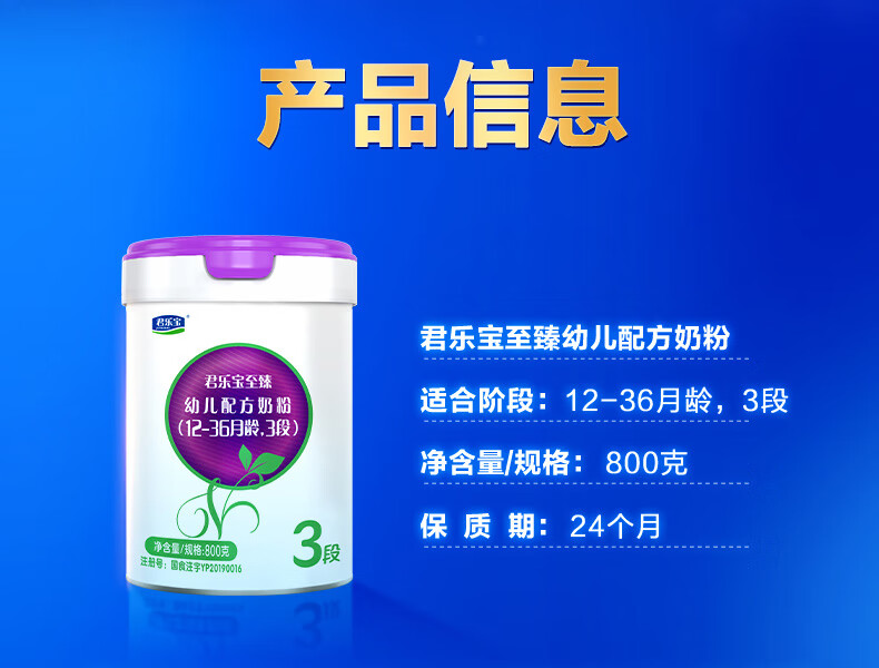 君乐宝(JUNLEBAO)至臻 A2奶牛奶粉3段(12-36月龄)听装800g 添加OPO+CPP