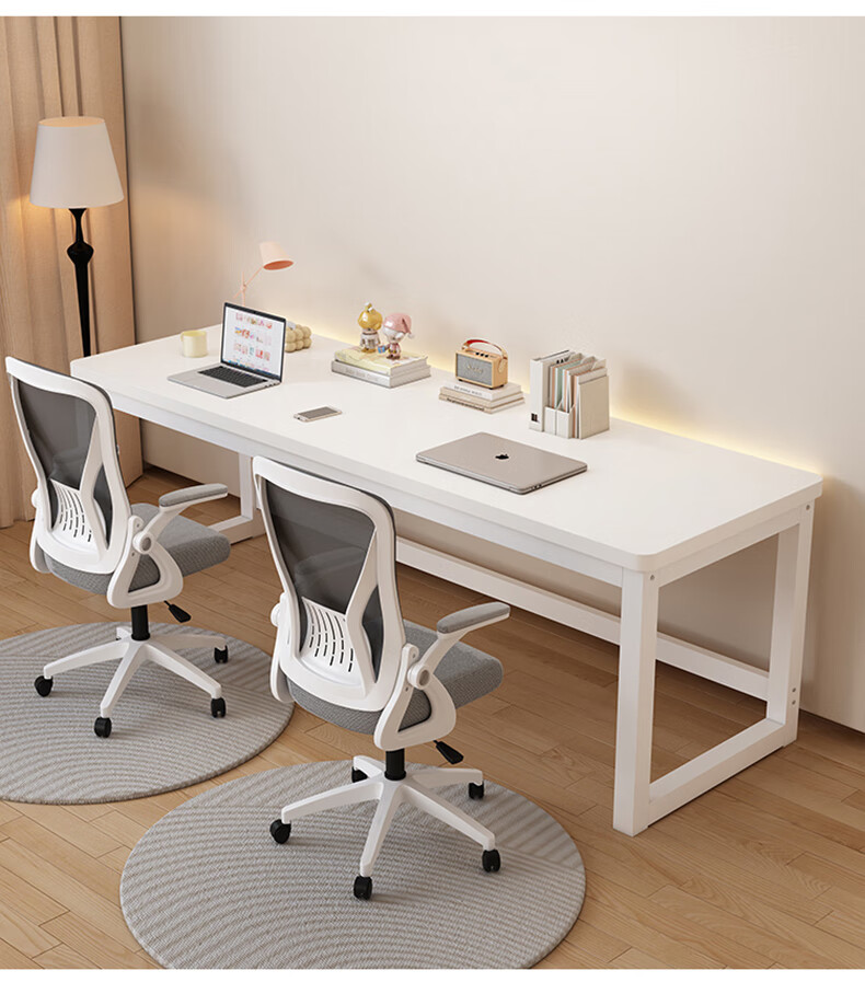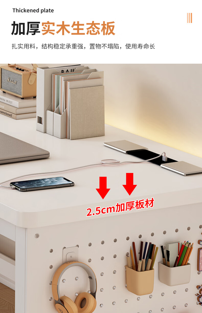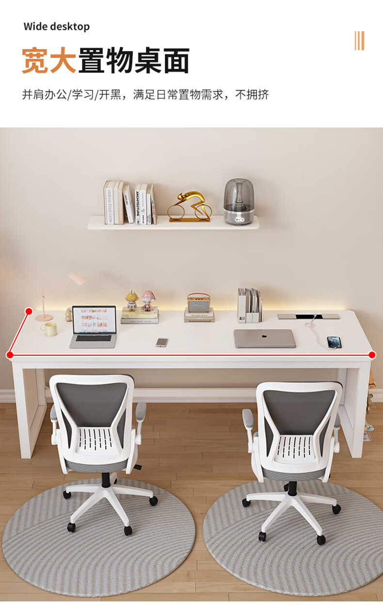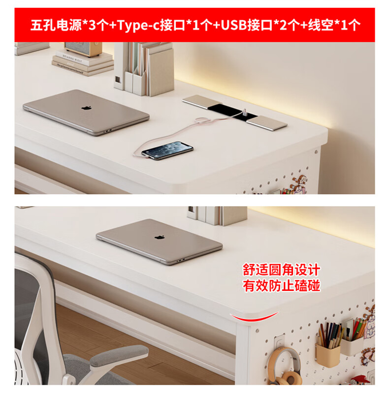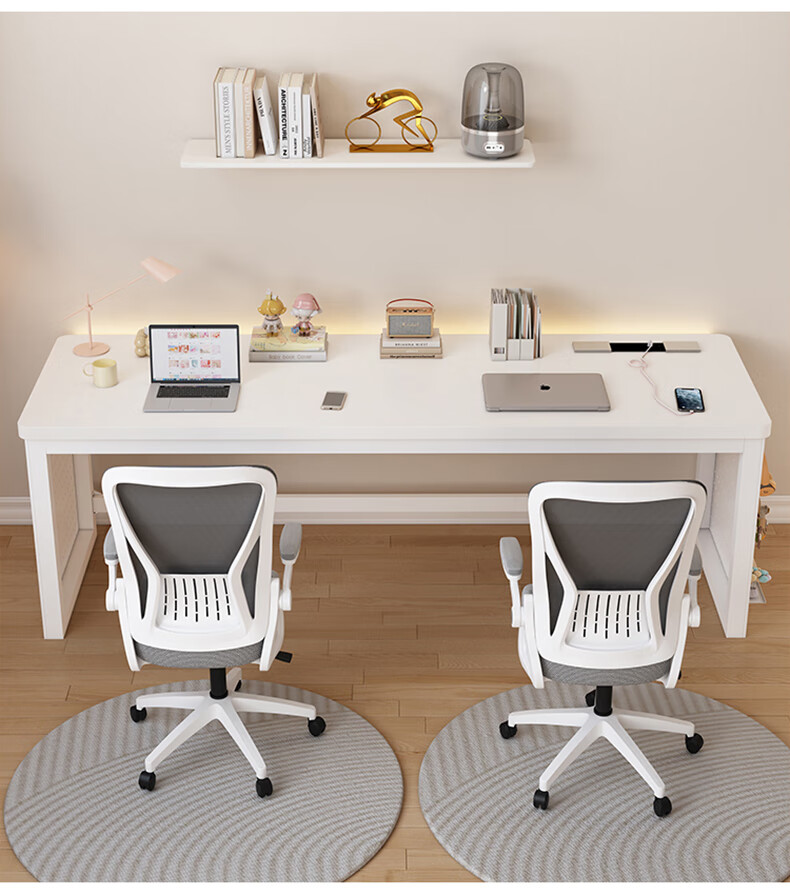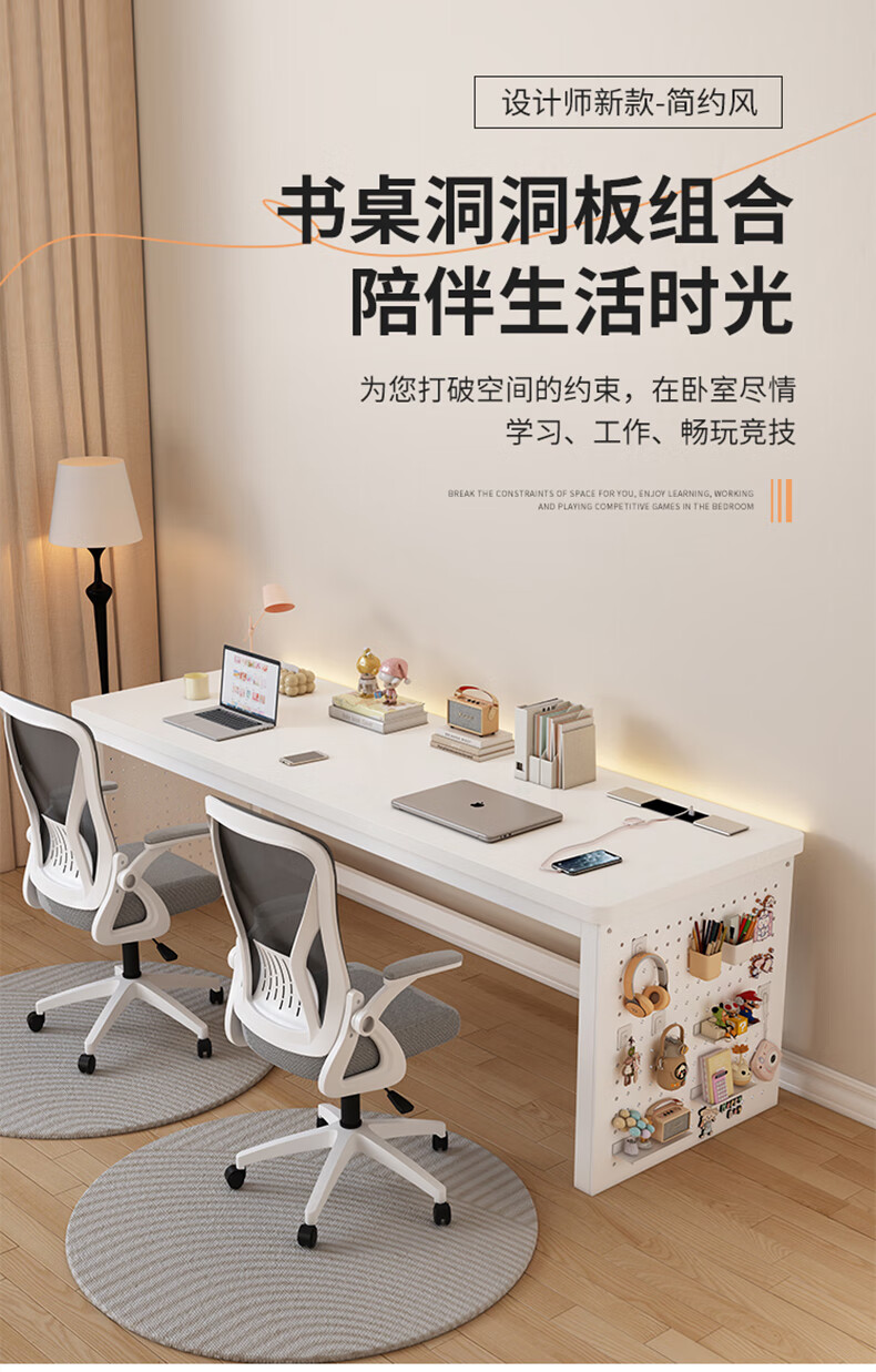 盛翘铭楚实木书桌电脑桌卧室家用双人桌子工作台办公桌加厚洞洞板电竞桌子 白桌+白腿+插排 200*60cm