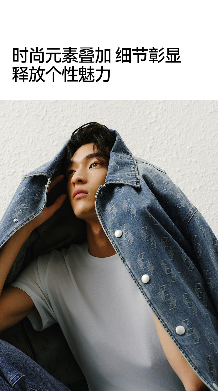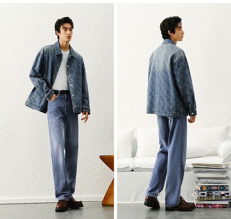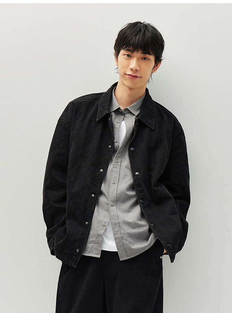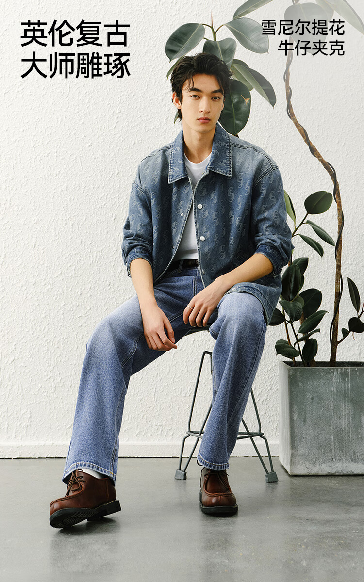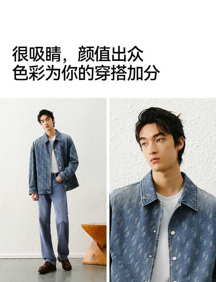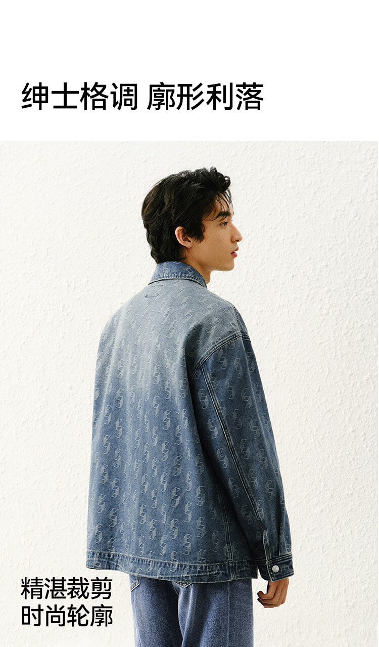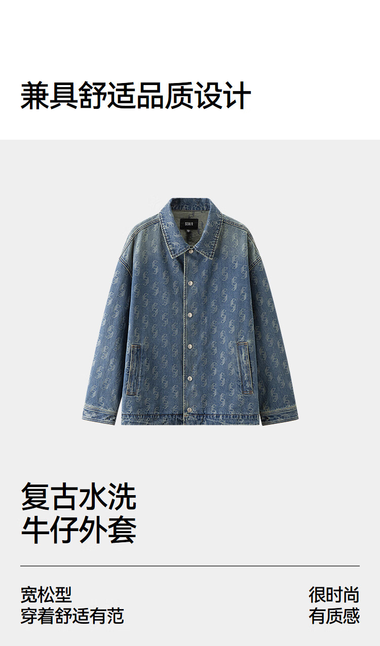 森马(Semir)夹克男春装提花肌理牛仔外套复古水洗宽松休闲服上衣103125108101