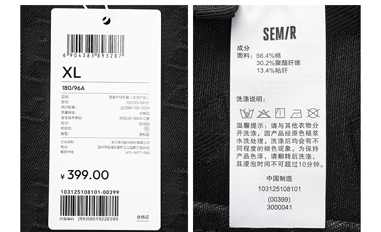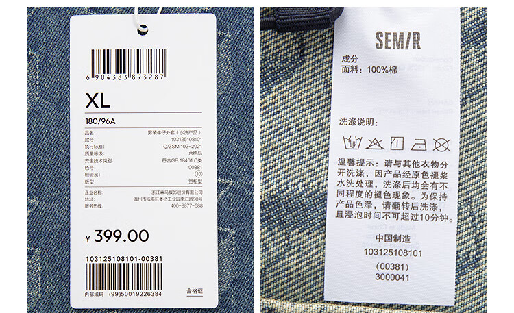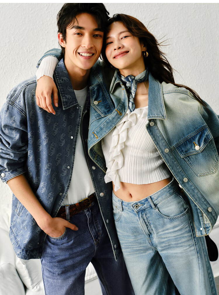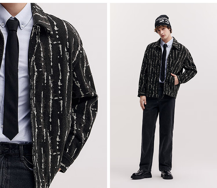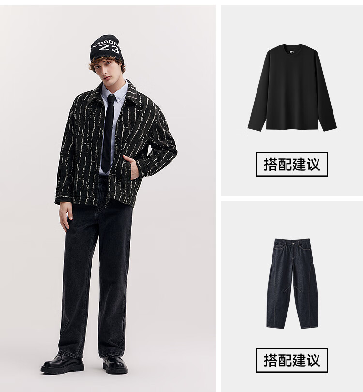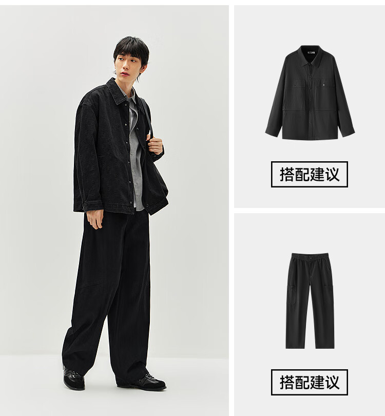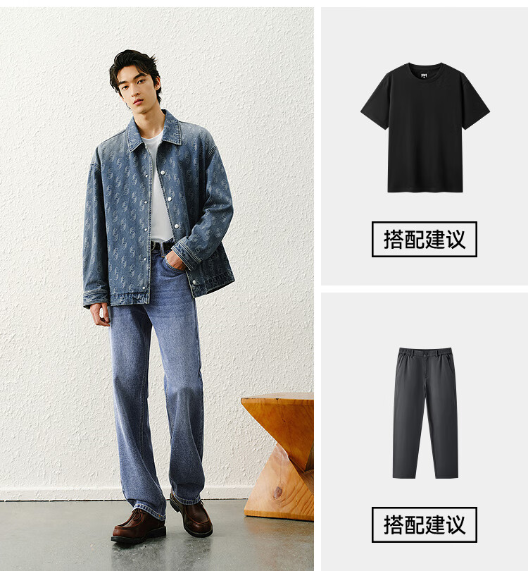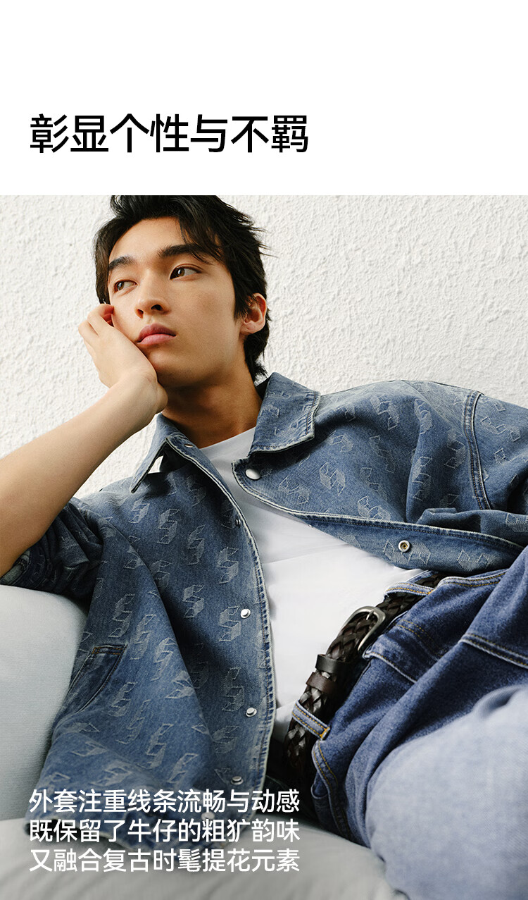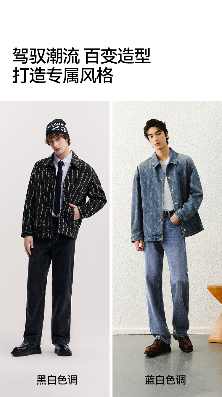森马(Semir)夹克男春装提花肌理牛仔外套复古水洗宽松休闲服上衣103125108101