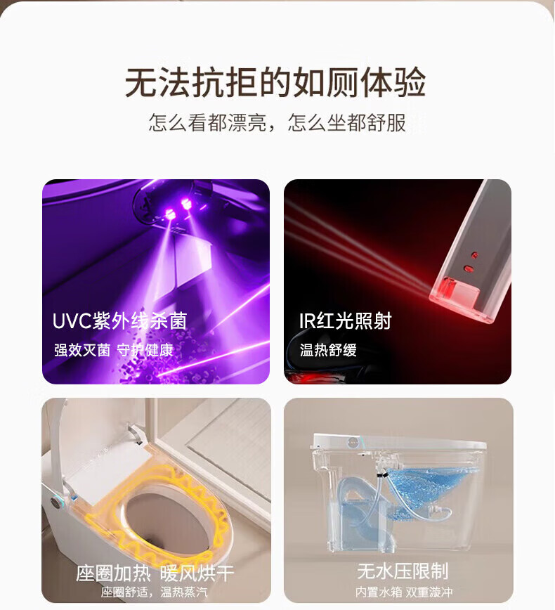 瑞尔特(R&T)自动开盖等离子杀菌无水压限制智能马桶 UX6 305/300mm