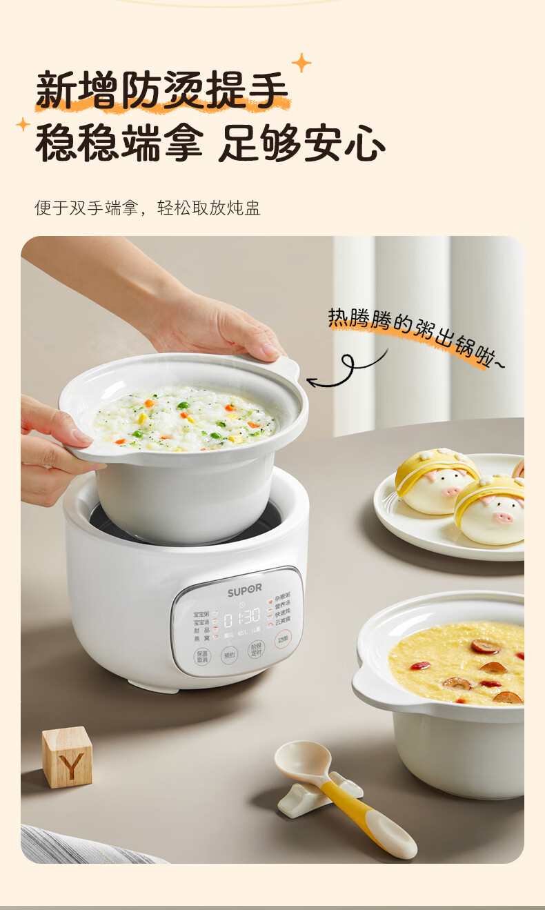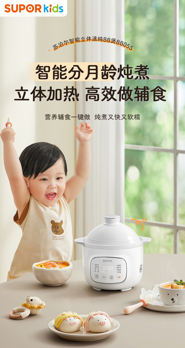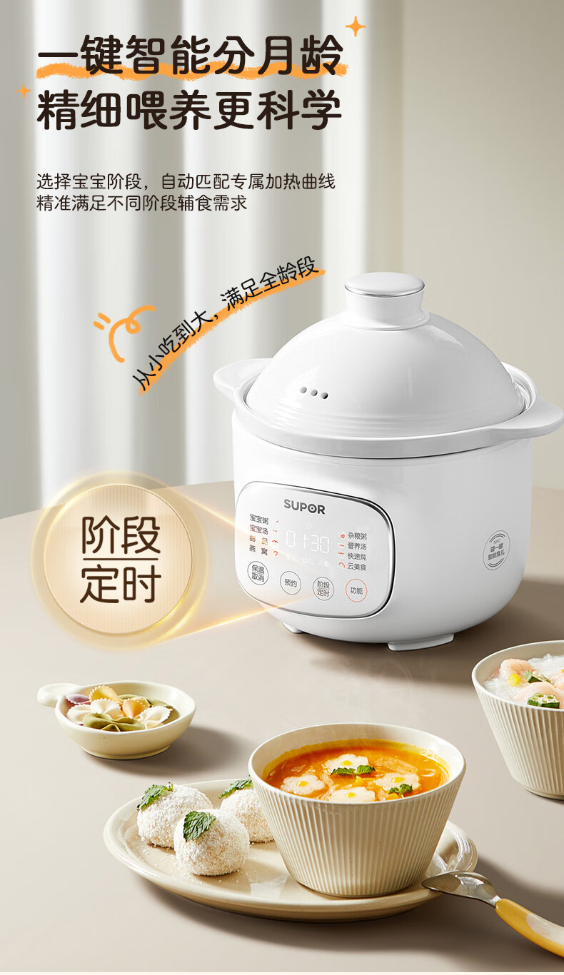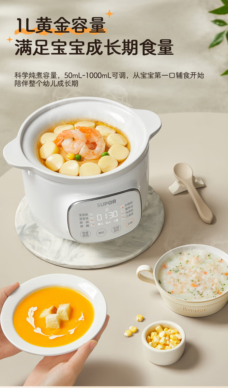 苏泊尔(SUPOR)辅食锅 婴儿BB煲 宝宝电炖锅 电炖盅 煮粥锅 米油分月龄 1L BB05S