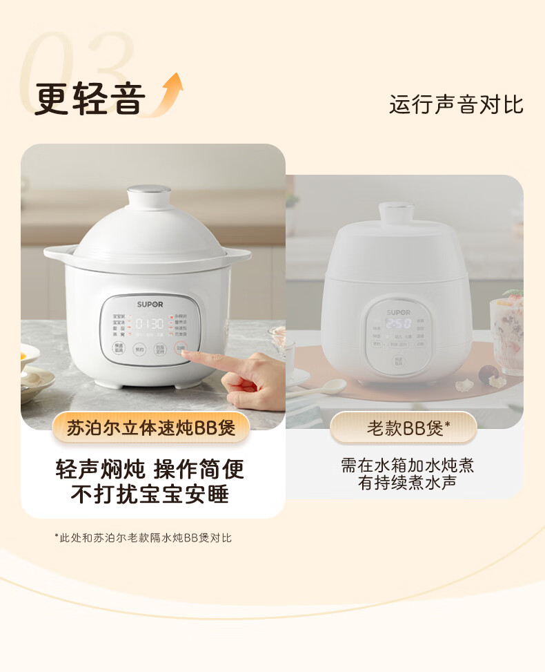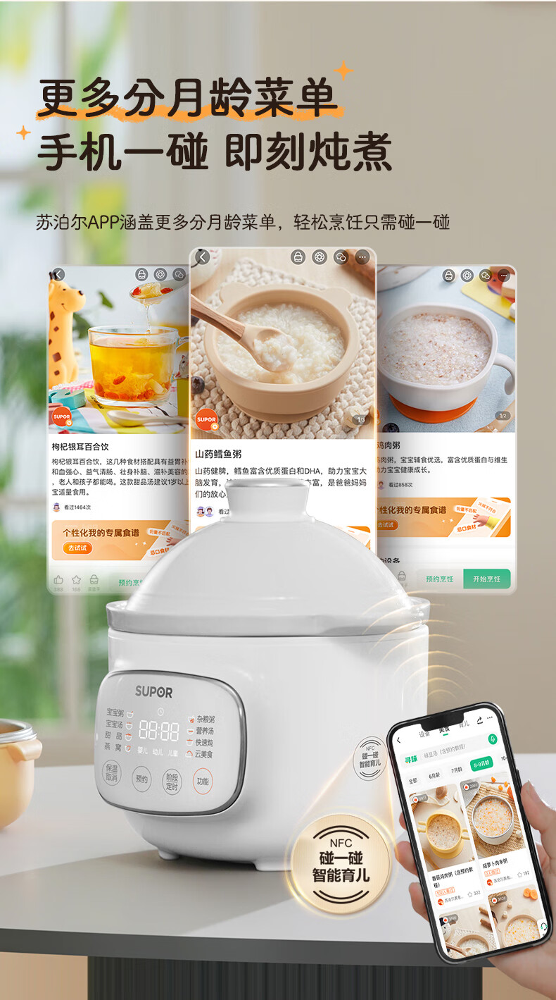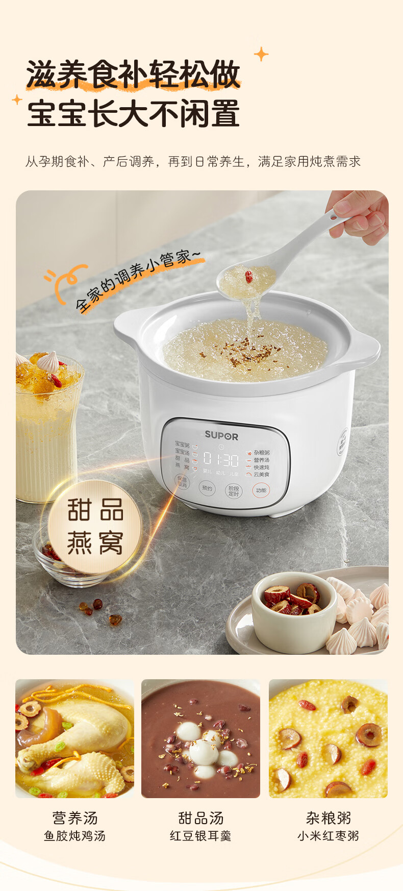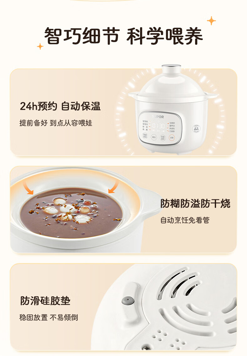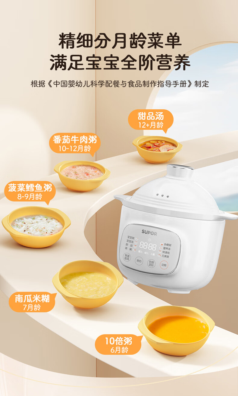 苏泊尔(SUPOR)辅食锅 婴儿BB煲 宝宝电炖锅 电炖盅 煮粥锅 米油分月龄 1L BB05S