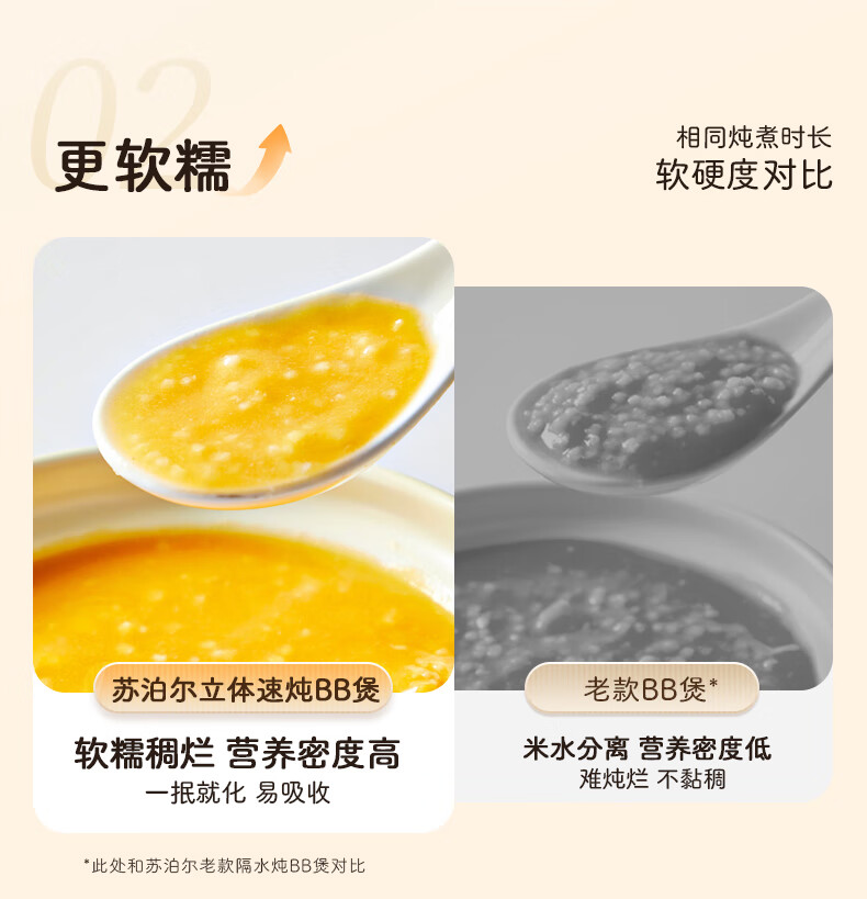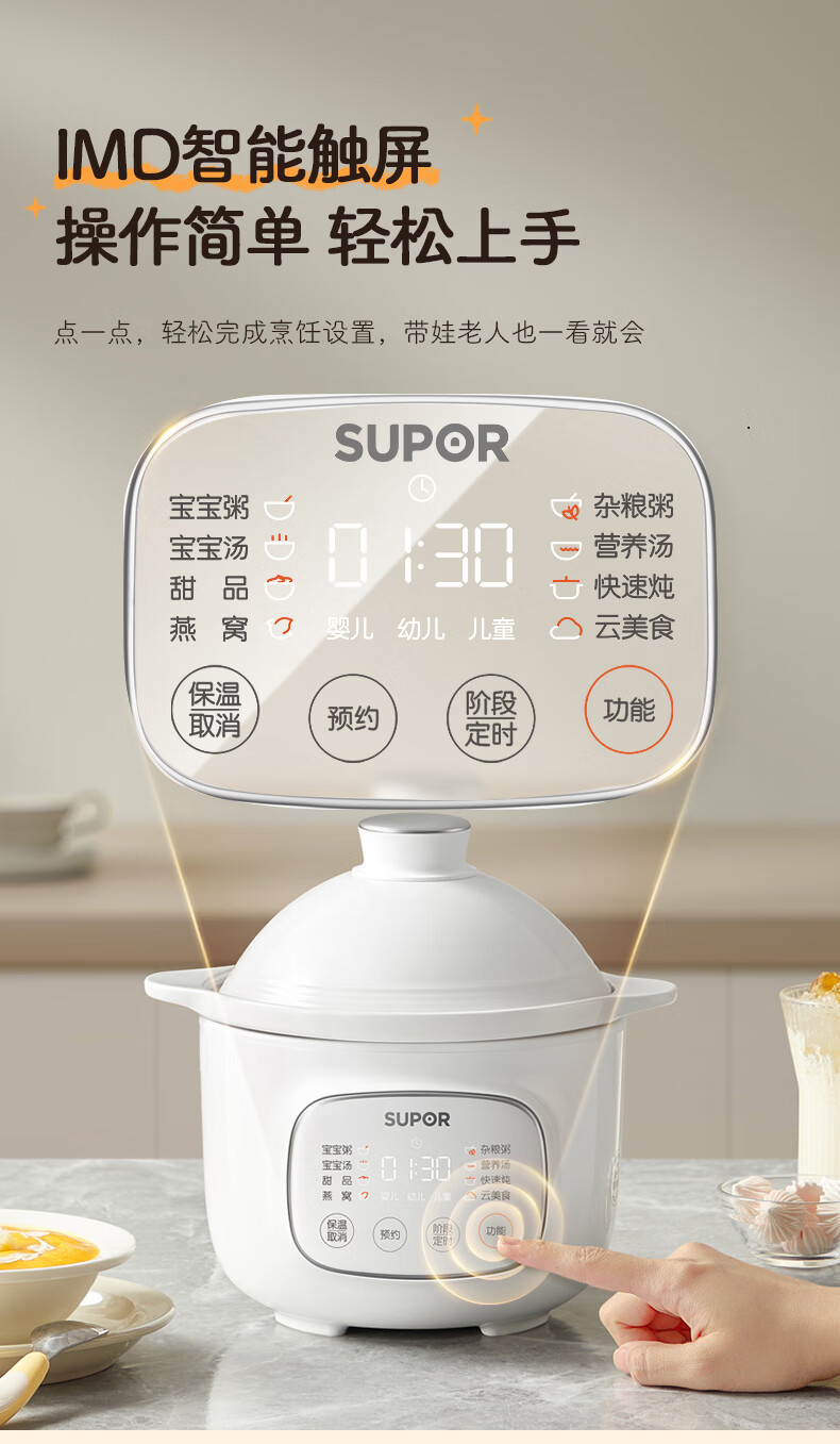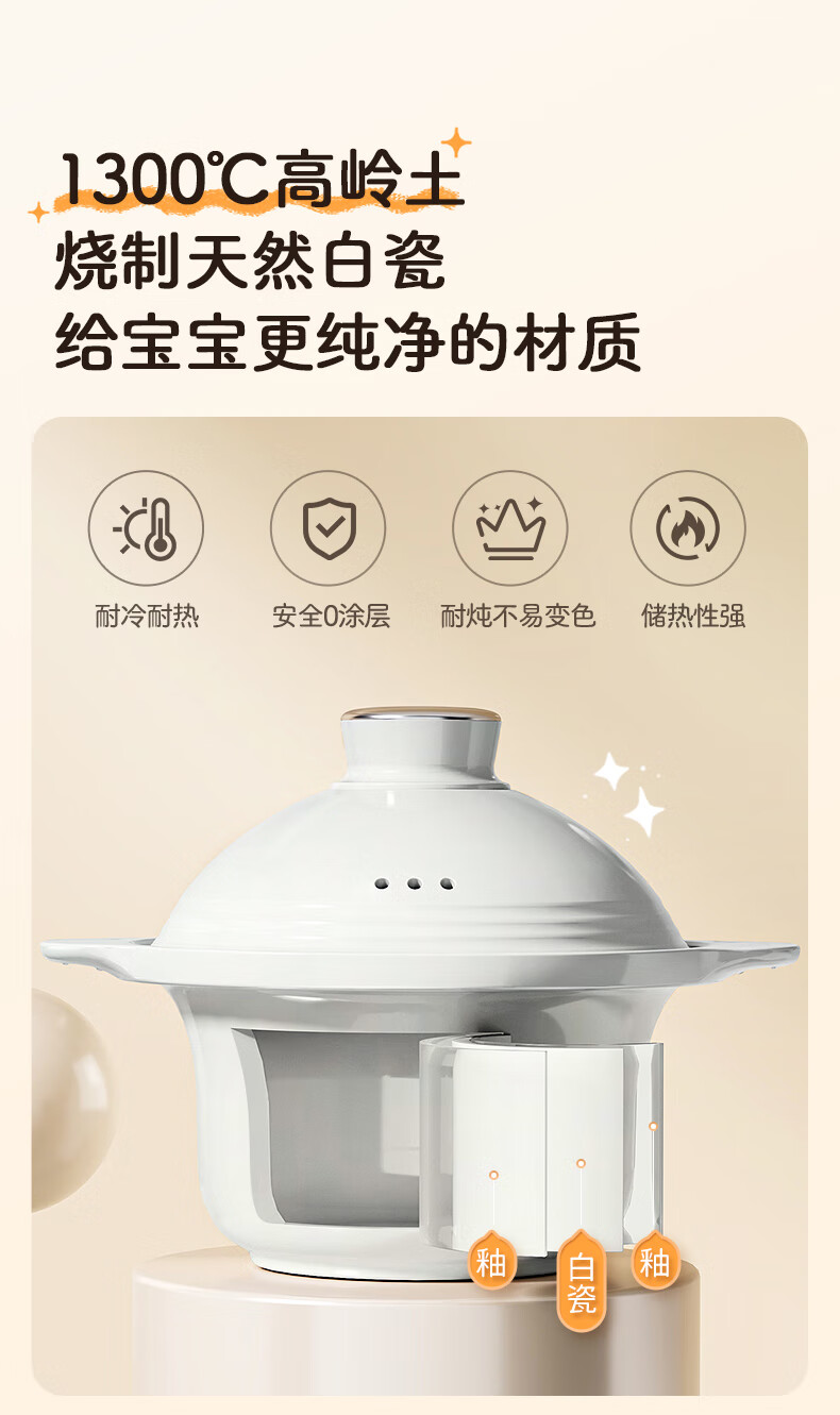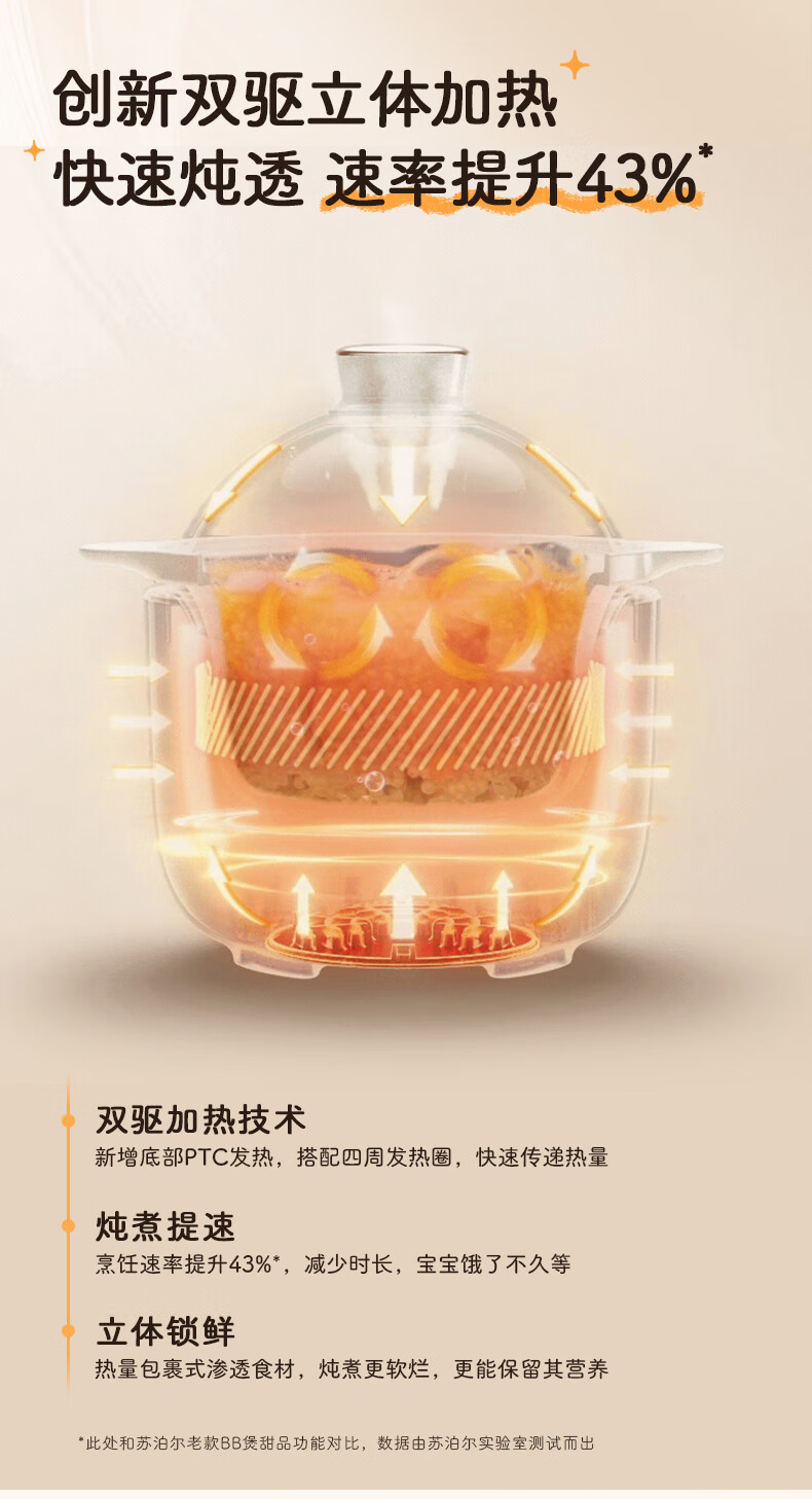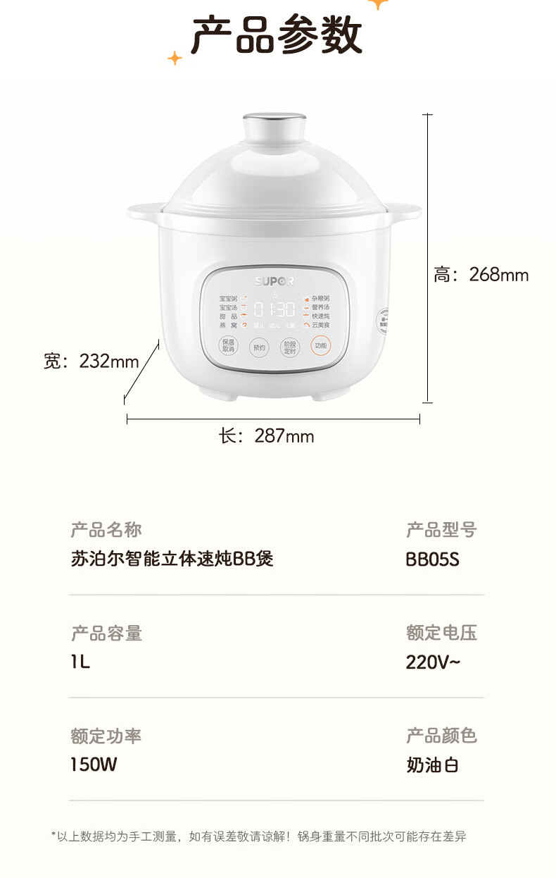 苏泊尔(SUPOR)辅食锅 婴儿BB煲 宝宝电炖锅 电炖盅 煮粥锅 米油分月龄 1L BB05S
