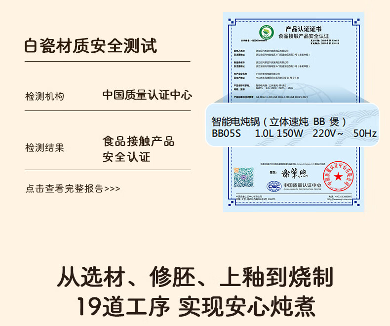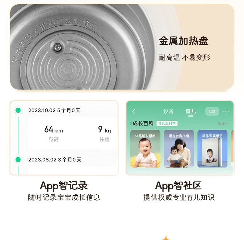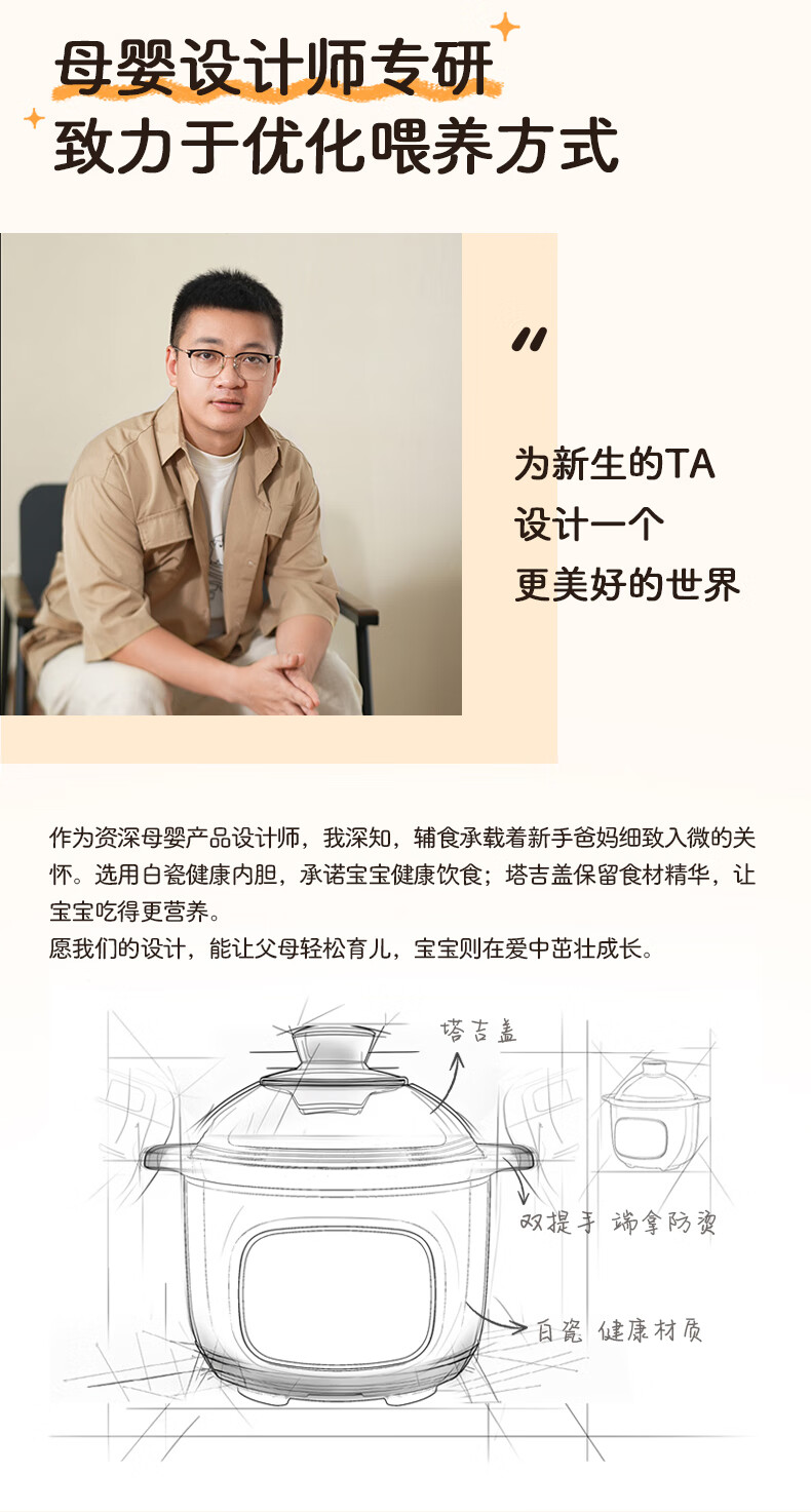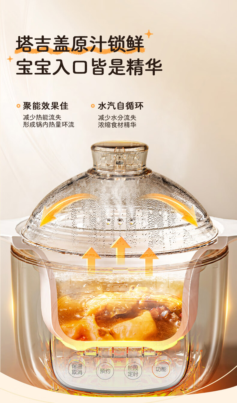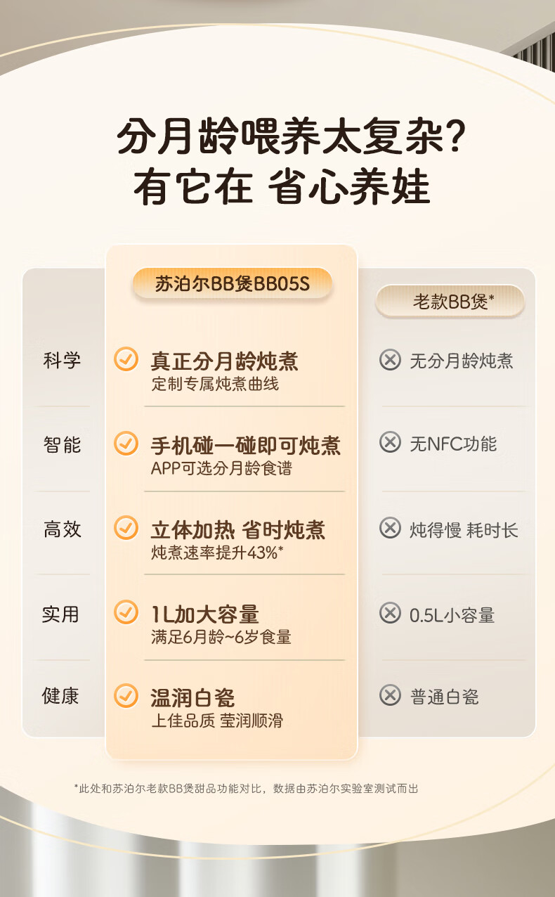 苏泊尔(SUPOR)辅食锅 婴儿BB煲 宝宝电炖锅 电炖盅 煮粥锅 米油分月龄 1L BB05S