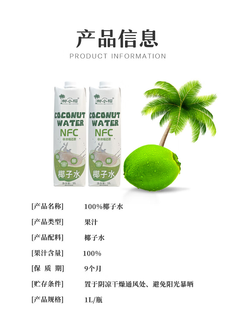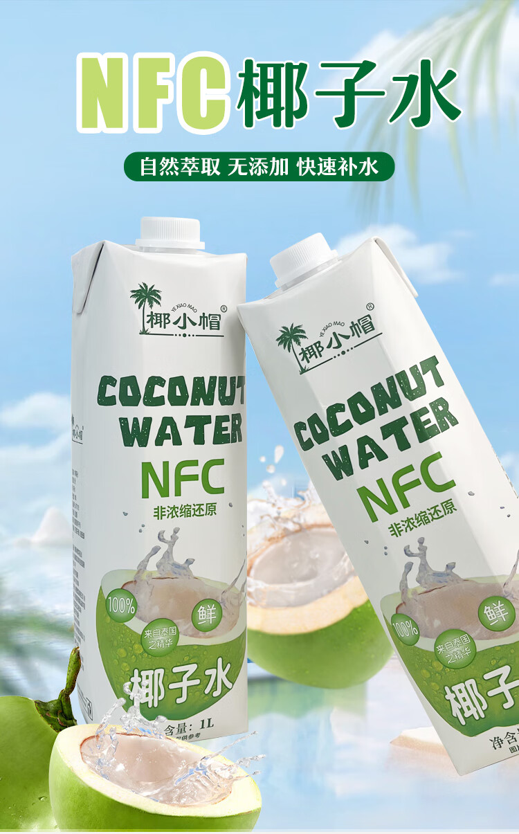 椰小帽椰子水NFC椰子水清甜爽口椰香满满 1L装*2瓶