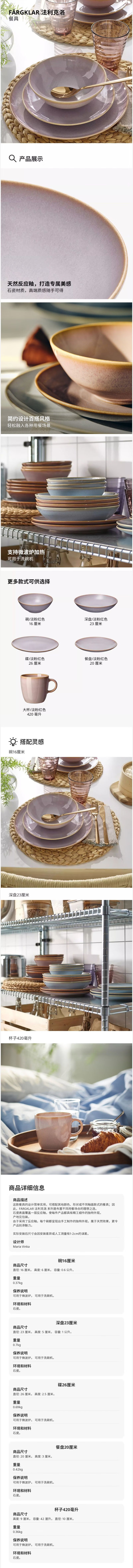 宜家(IKEA)FARGKLAR法利克洛碗高颜值碗具汤碗吃饭碗餐具 淡粉红色碗16cm