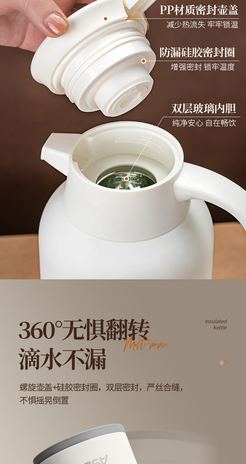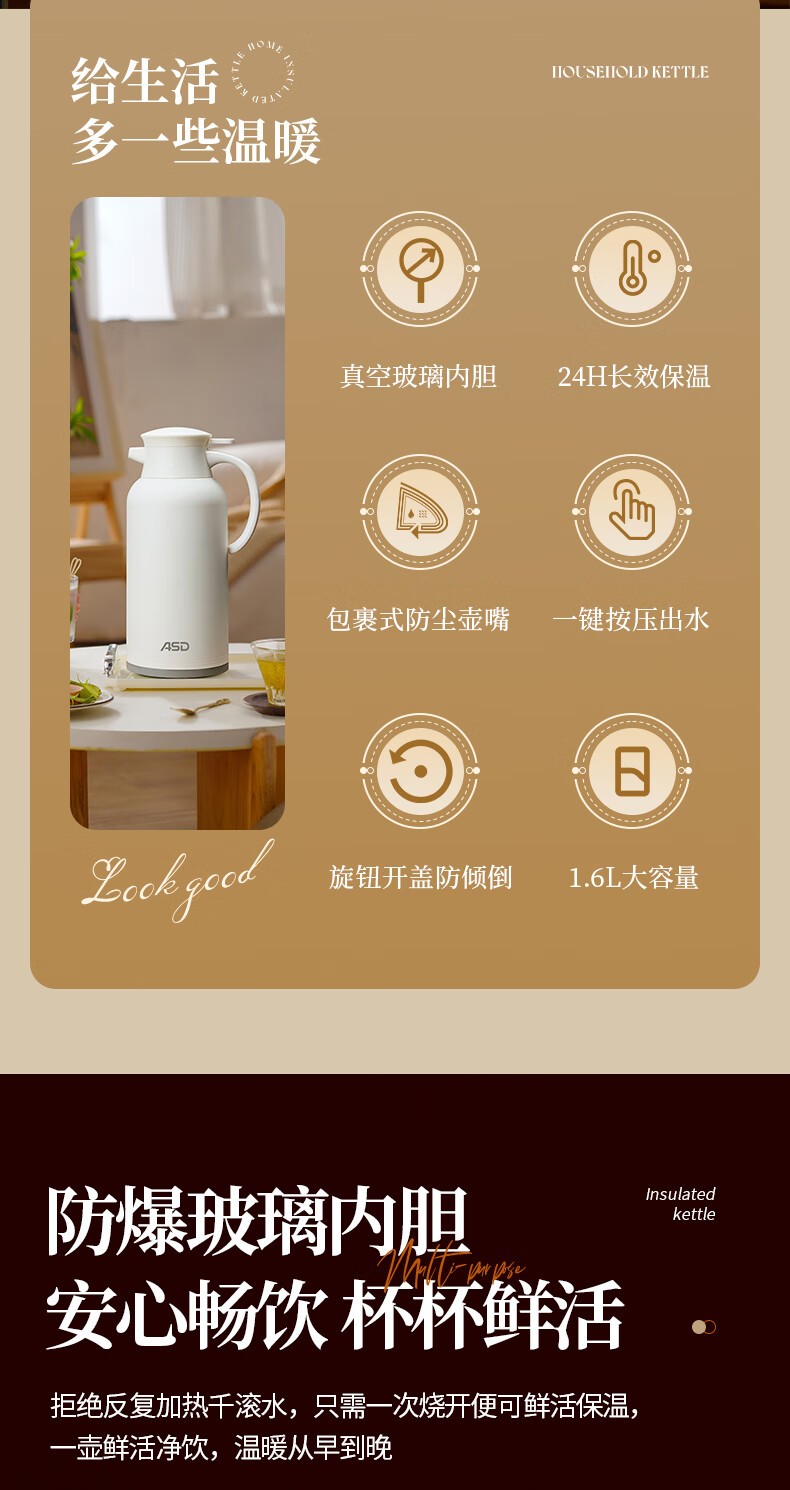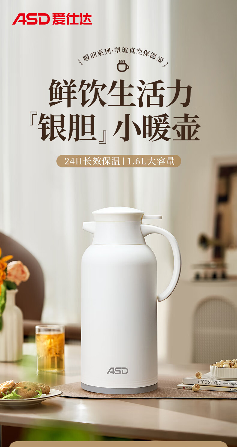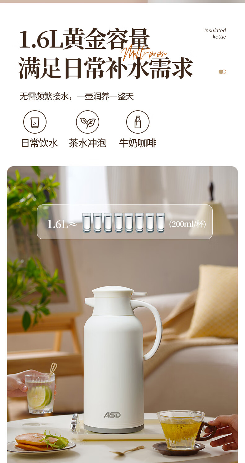爱仕达(ASD)保温壶家用大容量热水瓶玻璃内胆暖水瓶壶宿舍办公RWS16P17WG-W
