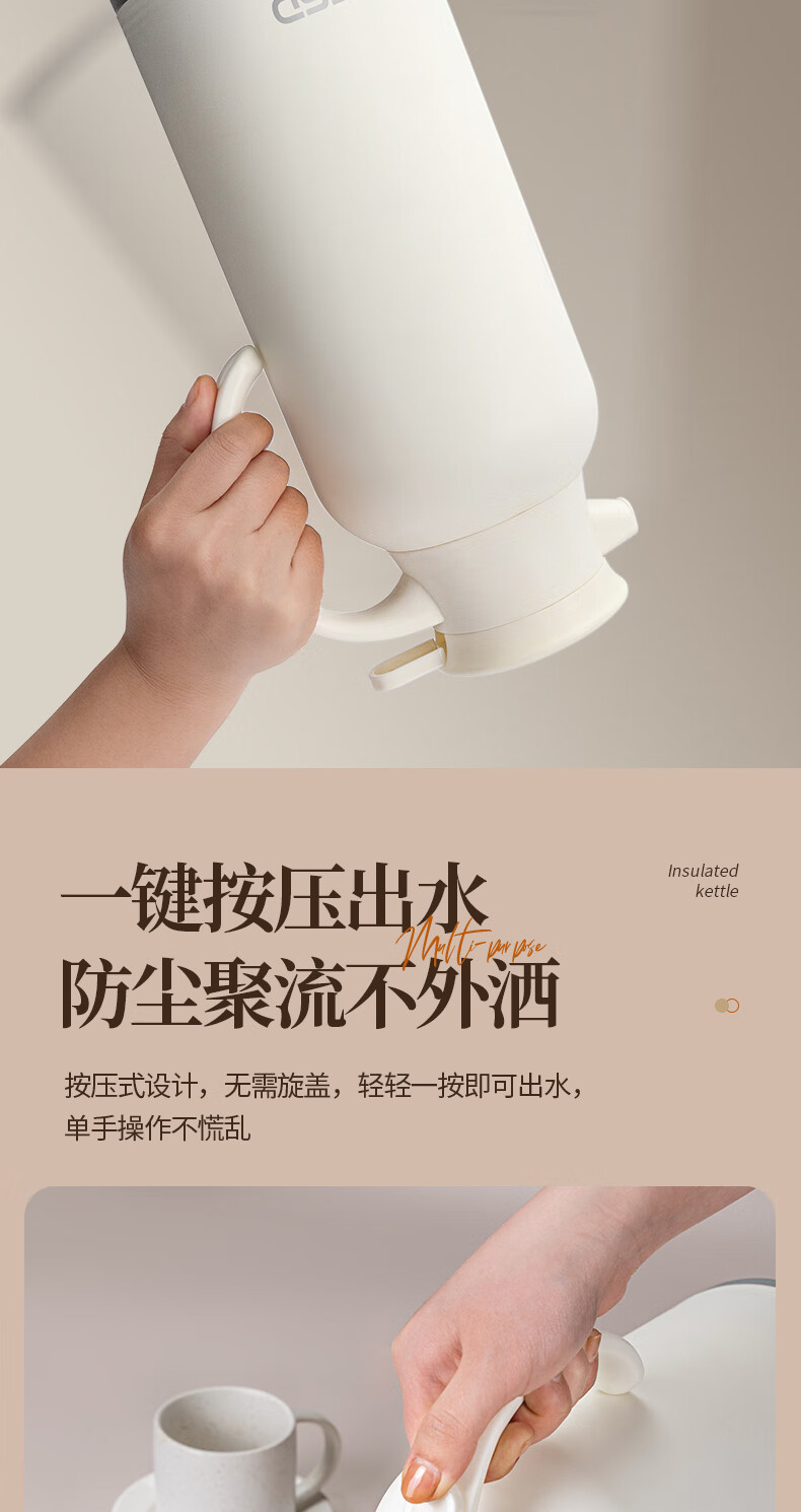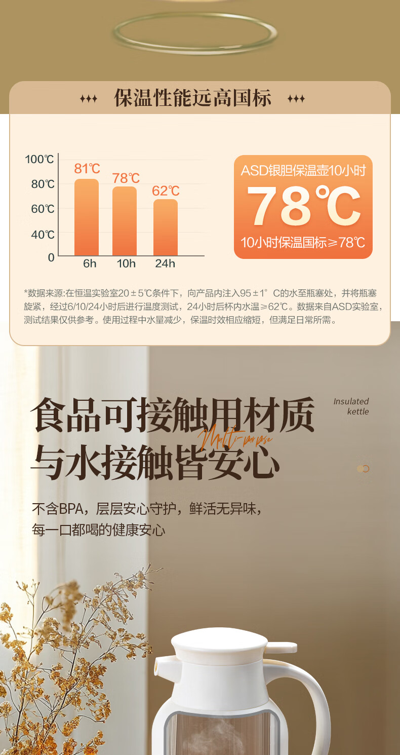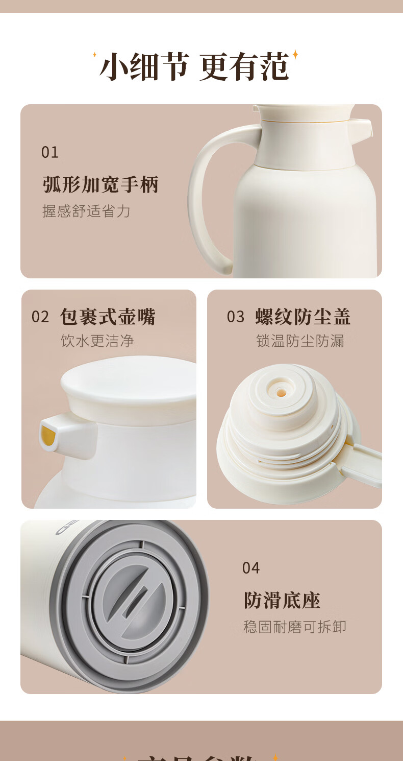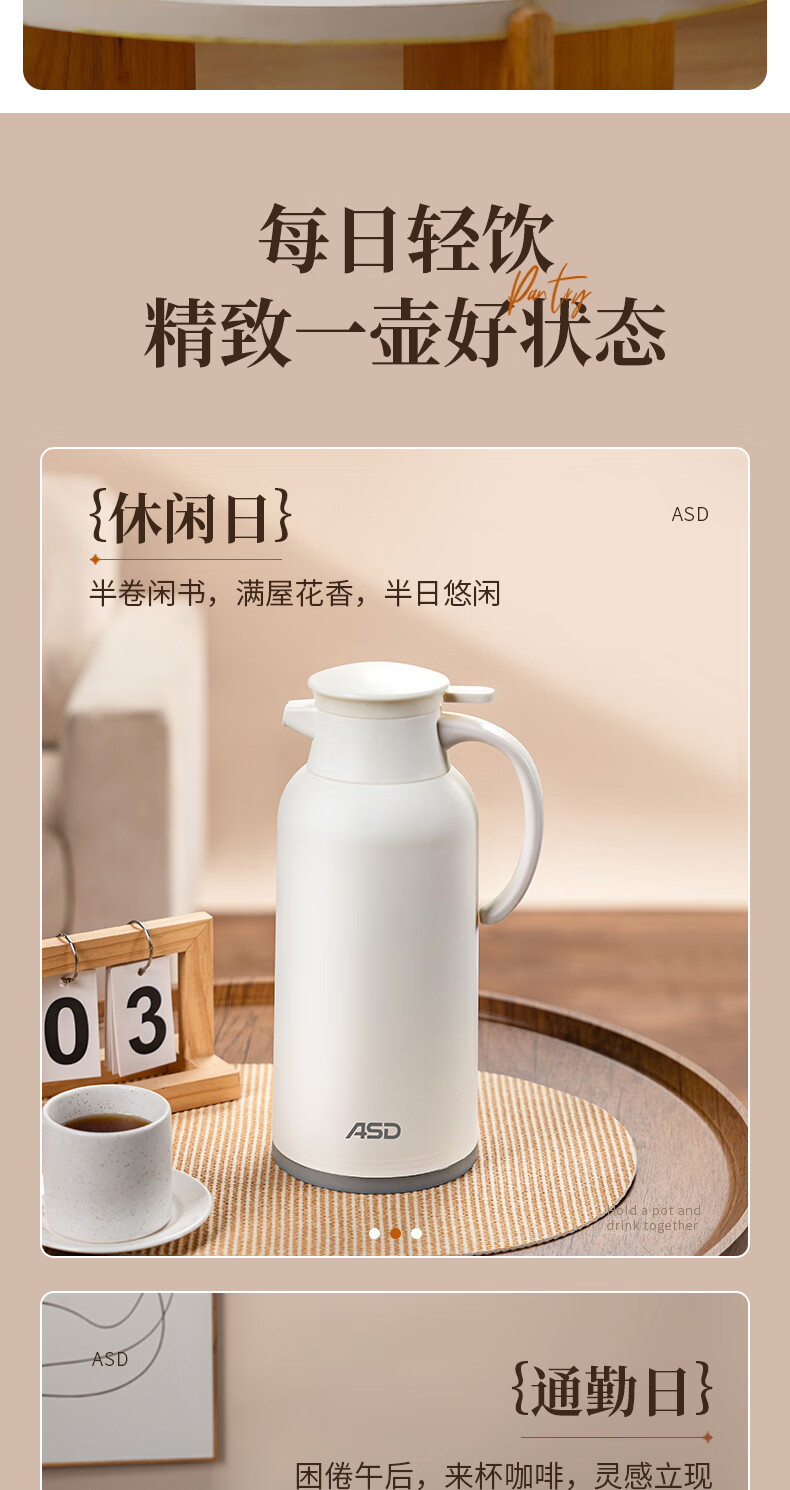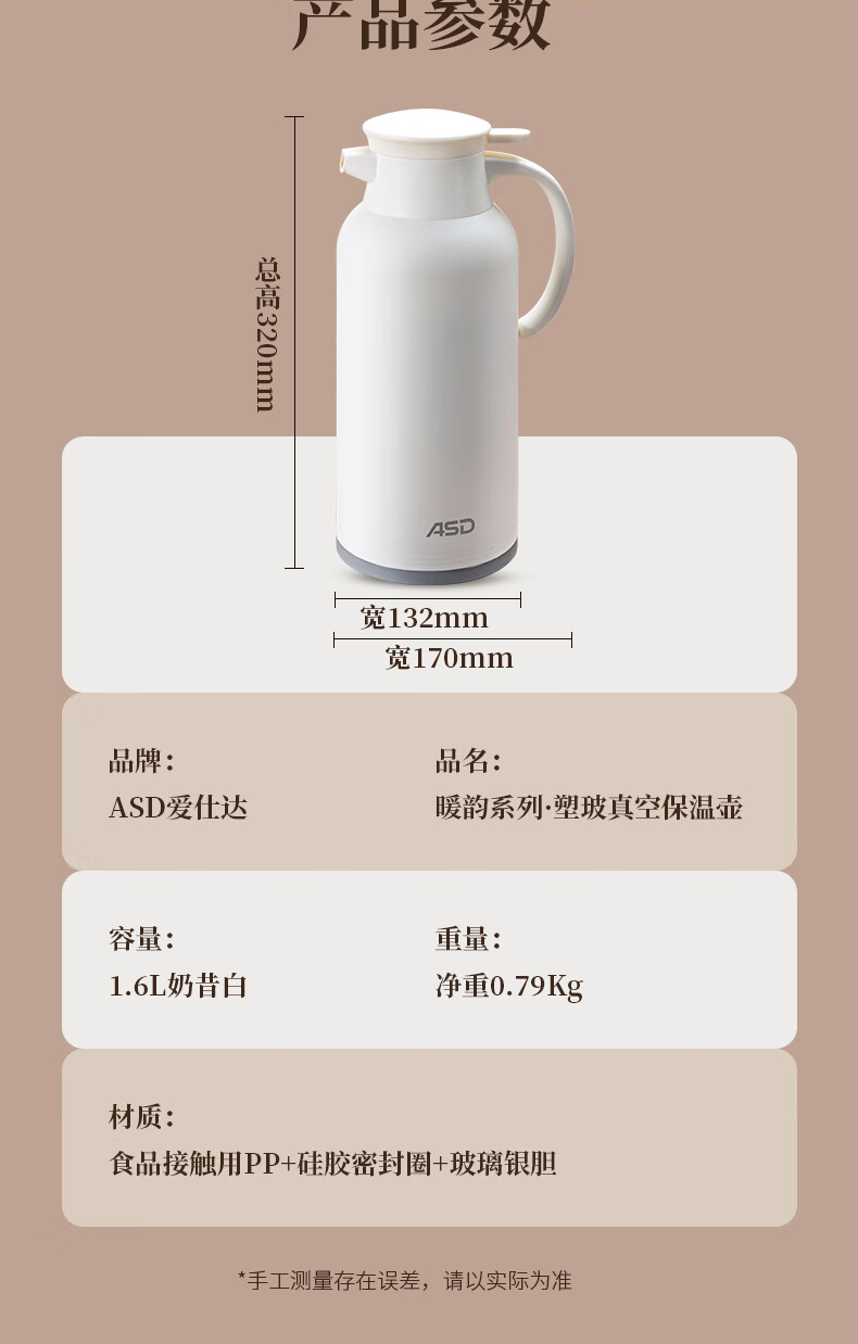 爱仕达(ASD)保温壶家用大容量热水瓶玻璃内胆暖水瓶壶宿舍办公RWS16P17WG-W