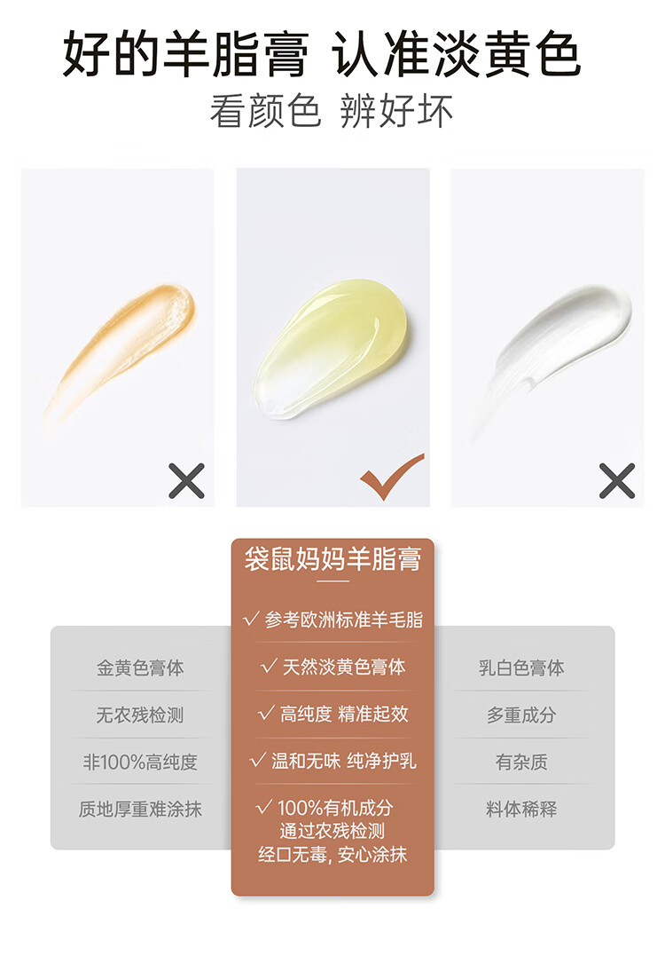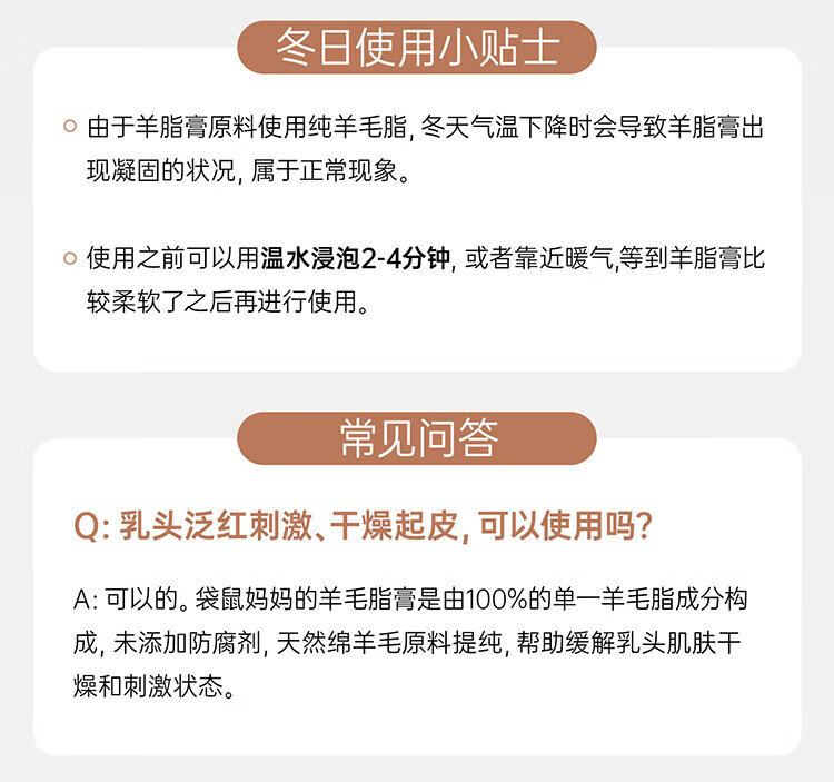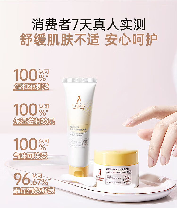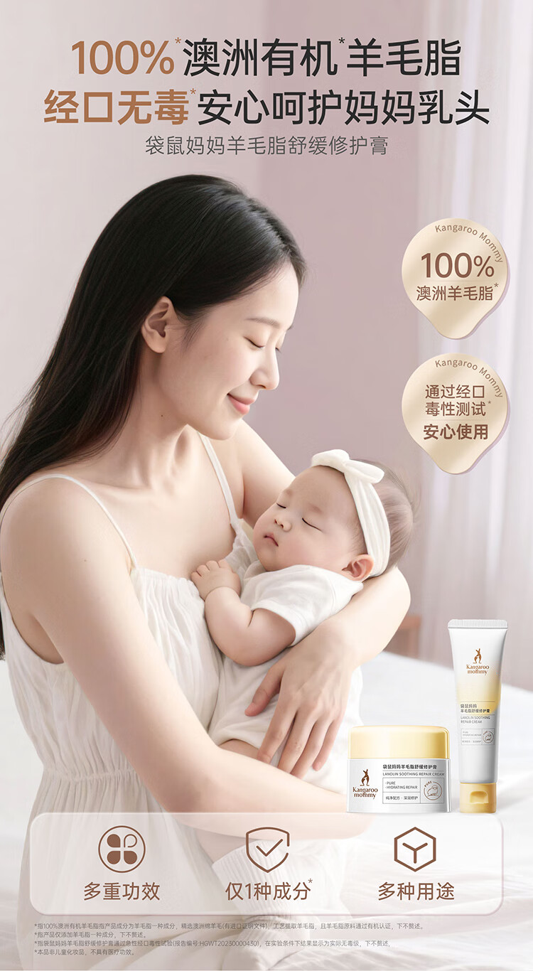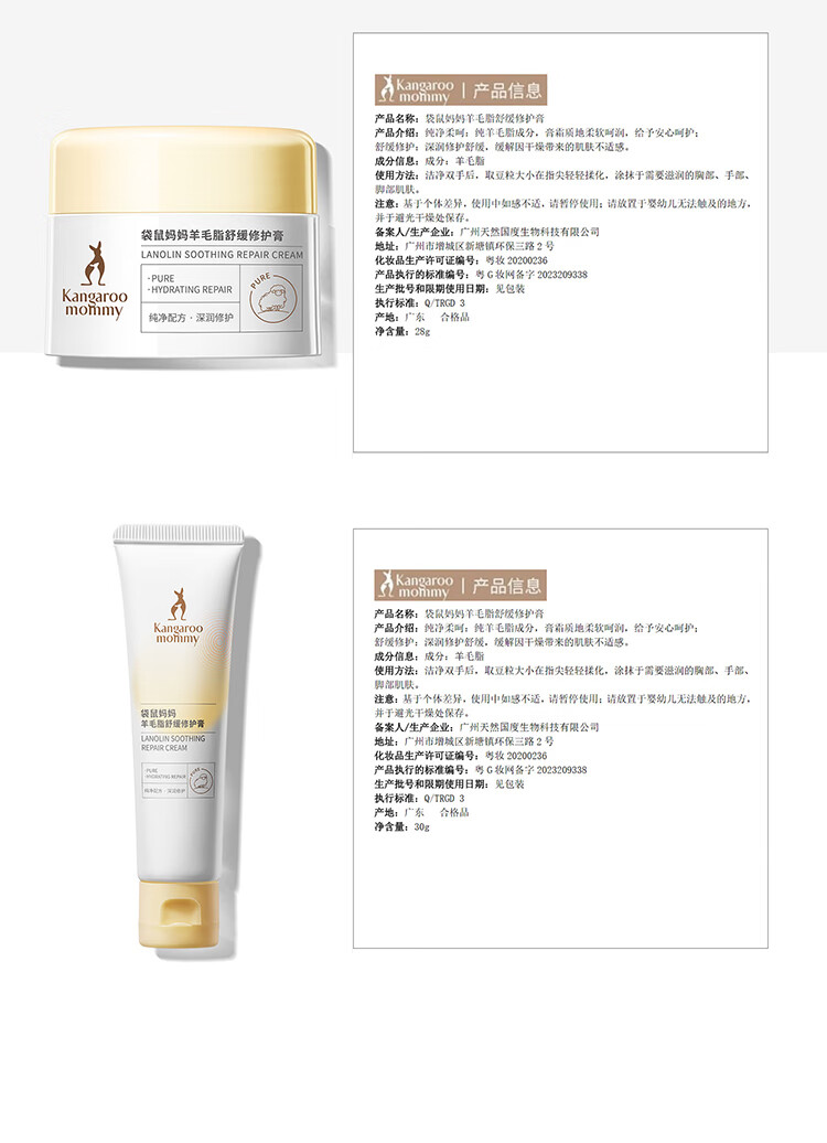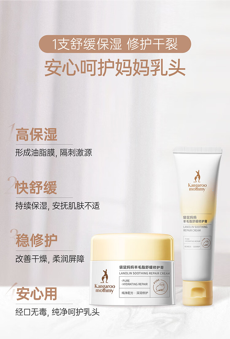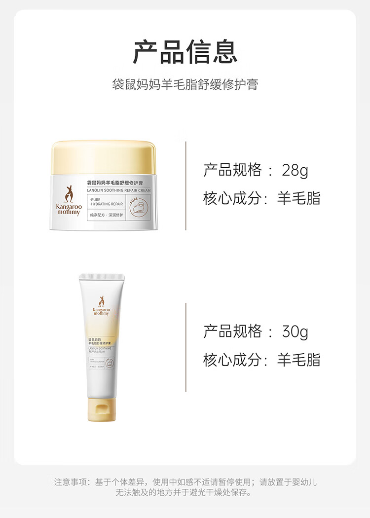 袋鼠妈妈羊脂膏乳头霜准孕妇预防皲裂乳头膏身体舒缓修护润肤羊毛脂护肤品 【四季广口款】羊毛脂修护膏28g