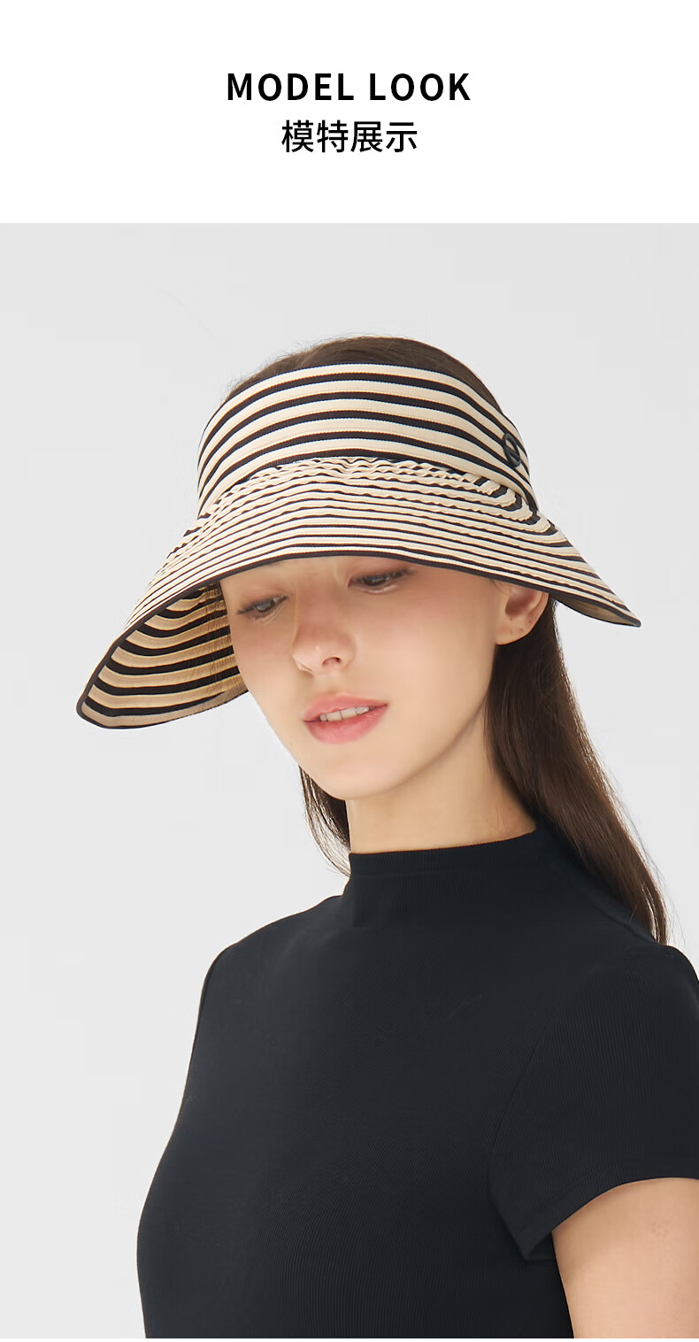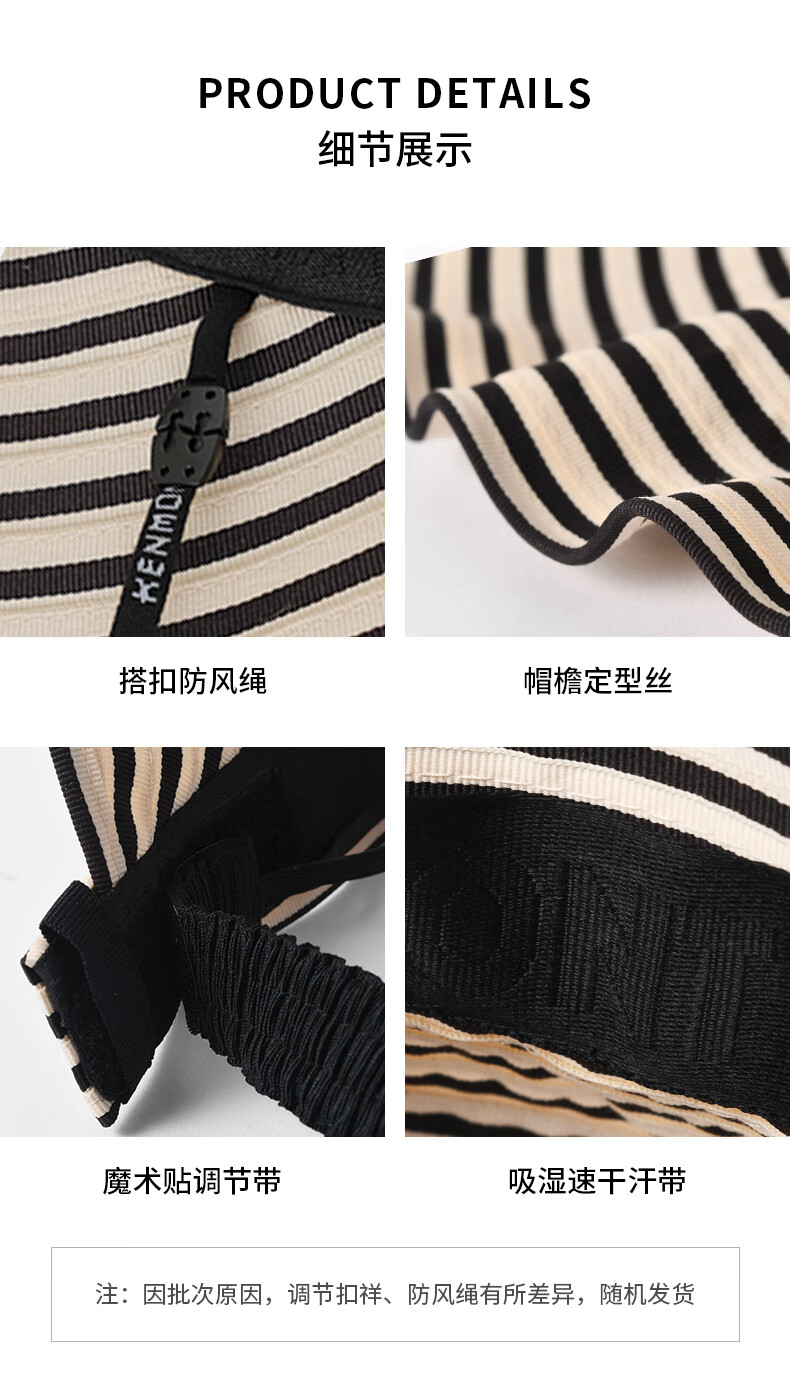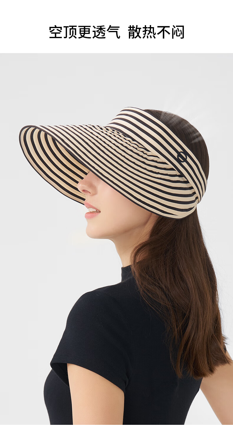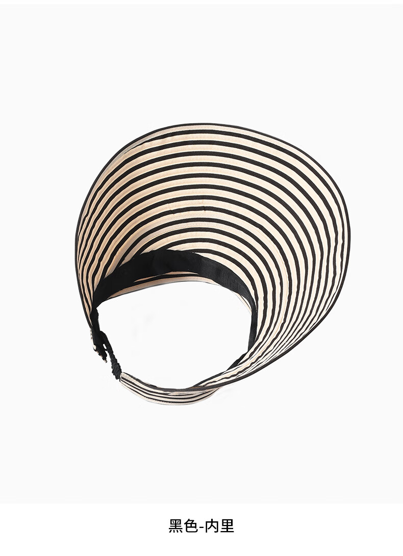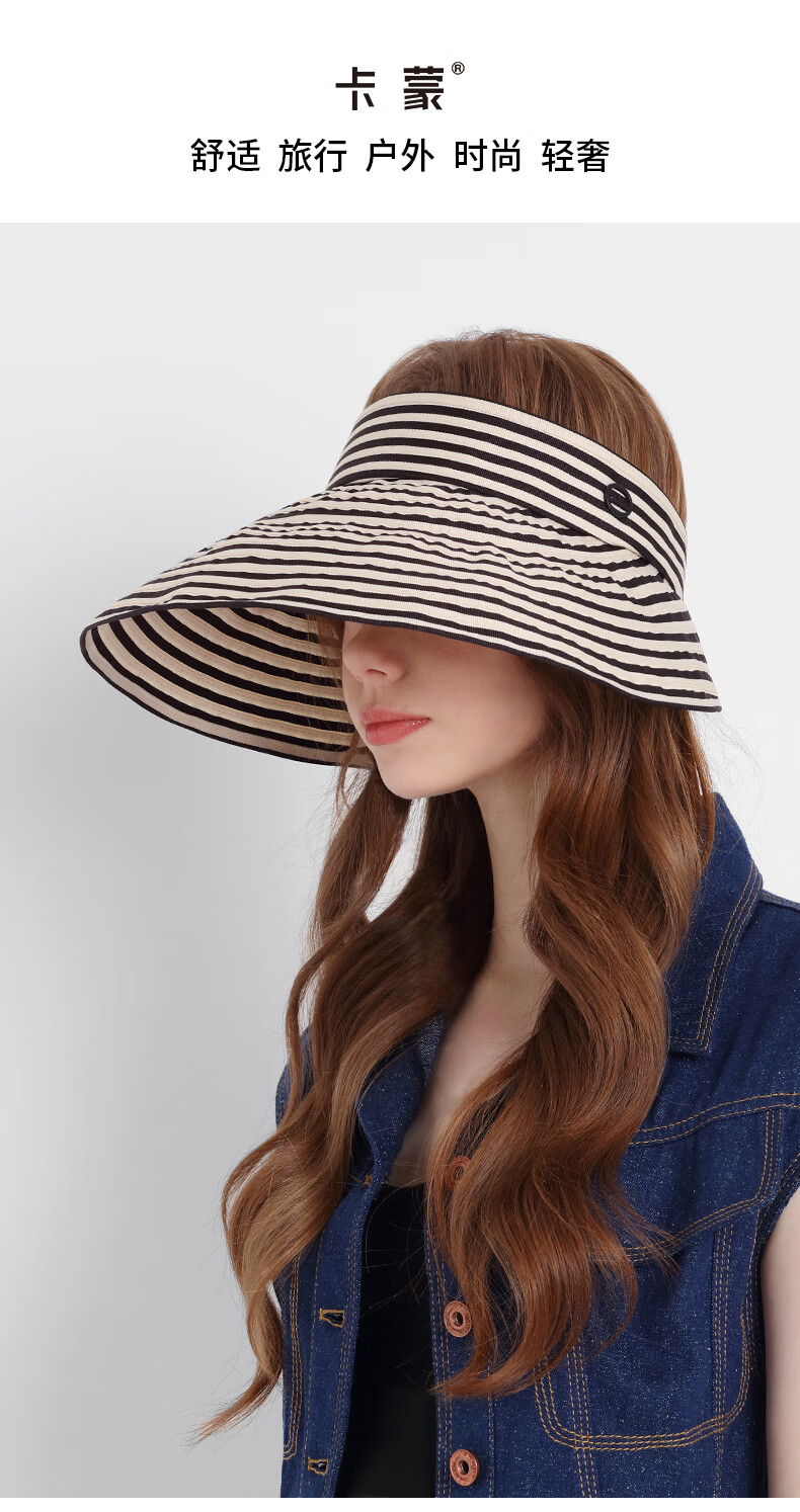 卡蒙(Kenmont)百搭黑白条纹空顶防晒帽女夏沙滩速干透气可折叠遮脸遮阳帽6046 黑色 可调节(55-60cm)