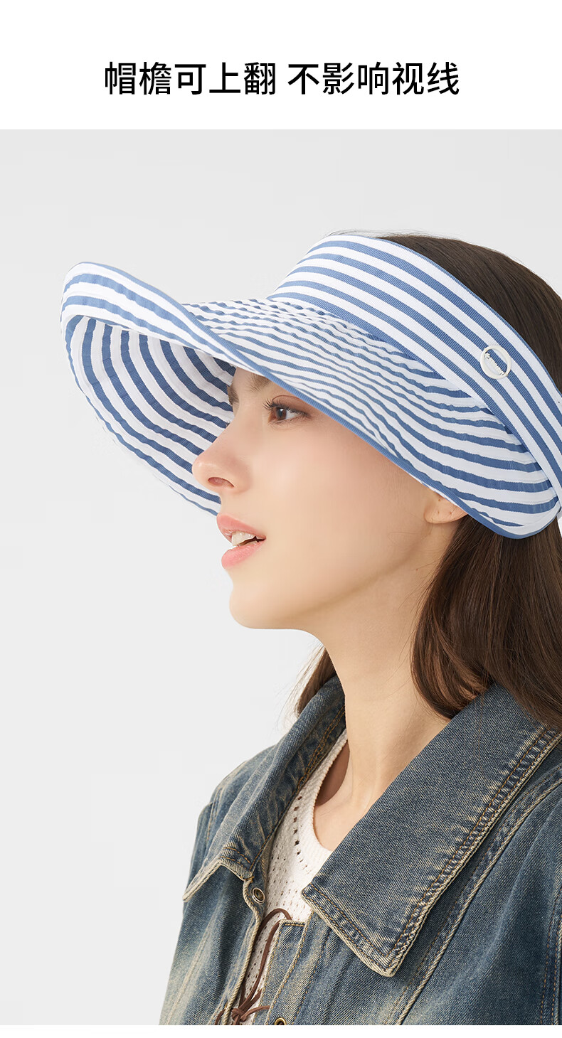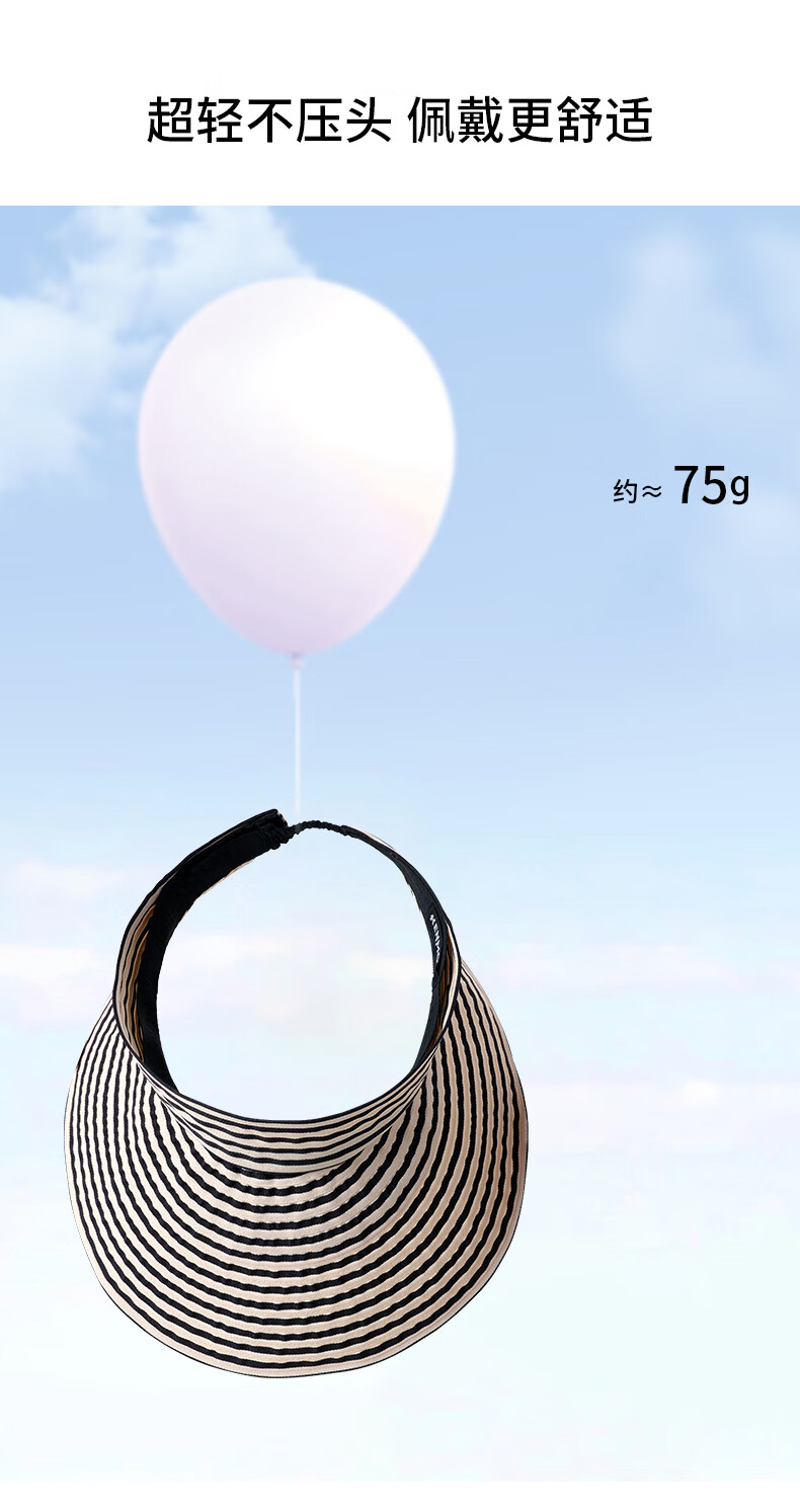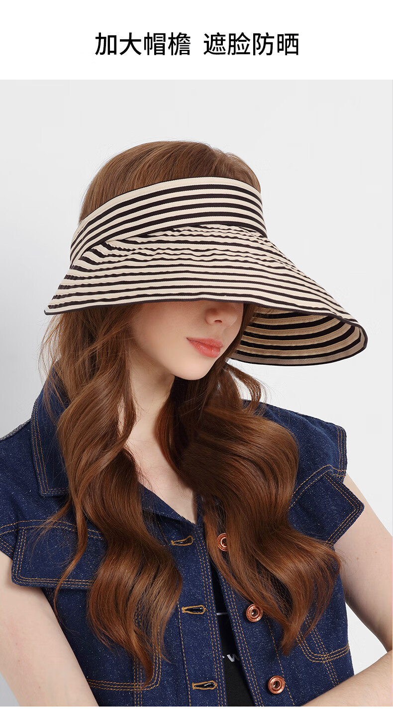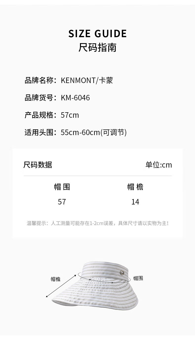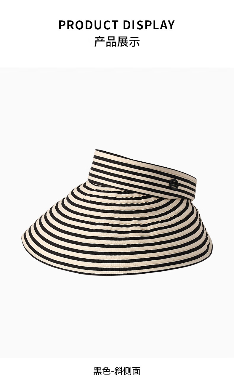 卡蒙(Kenmont)百搭黑白条纹空顶防晒帽女夏沙滩速干透气可折叠遮脸遮阳帽6046 黑色 可调节(55-60cm)