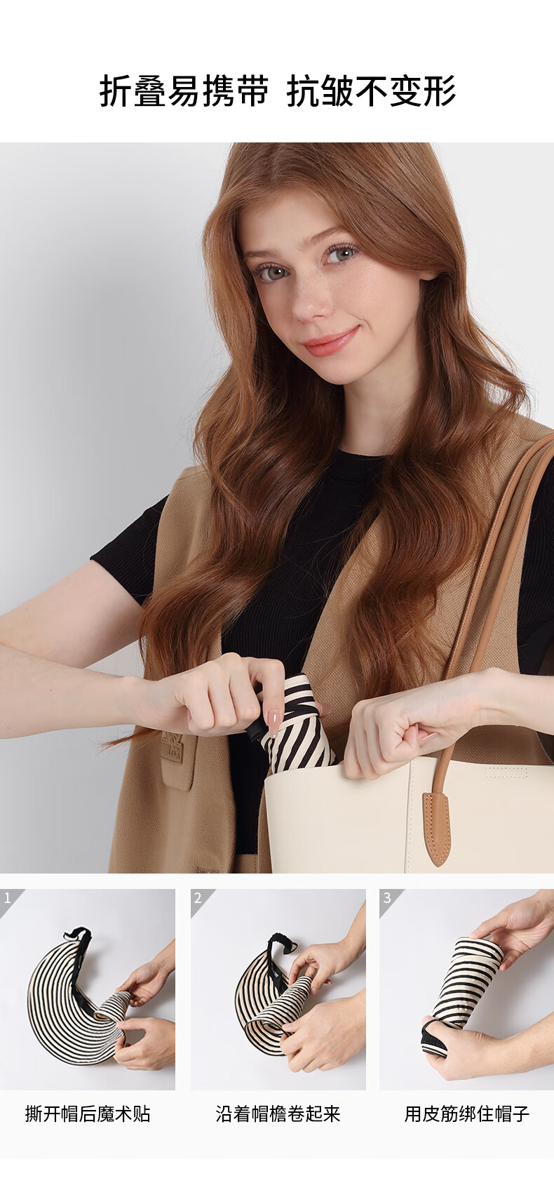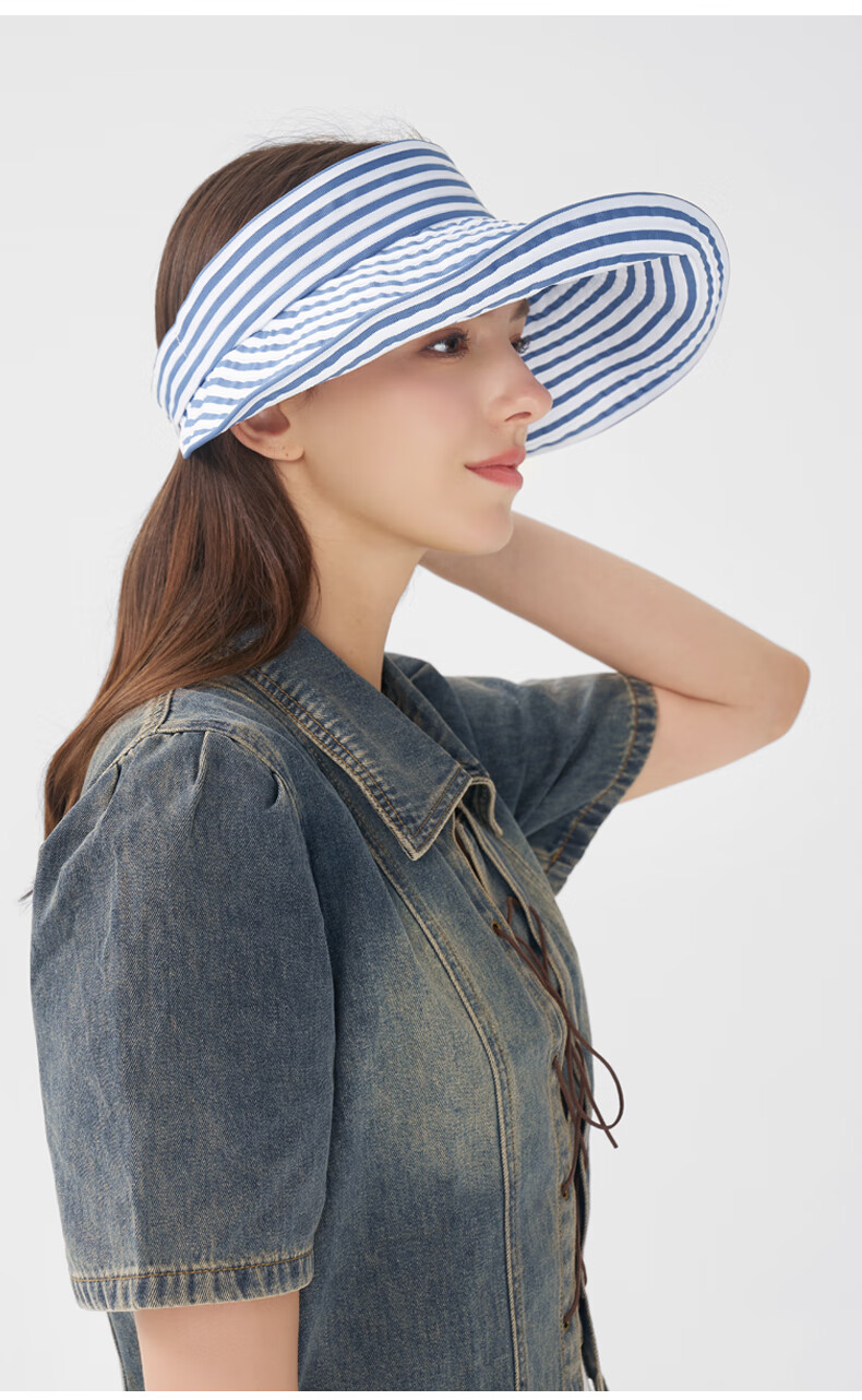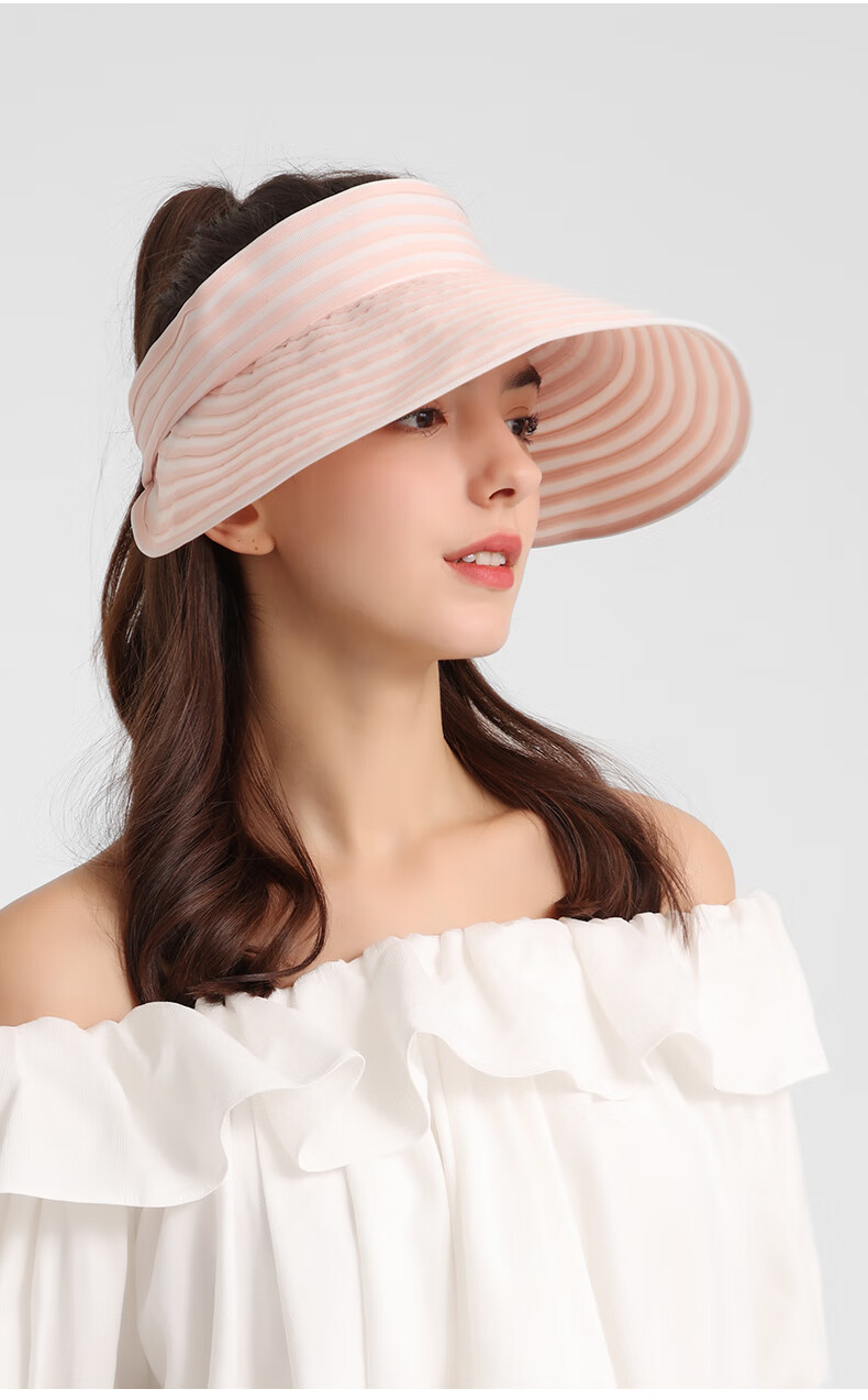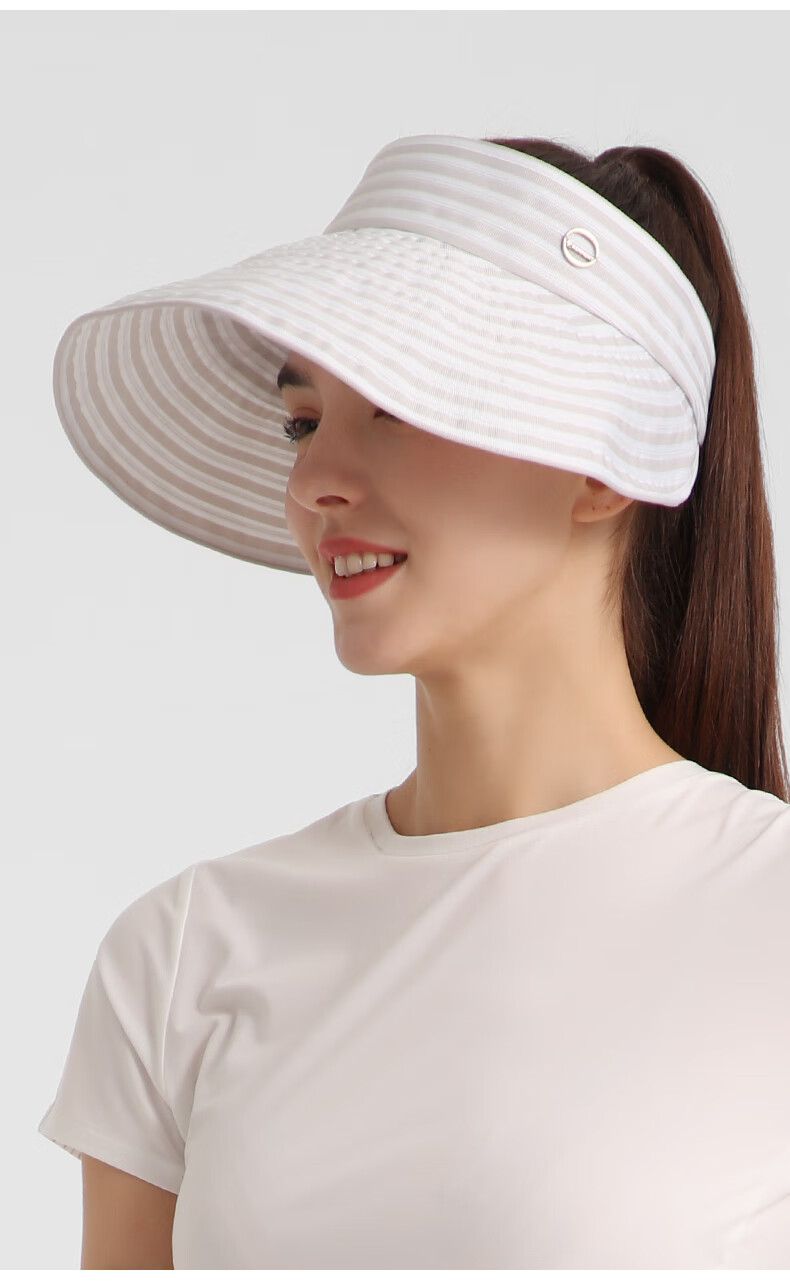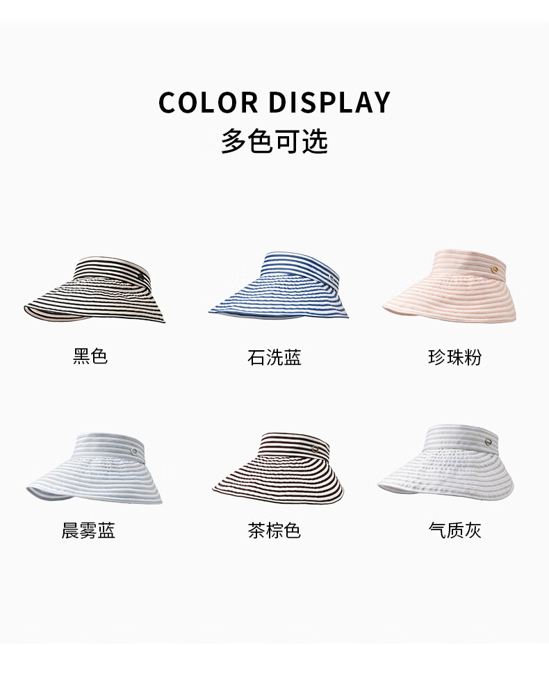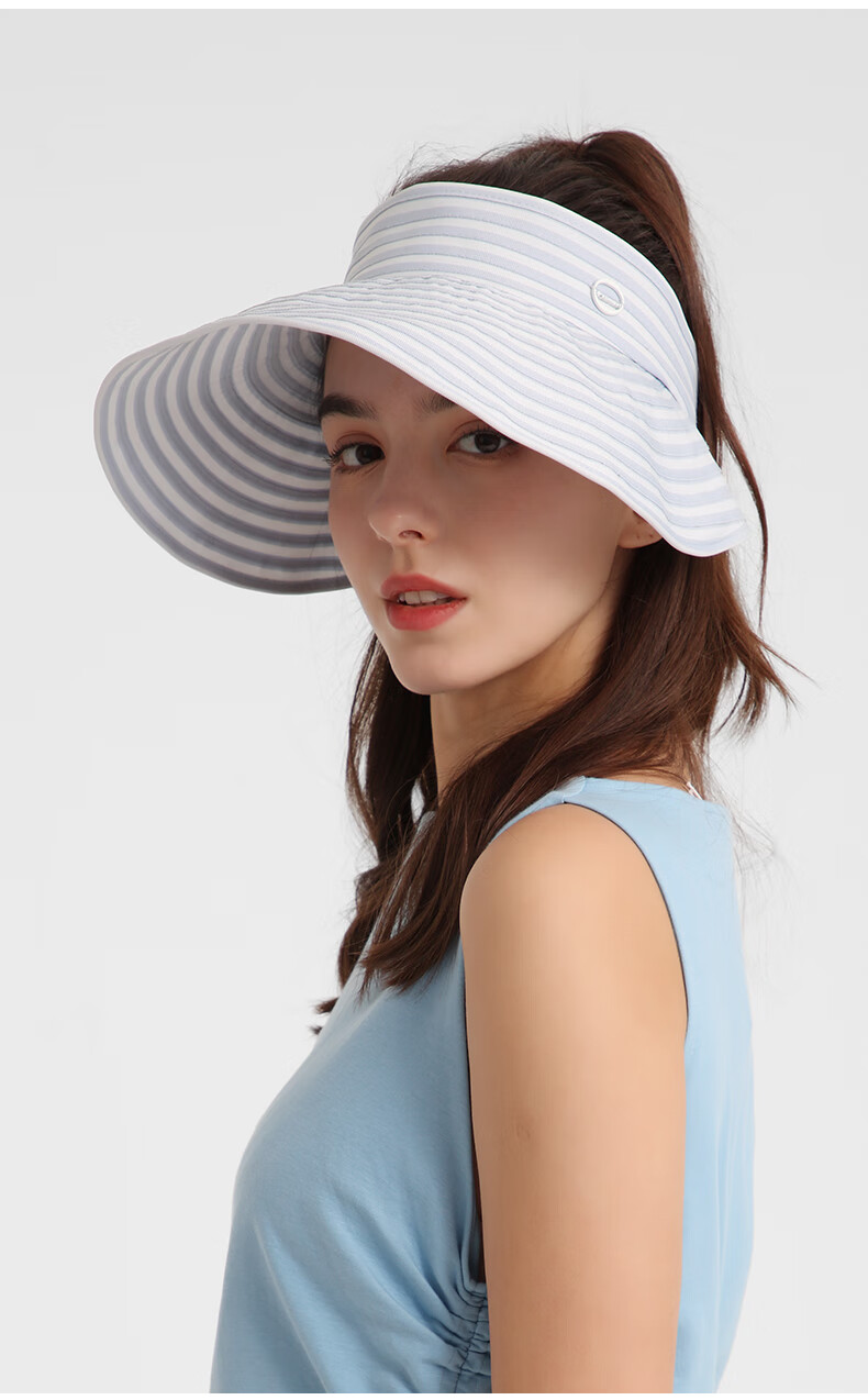 卡蒙(Kenmont)百搭黑白条纹空顶防晒帽女夏沙滩速干透气可折叠遮脸遮阳帽6046 黑色 可调节(55-60cm)