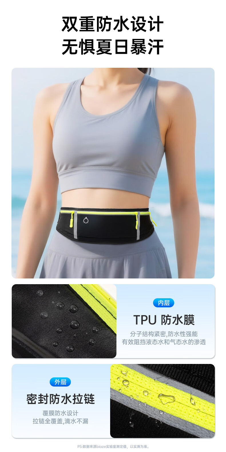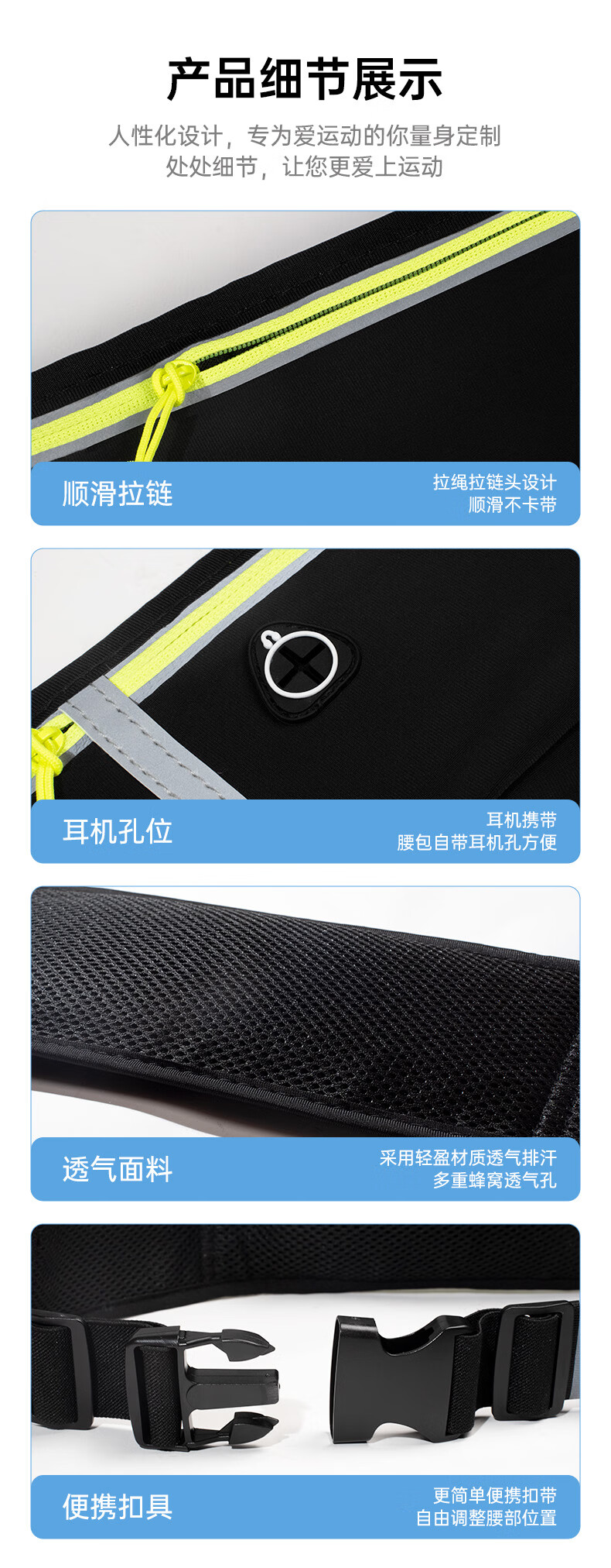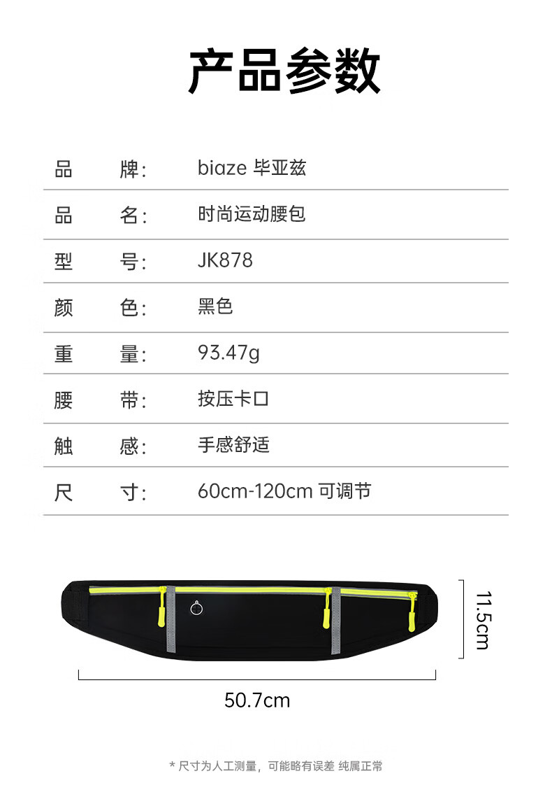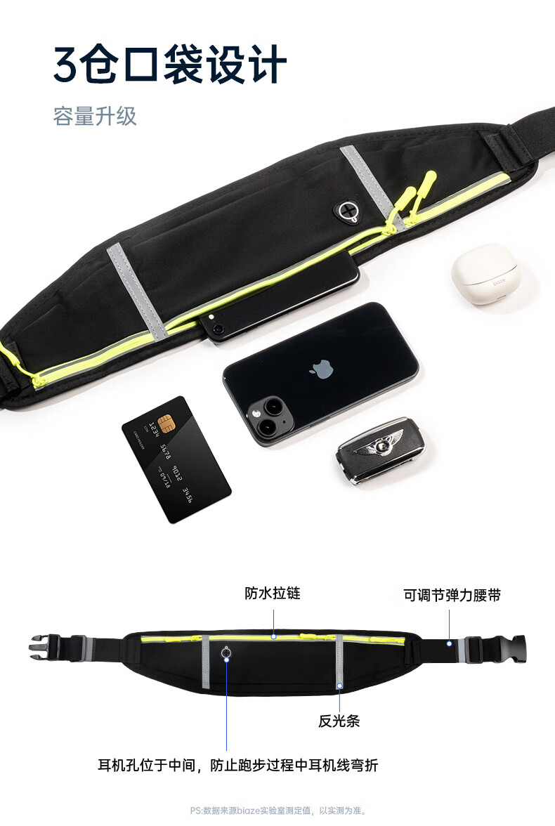 毕亚兹跑步腰包 运动腰包男女手机携带神器 户外多功能大容量收纳包防水可调节腰带装备斜跨胸包 JK878