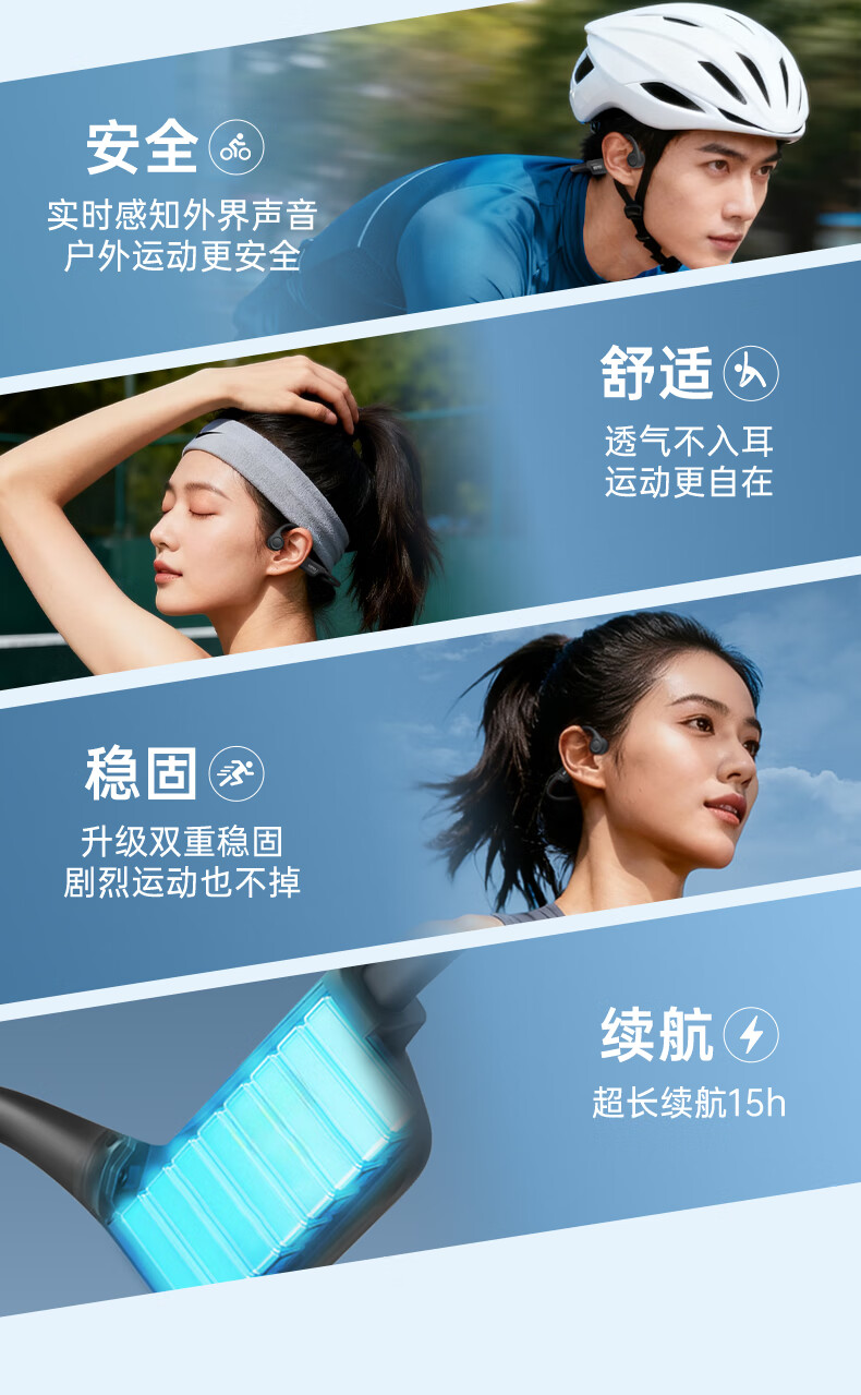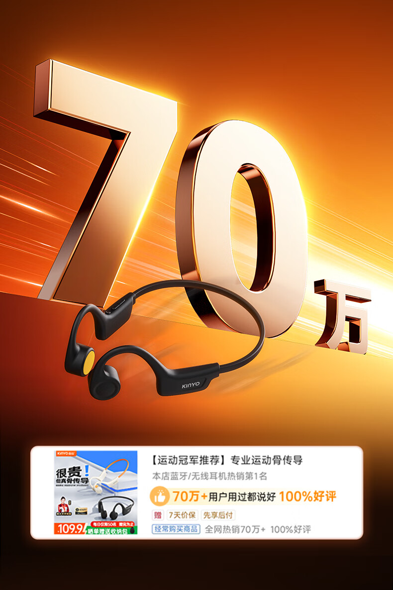 金运【爆款热销70万+丨奥运冠军推荐】骨传导蓝牙挂耳式开放式运动跑步游泳骑行户外防水防汗长续航 曜夜黑【IPX6防水+超长续航】