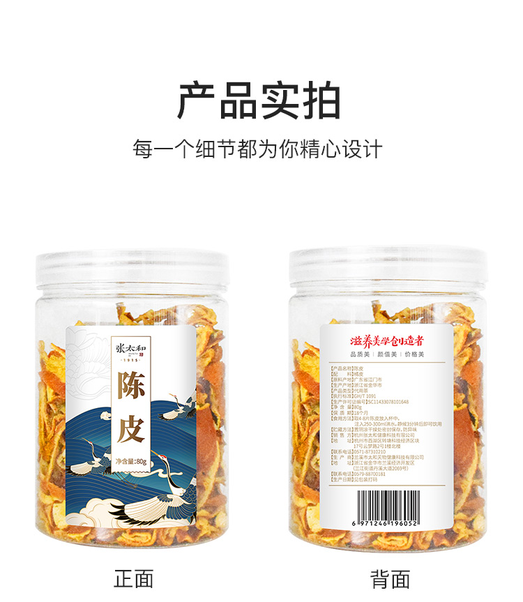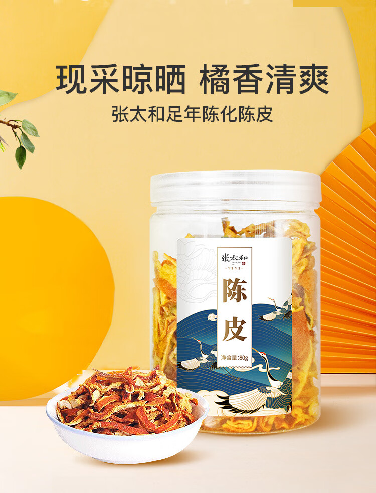 张太和始创于1915陈皮干丝 陈化老陈皮茶泡水可搭配花草茶80g\罐 陈皮干丝80g*3罐