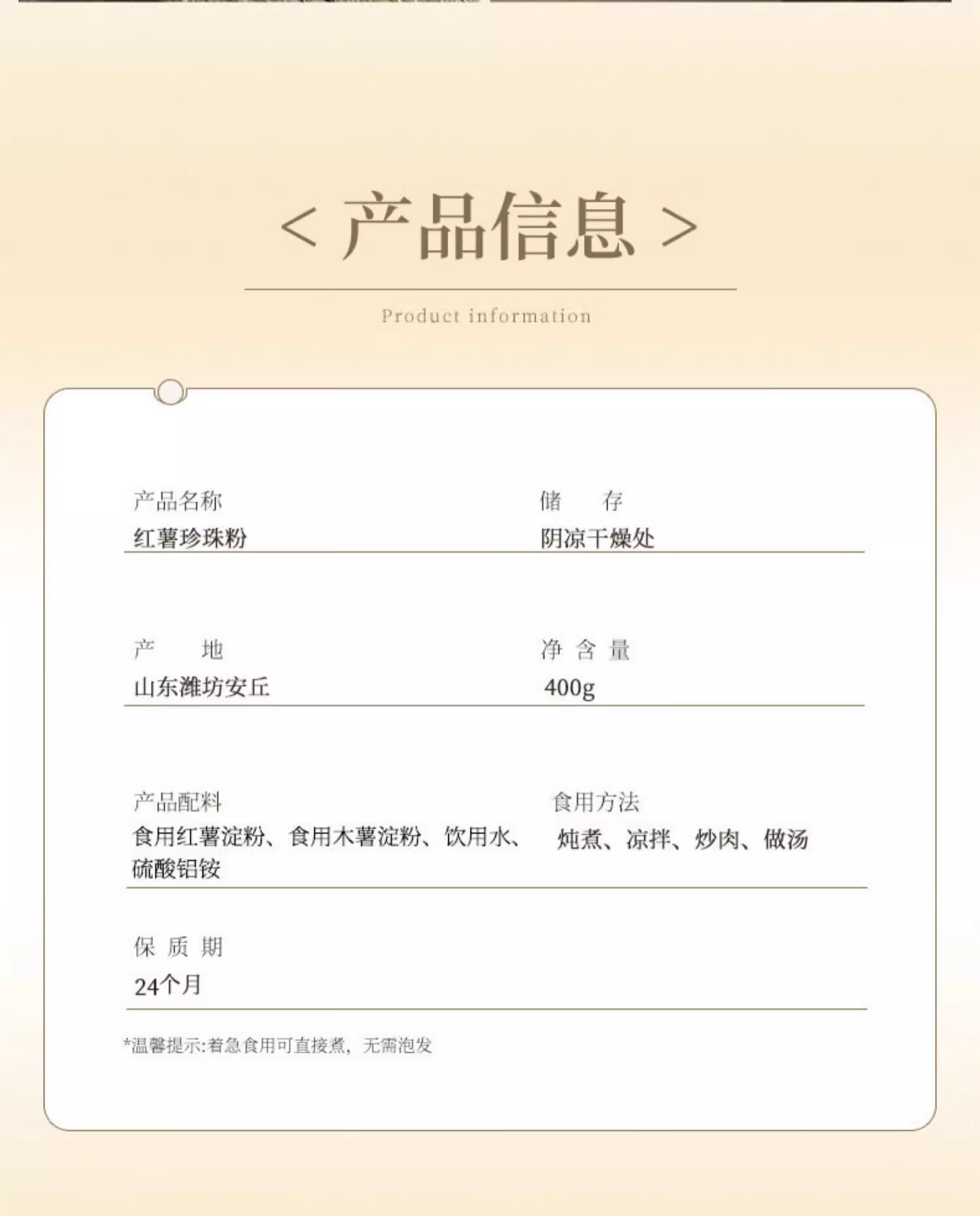 鲁胜红薯粉条珍珠粉正粉丝干货自制地瓜粉条山芋粉酸辣粉山东特产 珍珠粉400g*2袋