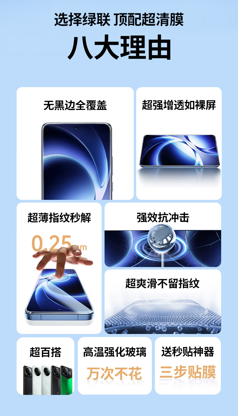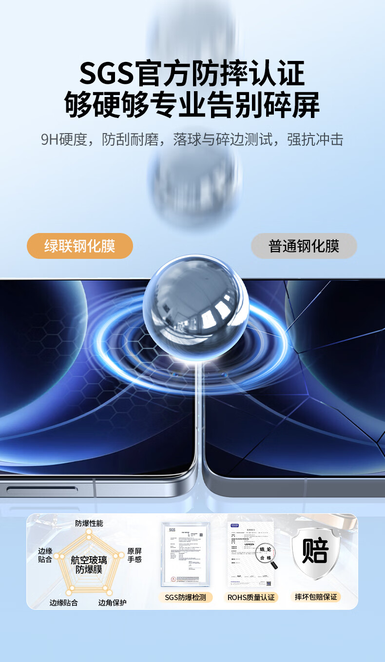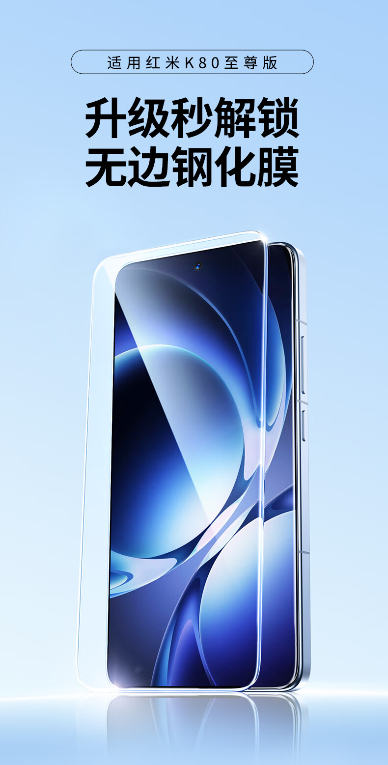 绿联【指纹秒解】适用红米k80至尊版钢化膜手机膜 ultra新版手机膜 全屏无开孔超清防爆防摔防指纹
