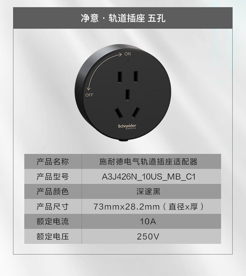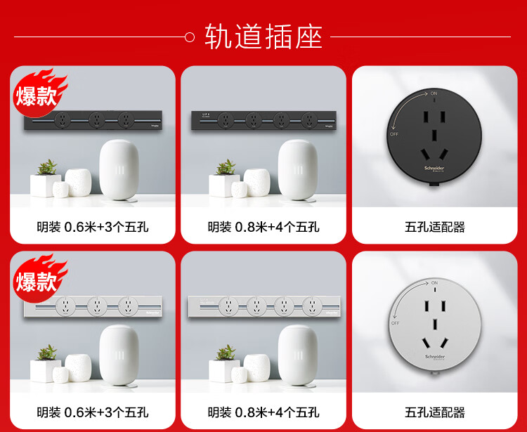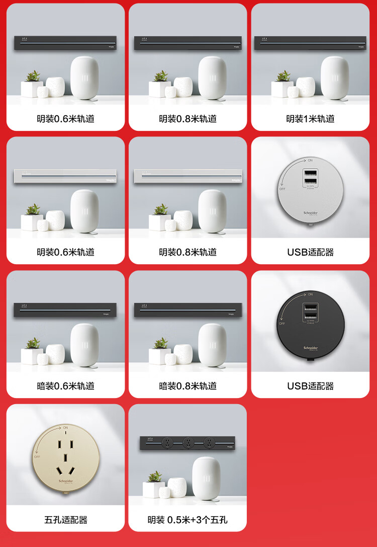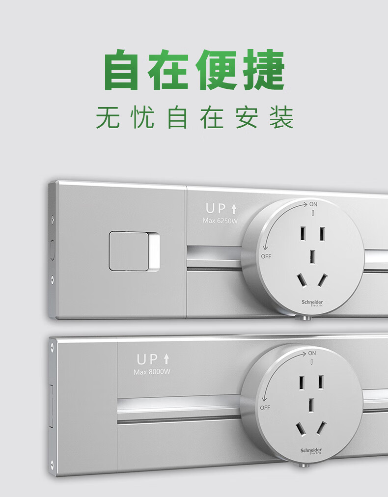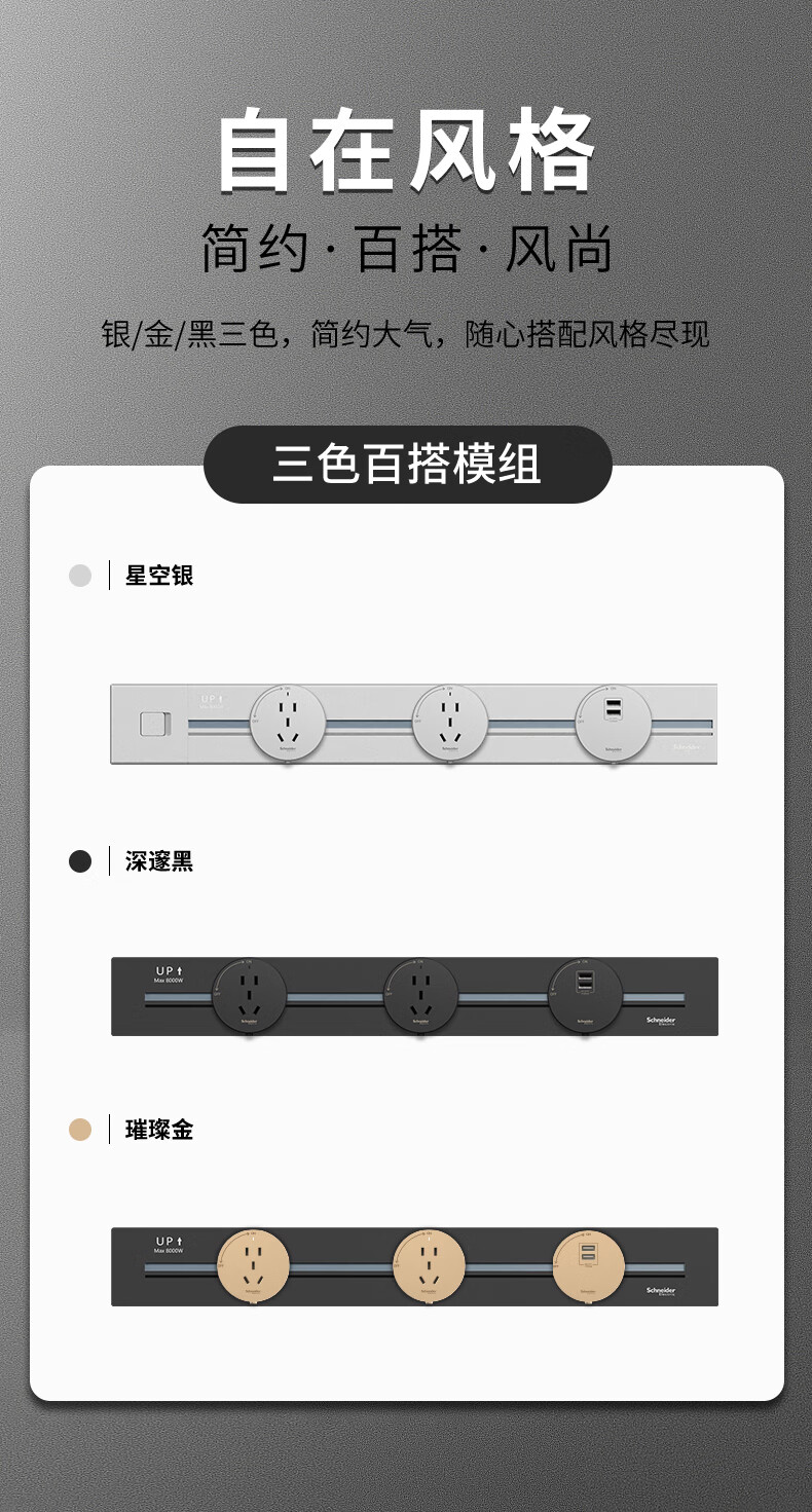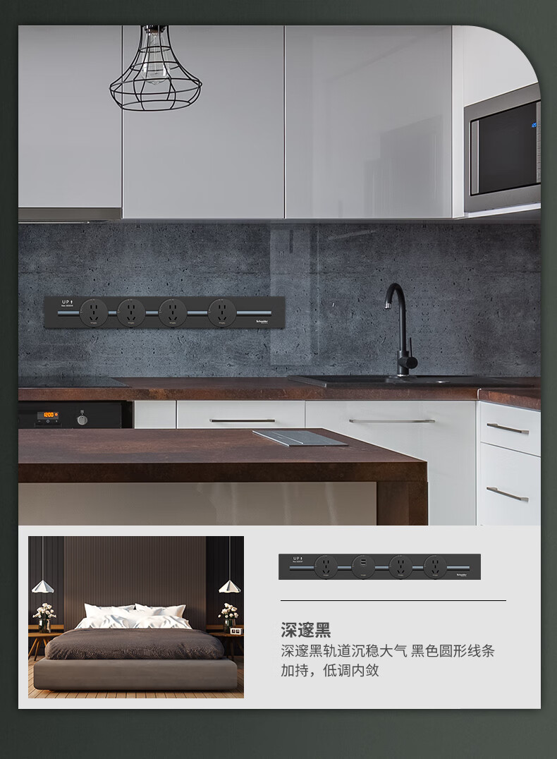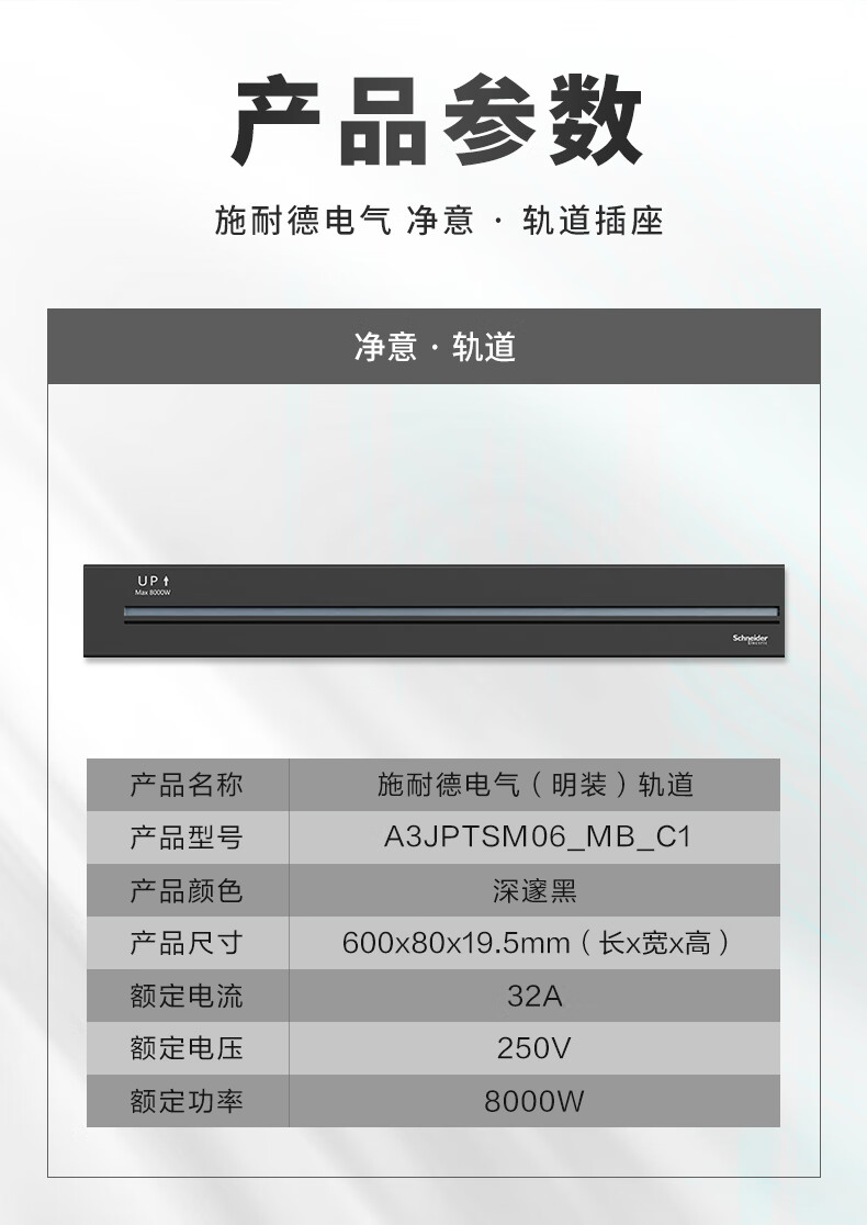 施耐德电气 明装轨道插座 可移动墙壁插座壁挂式 60厘米轨道+3个五孔 黑色