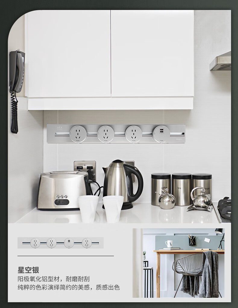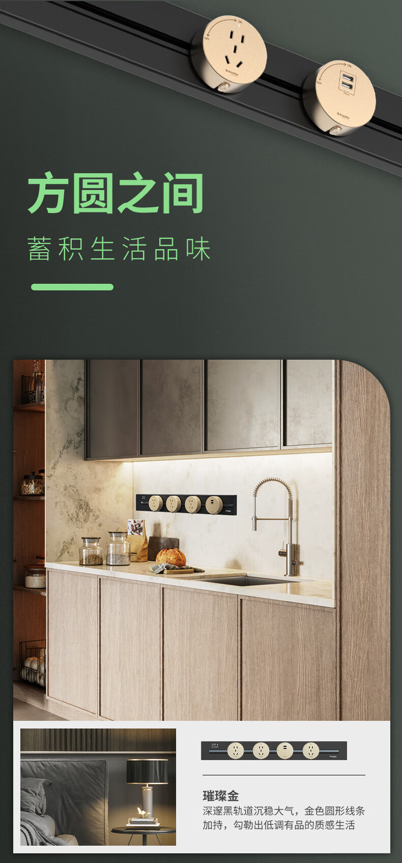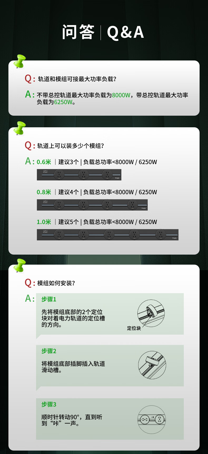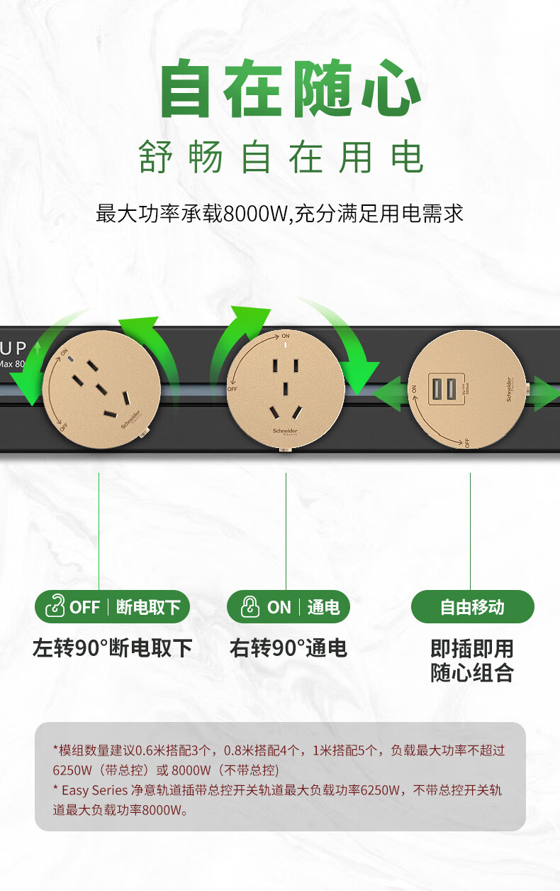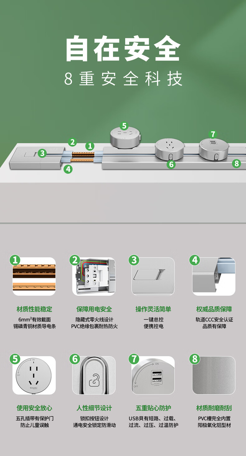 施耐德电气 明装轨道插座 可移动墙壁插座壁挂式 60厘米轨道+3个五孔 黑色