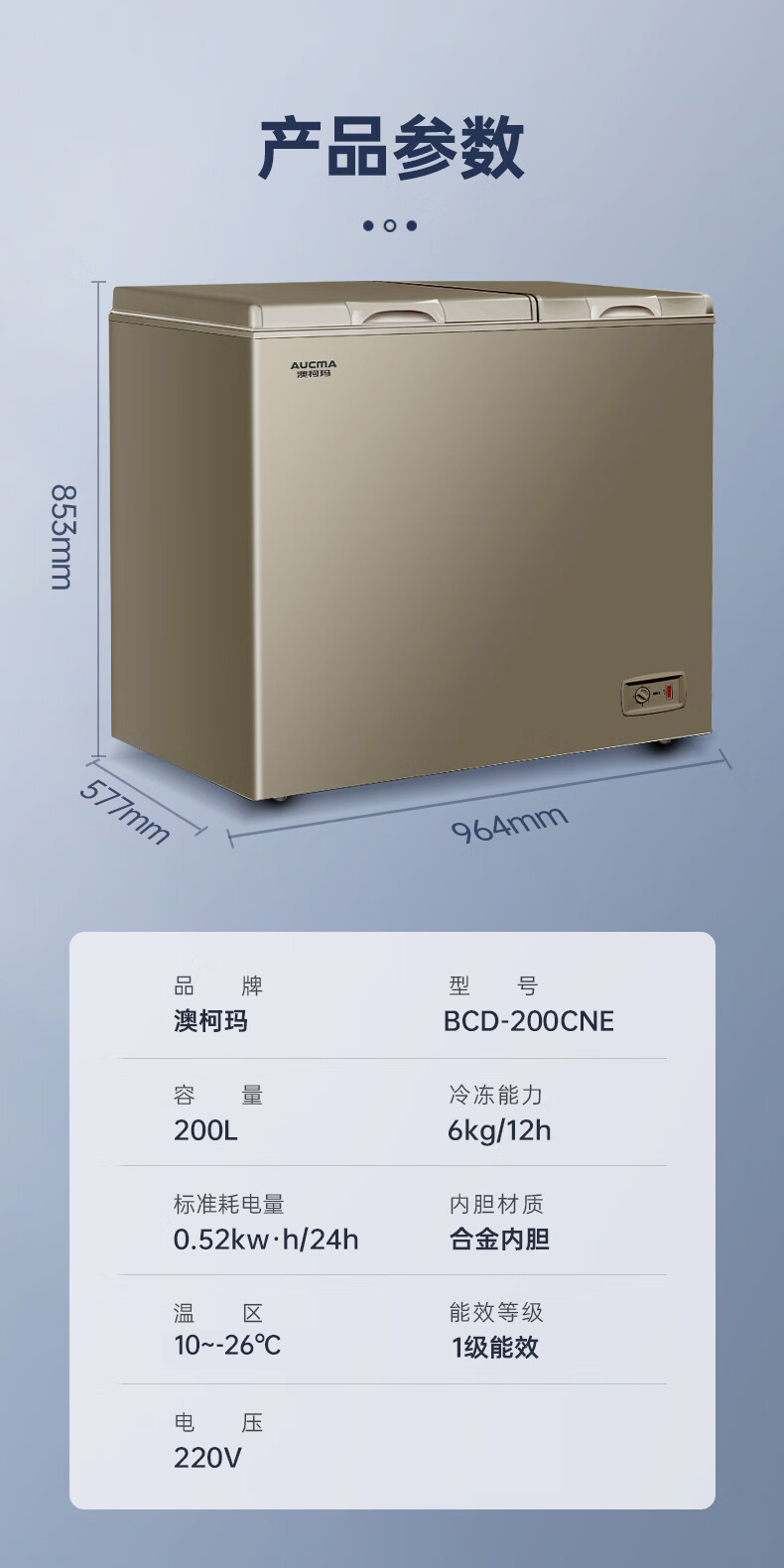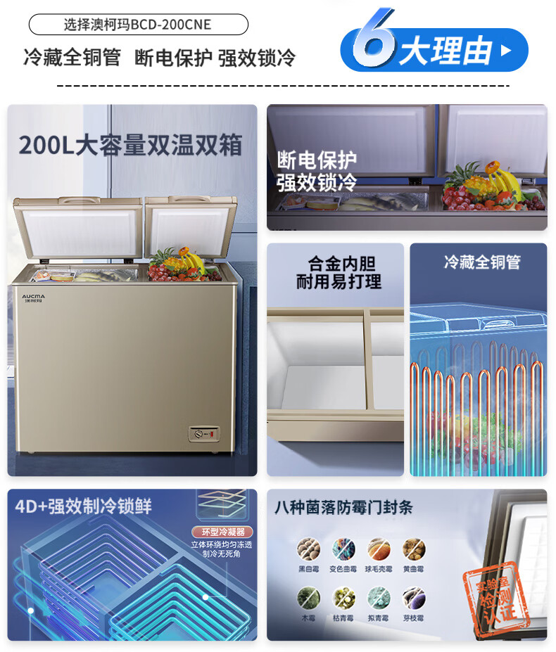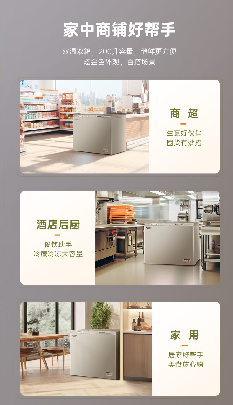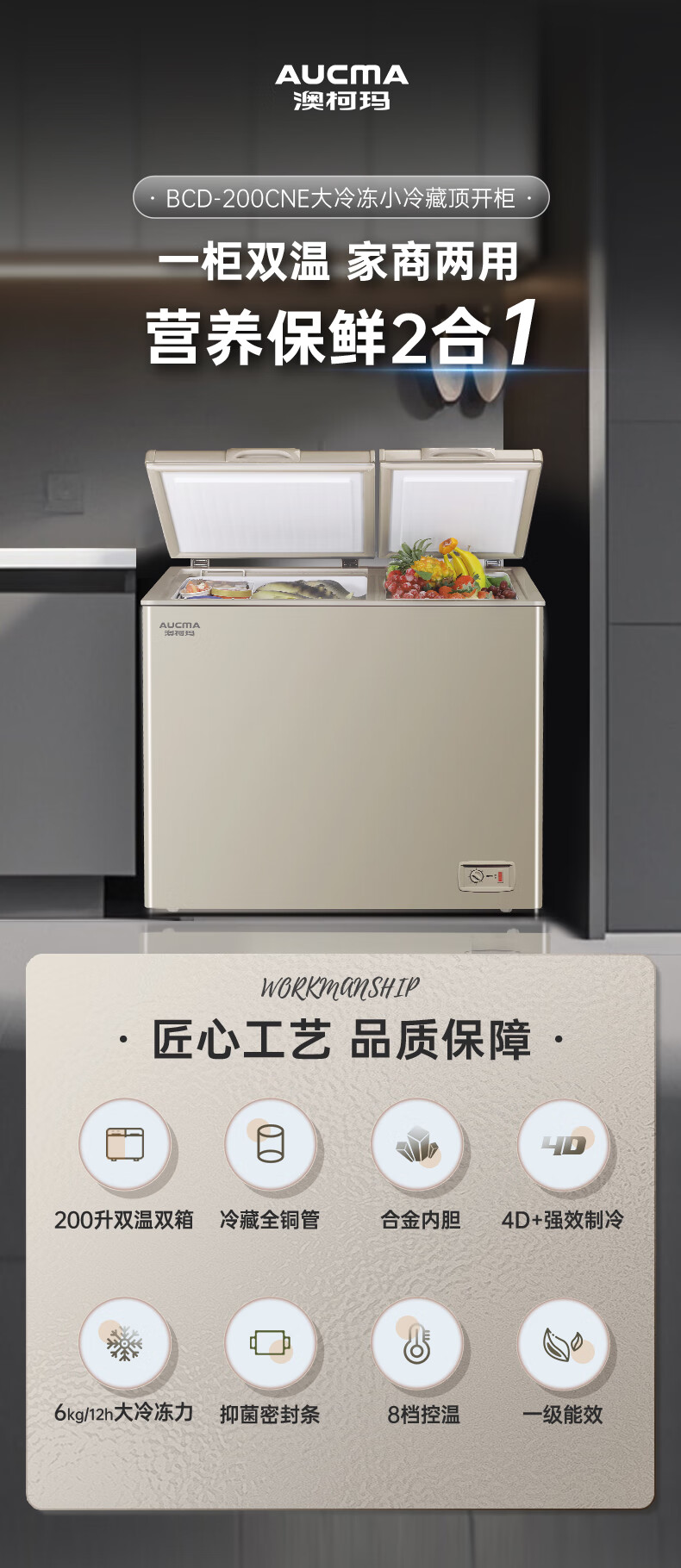 澳柯玛(AUCMA)200升双温双箱家用商用大容量冰柜 冷柜冷藏冷冻卧式冰箱 冷藏全铜管大冷冻冰箱节能省电 BCD-200CNE【京仓发货】 200L